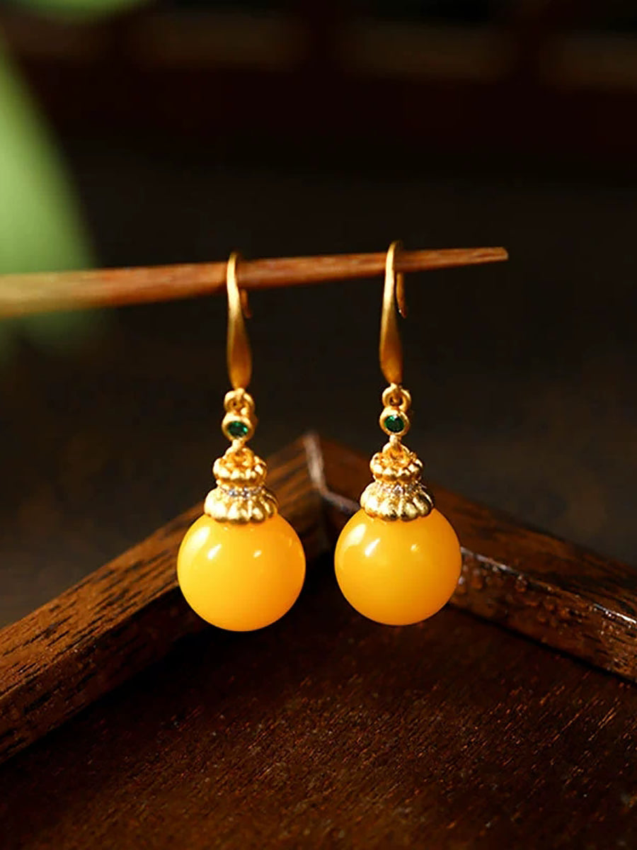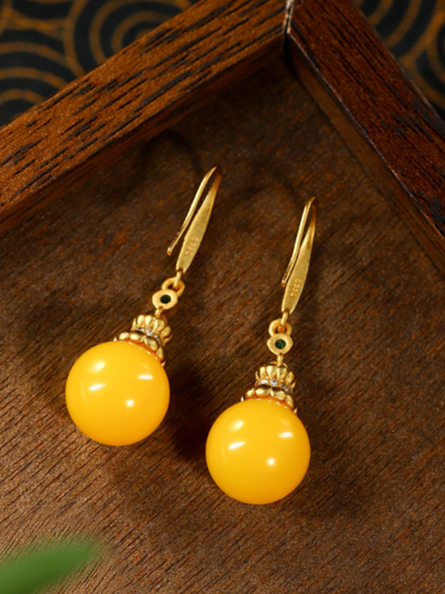 Pendientes vintage de jade amarillo para mujer