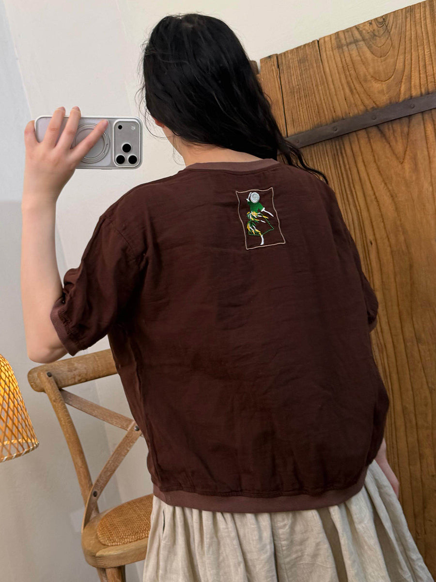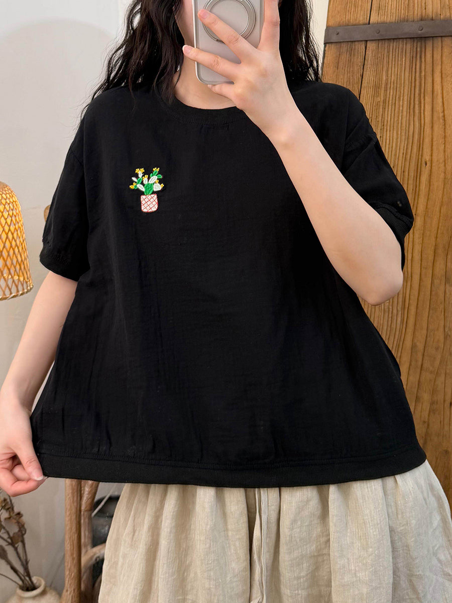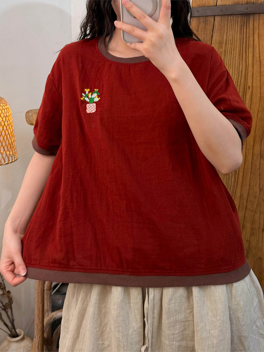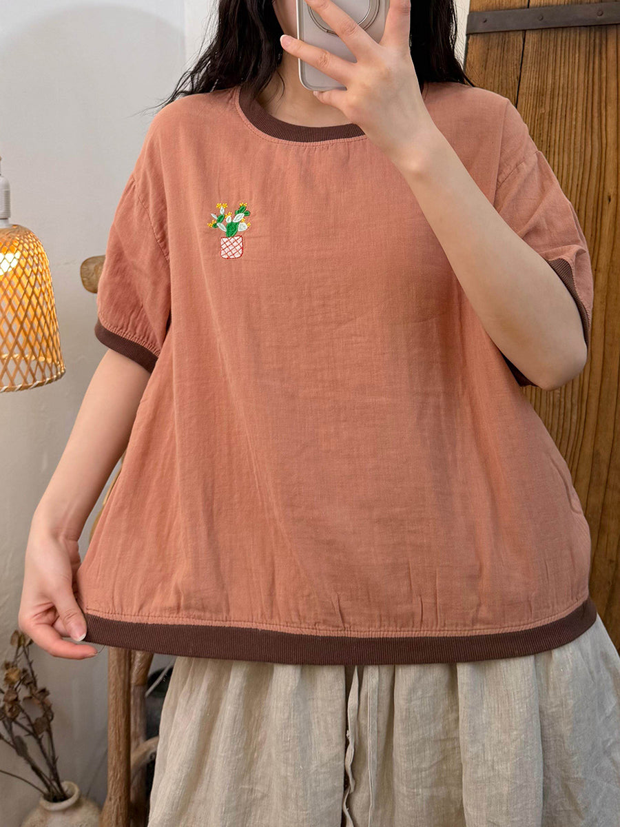 Camiseta de mujer de verano con cuello redondo, de algodón y bloques de color.