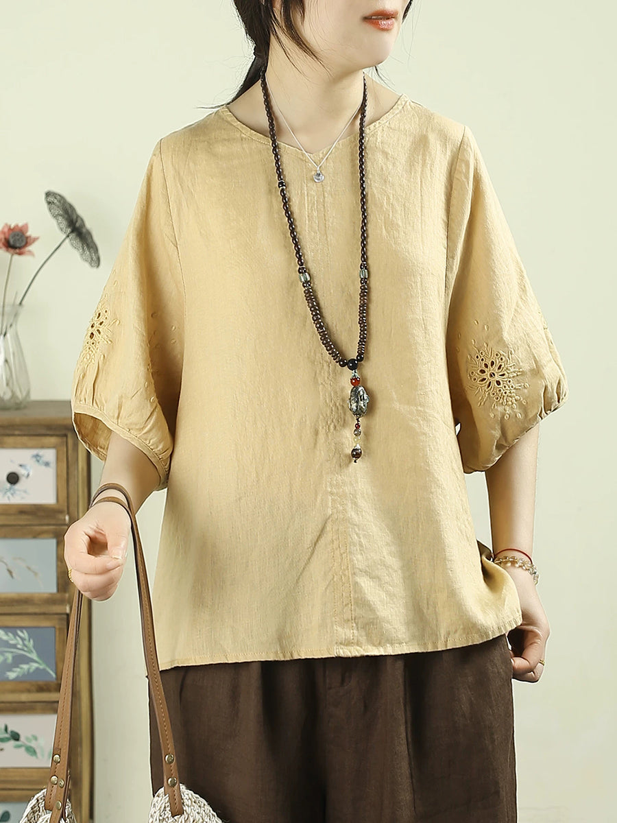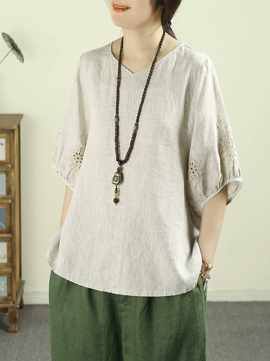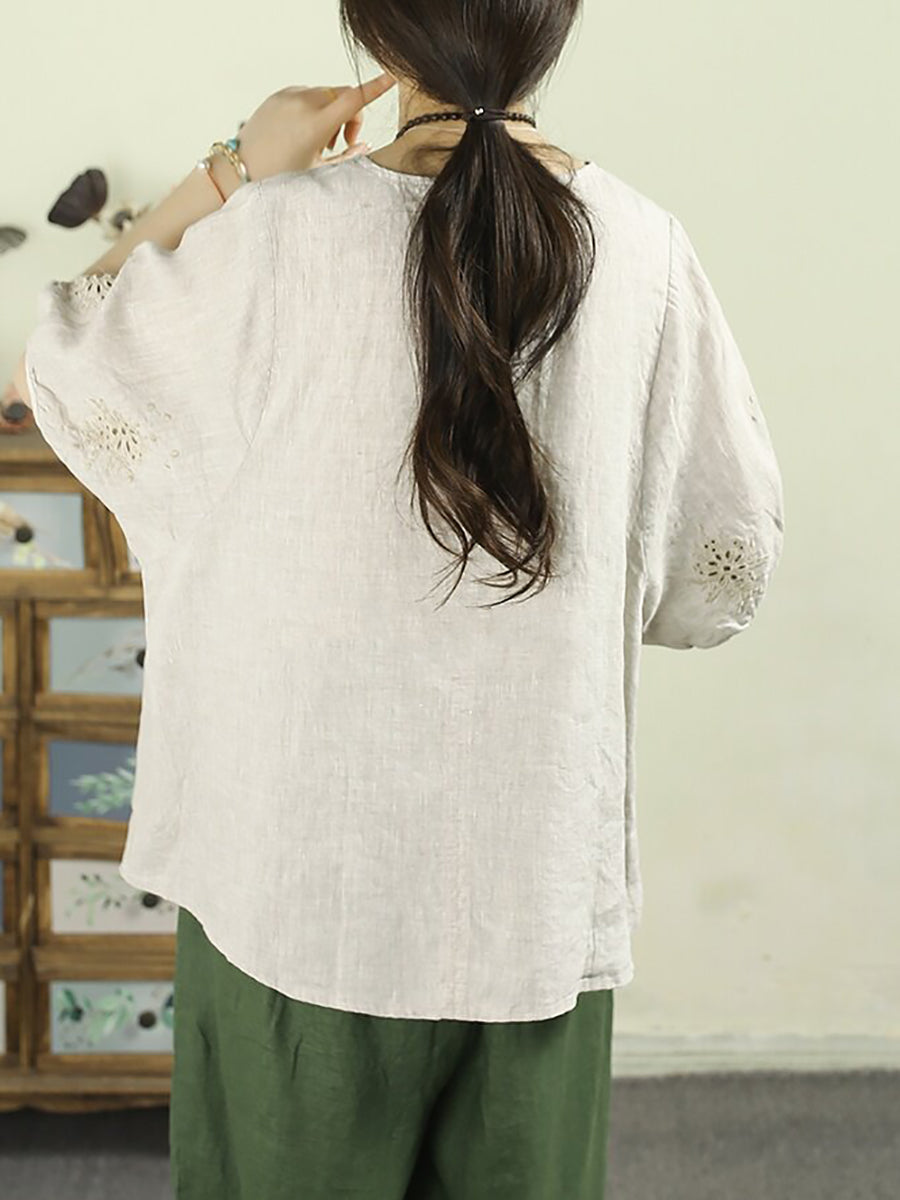 Blusa de verano para mujer con bordado artístico, 100% lino.