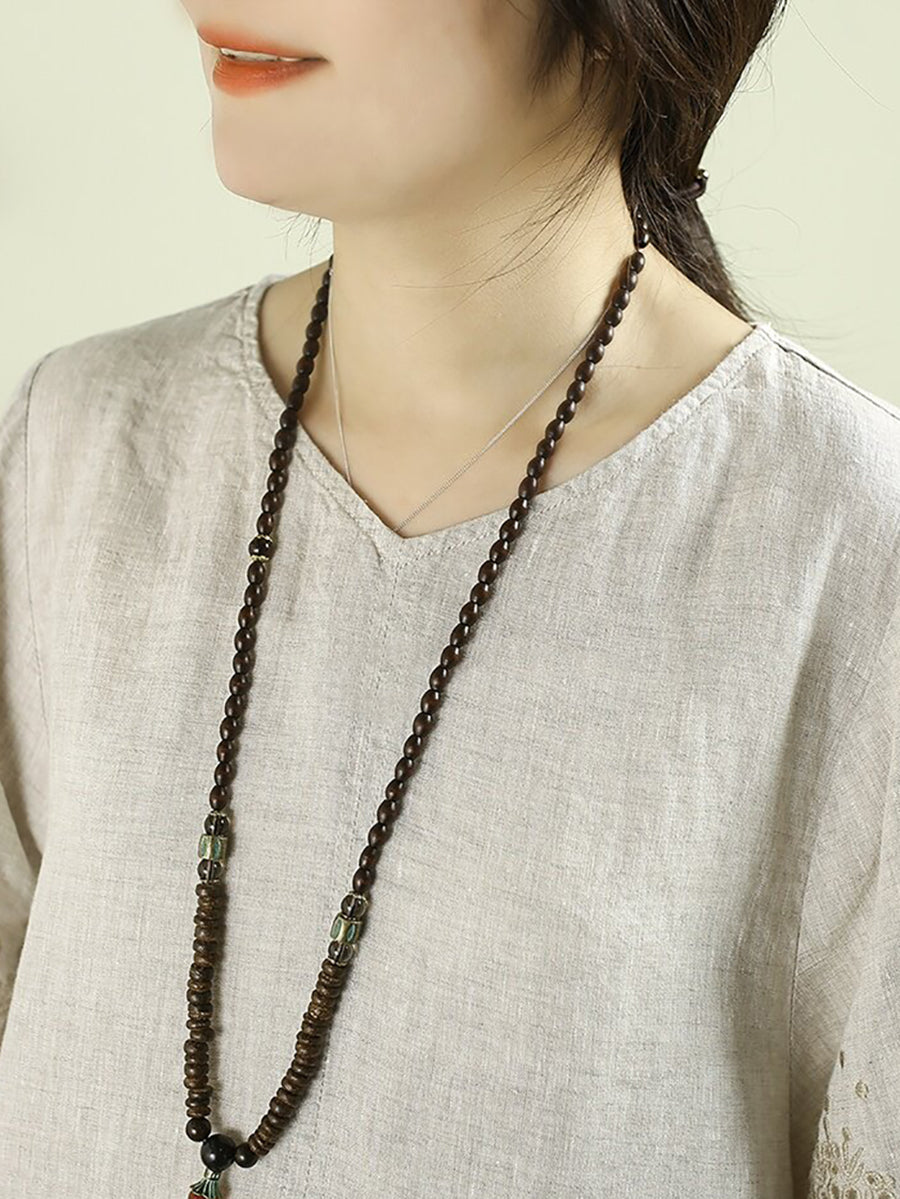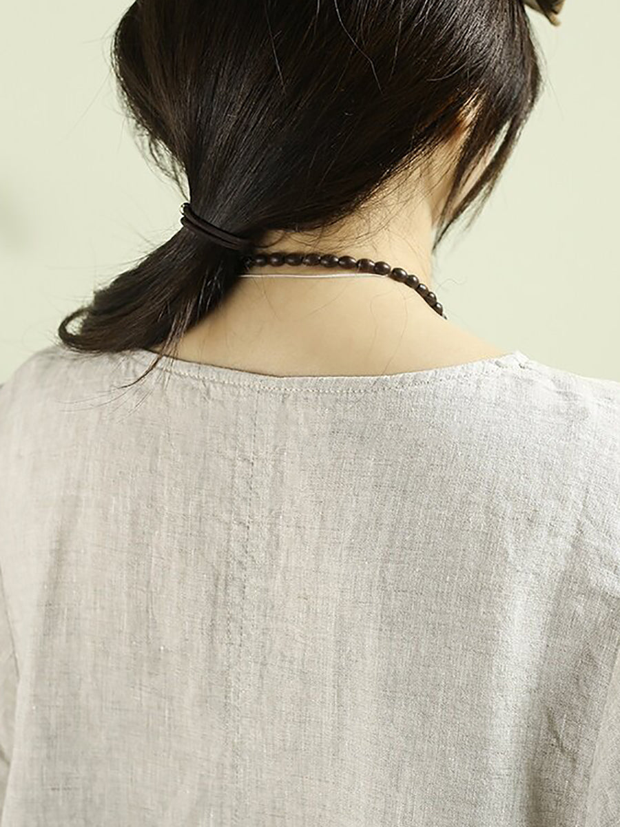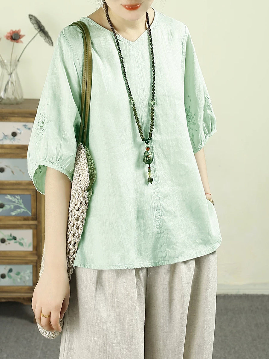 Blusa de verano para mujer con bordado artístico, 100% lino.