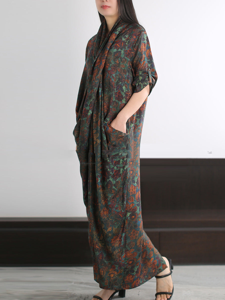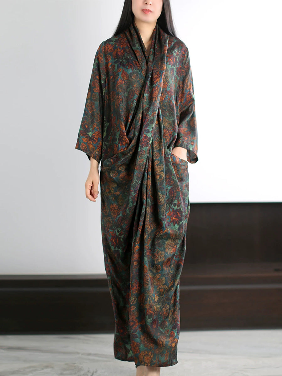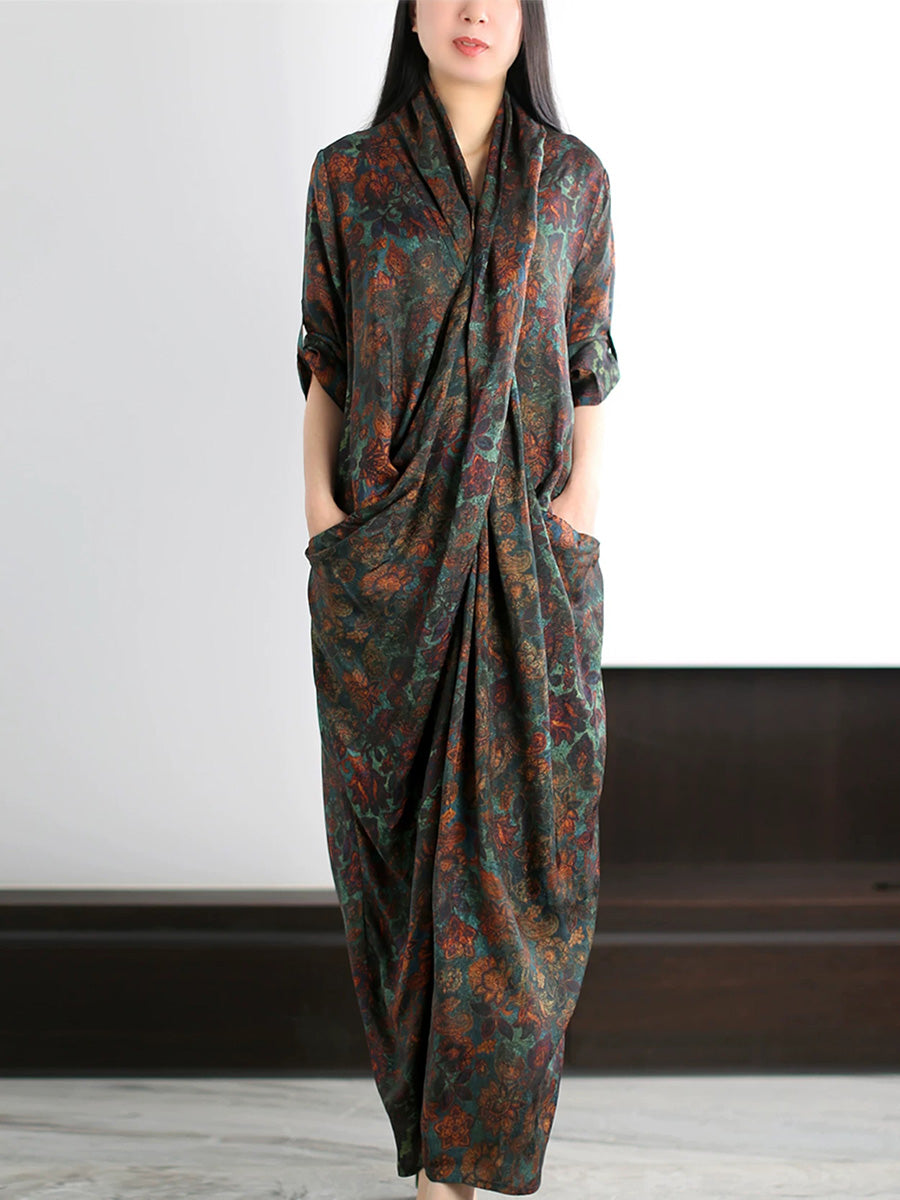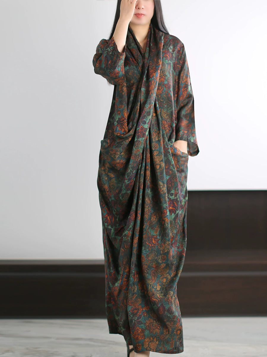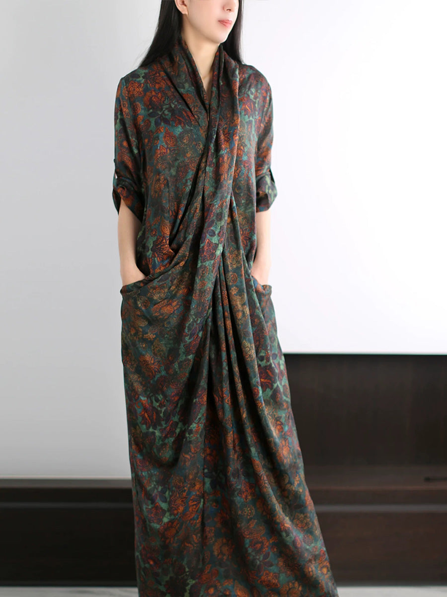 Vestido de verano artístico con estampado floral en forma de X para mujer