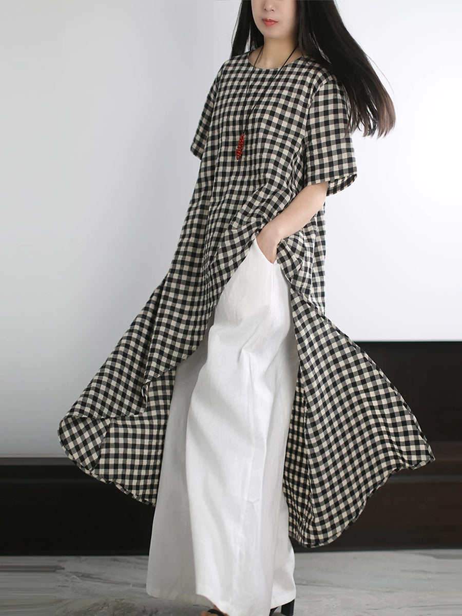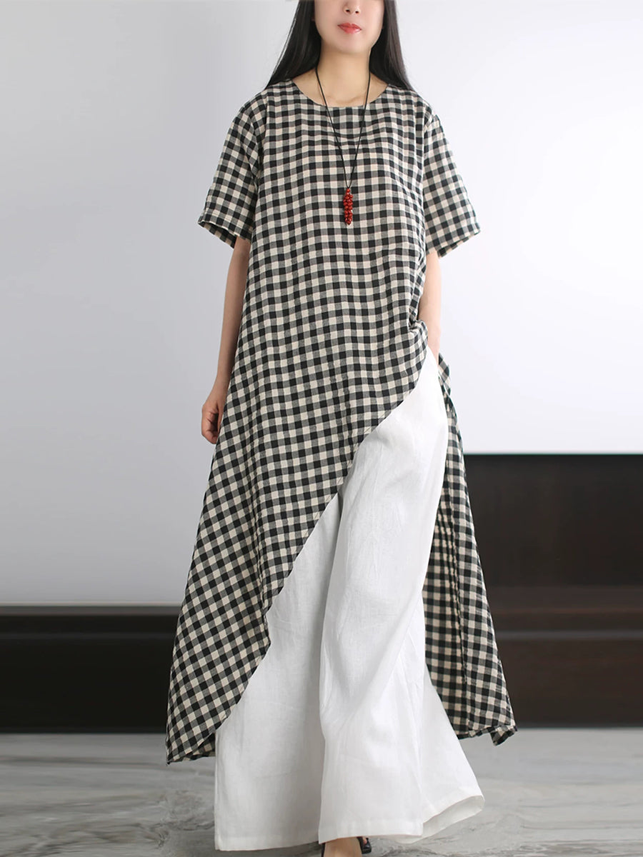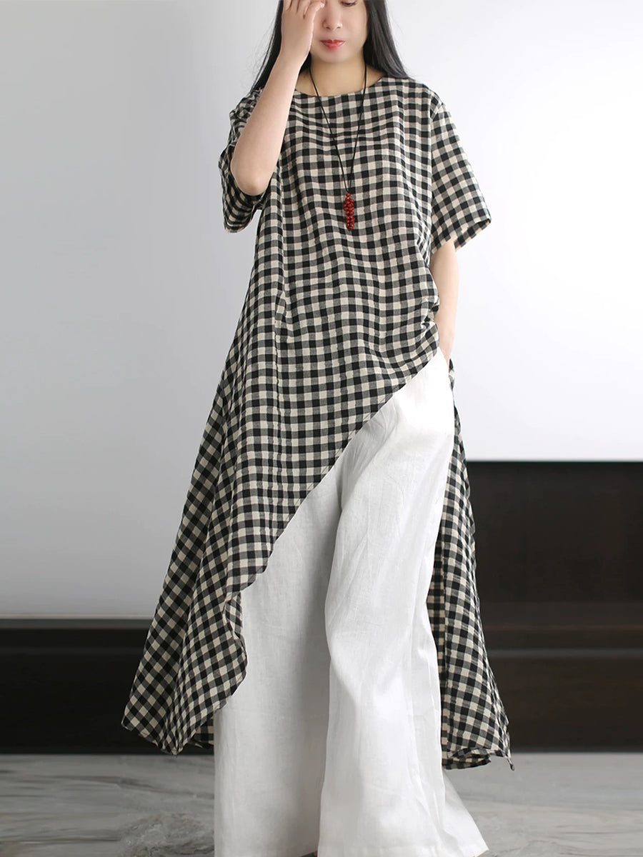 Camiseta de verano para mujer, estilo artístico, a cuadros, 100% algodón.