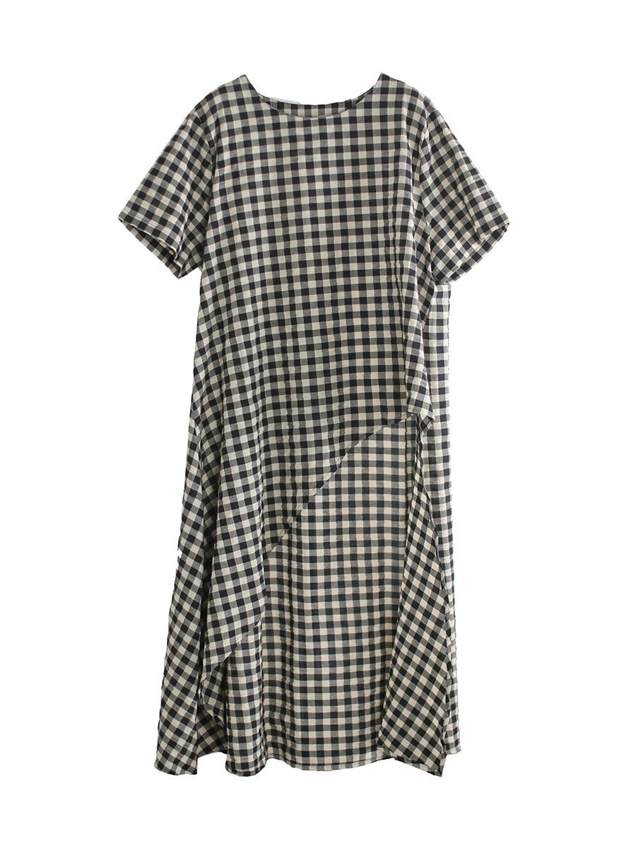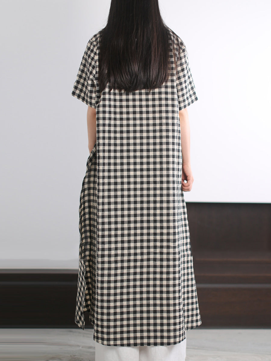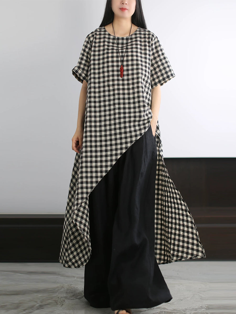 Camiseta de verano para mujer, estilo artístico, a cuadros, 100% algodón.