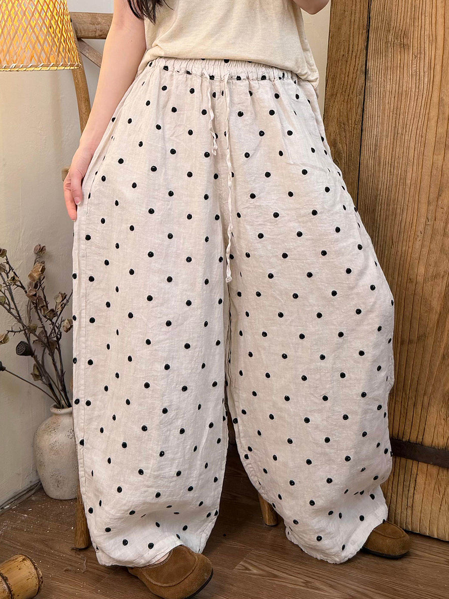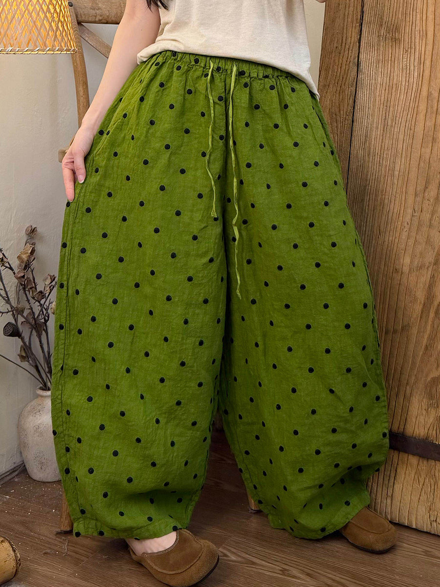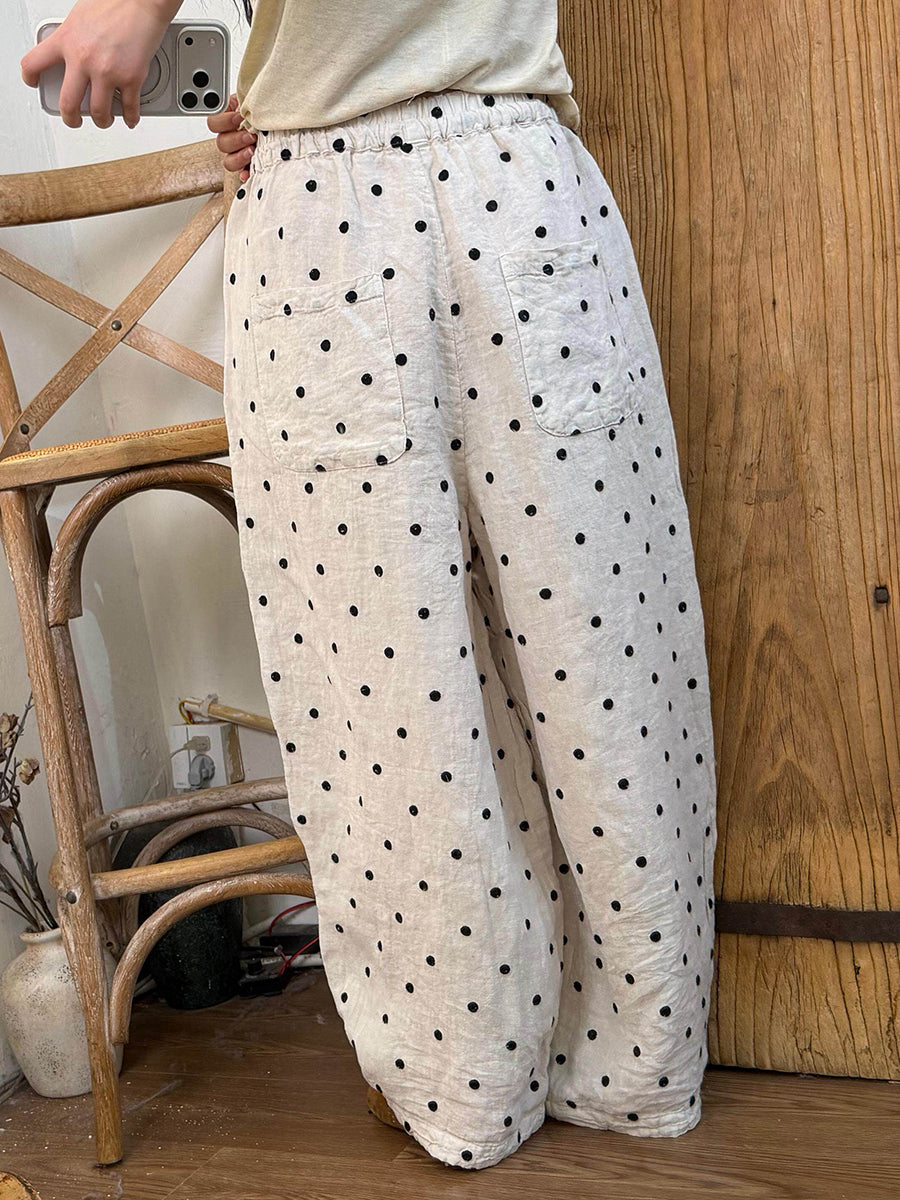 Pantalones anchos de lino con estampado de lunares para mujer, ideales para el verano.
