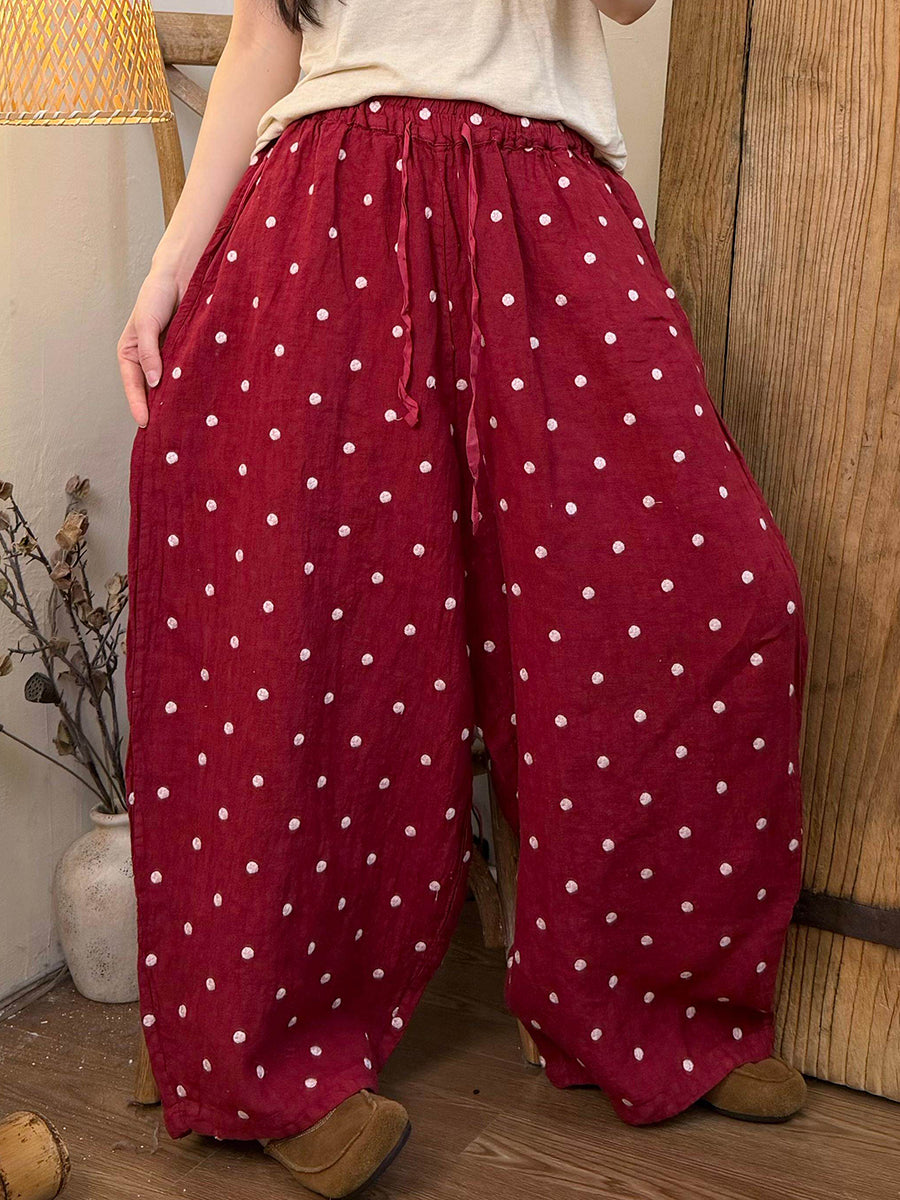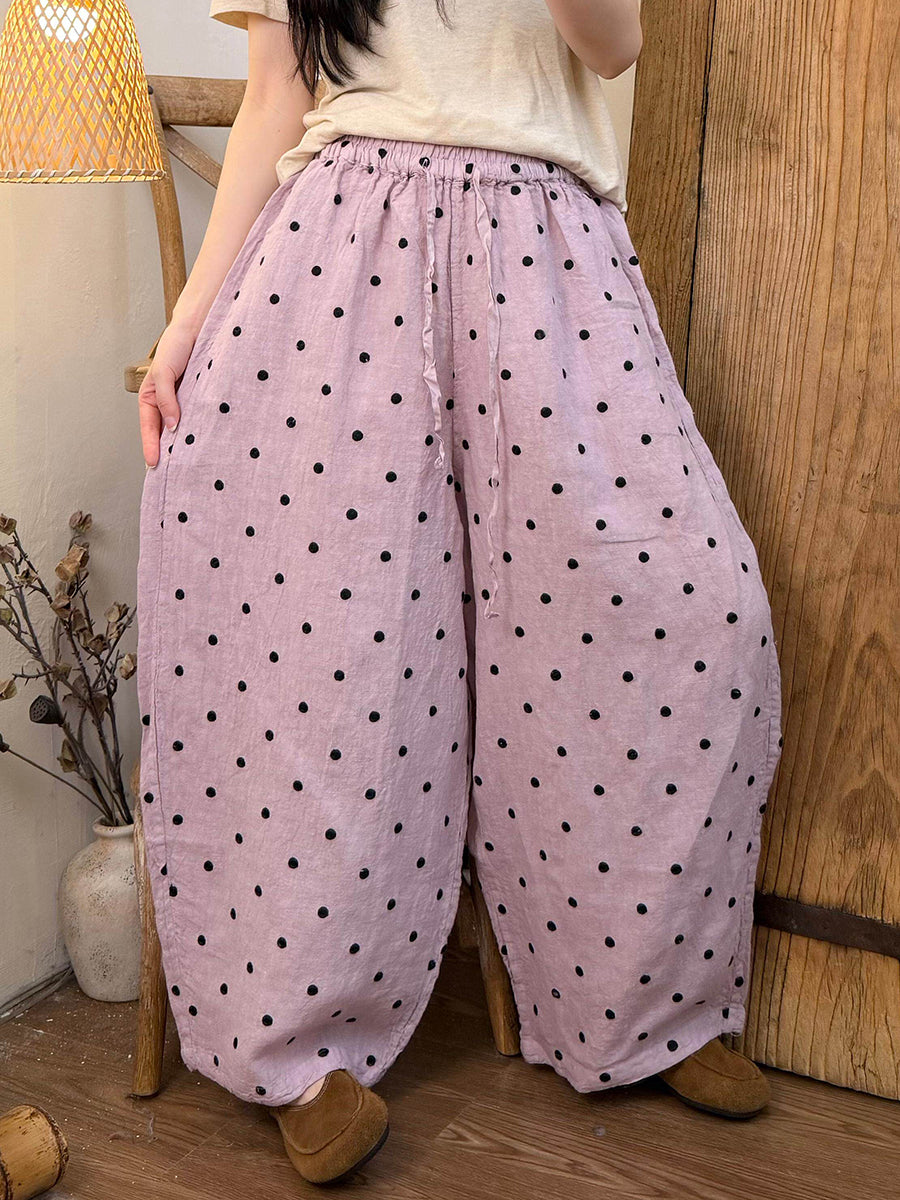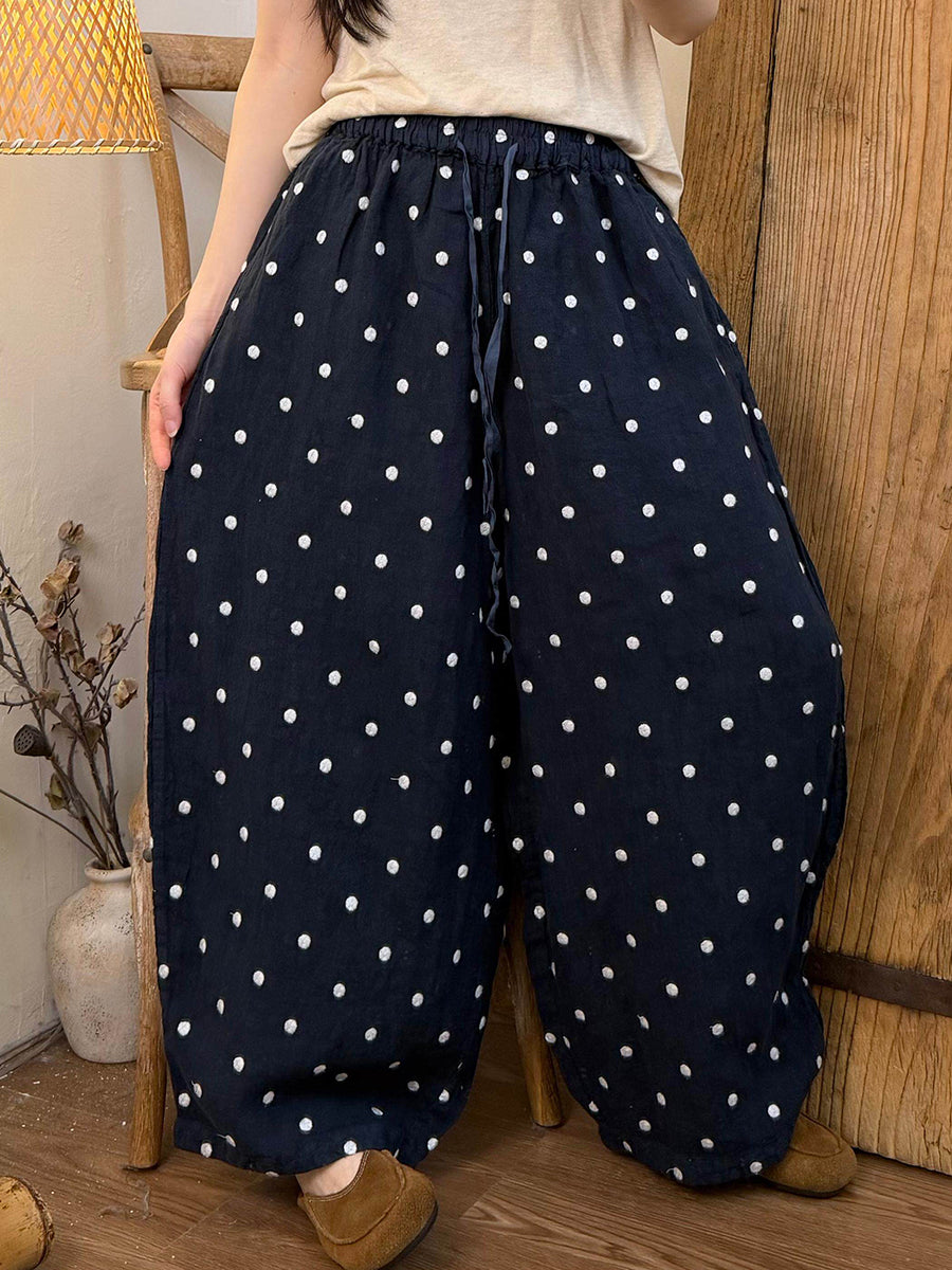 Pantalones anchos de lino con estampado de lunares para mujer, ideales para el verano.