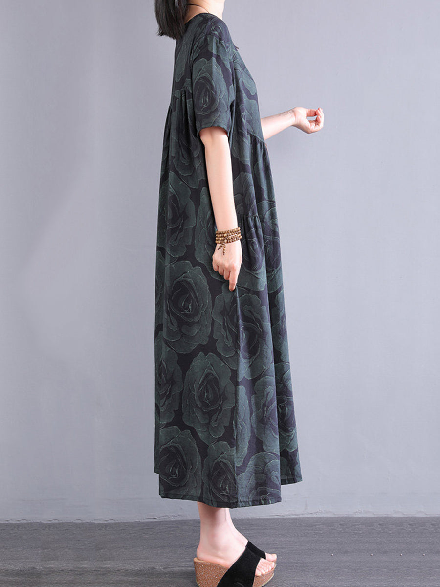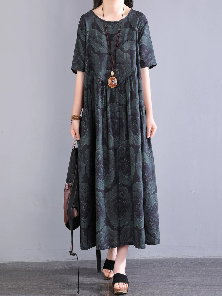 Vestido casual de verano para mujer, 100% algodón, con estampado floral y cuello redondo.