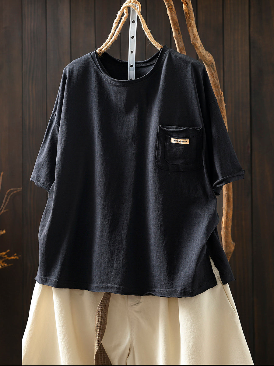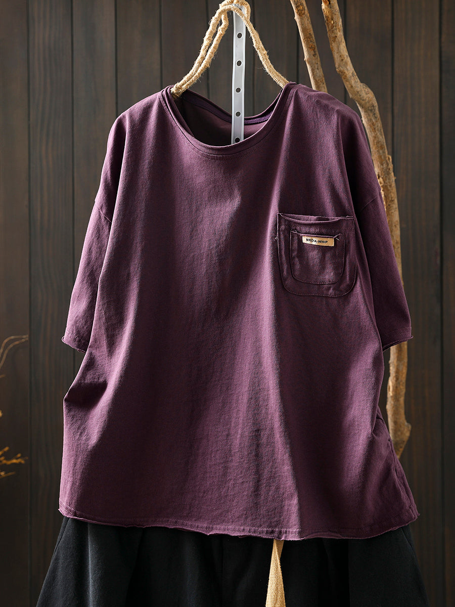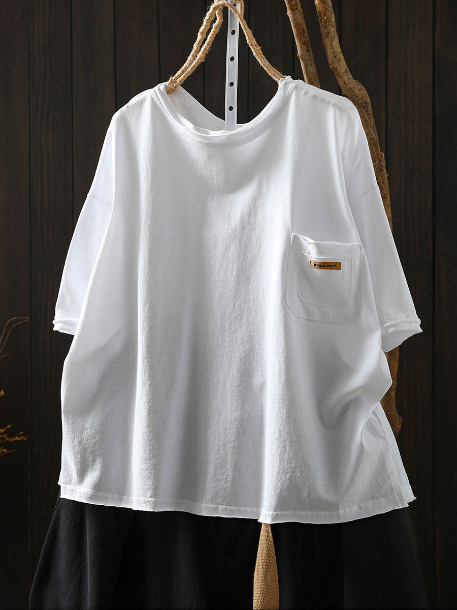 Camiseta de mujer informal de verano, color liso, cuello redondo, 100% algodón.