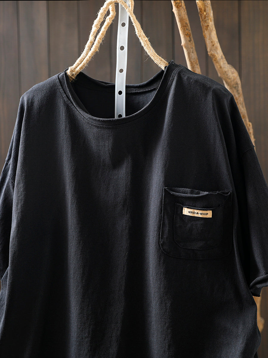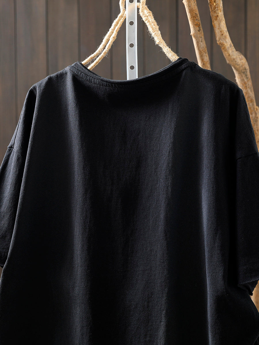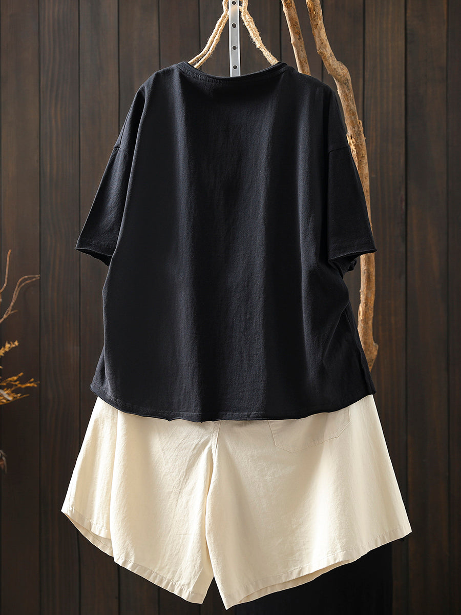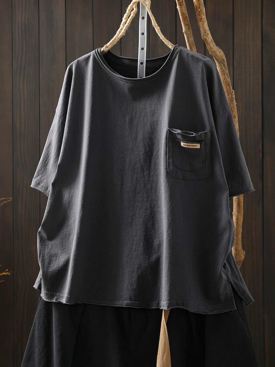 Camiseta de mujer informal de verano, color liso, cuello redondo, 100% algodón.