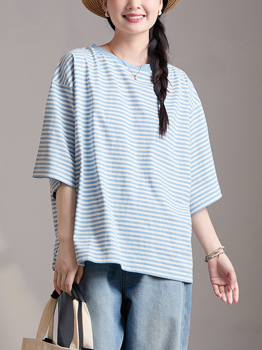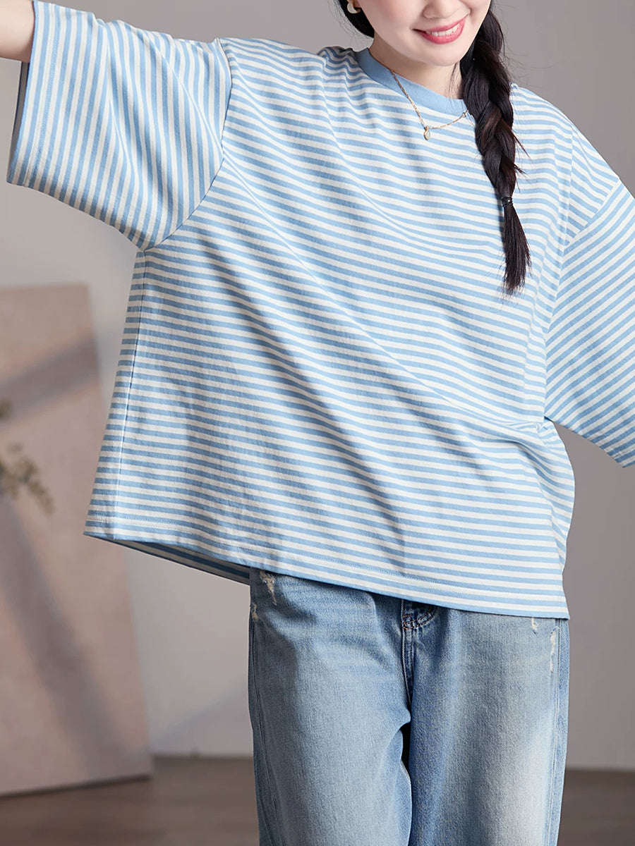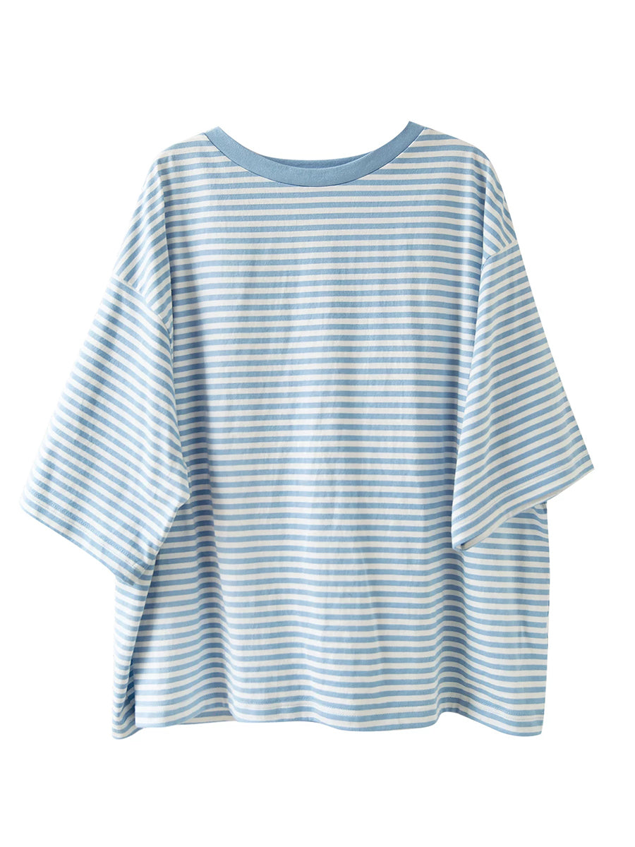Camiseta de mujer informal de verano a rayas 100% algodón