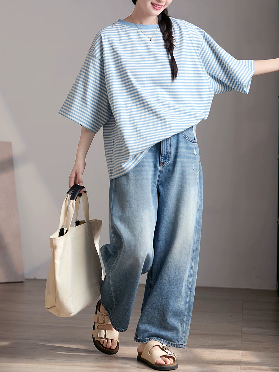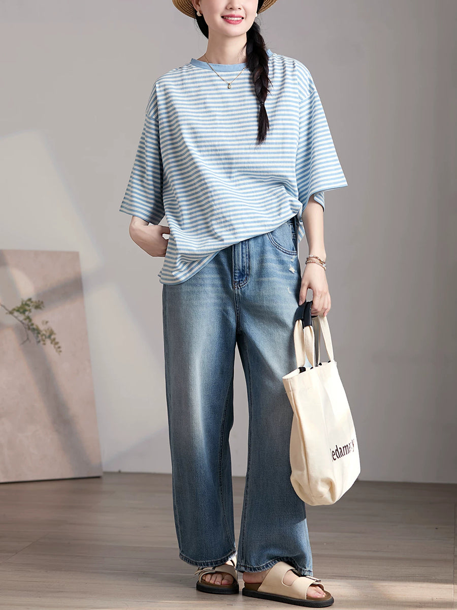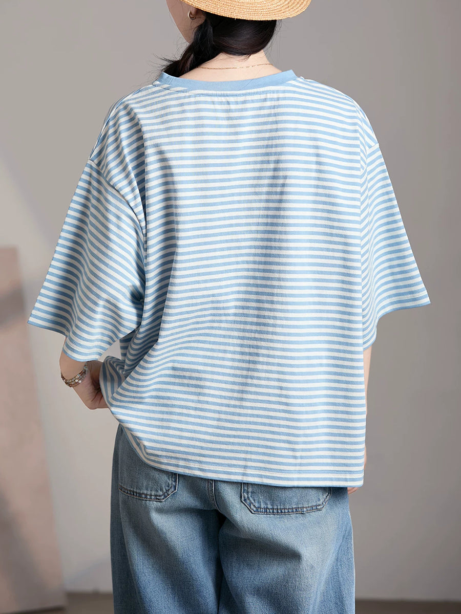 Camiseta de mujer informal de verano a rayas 100% algodón