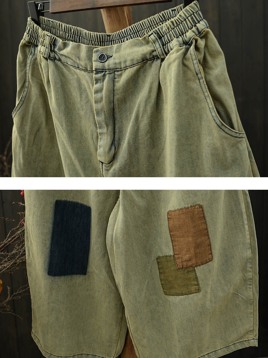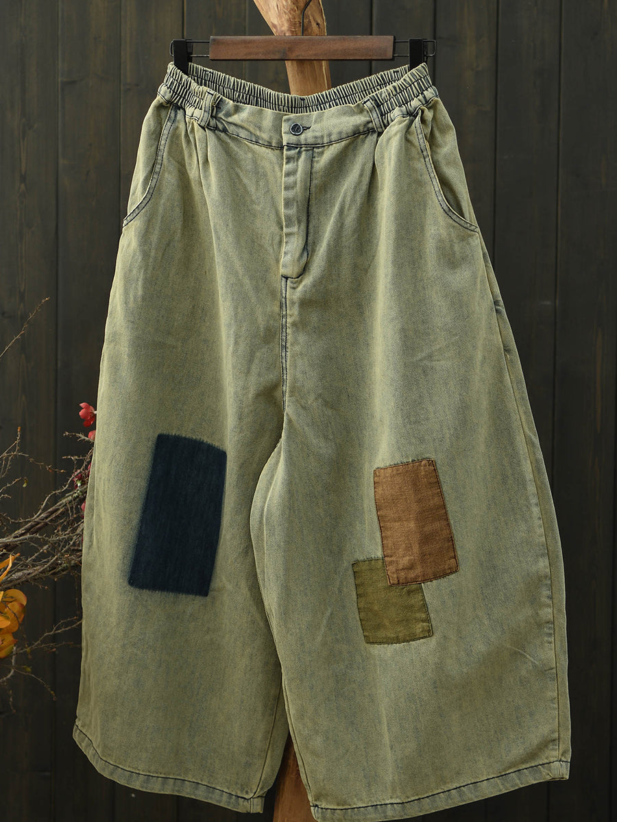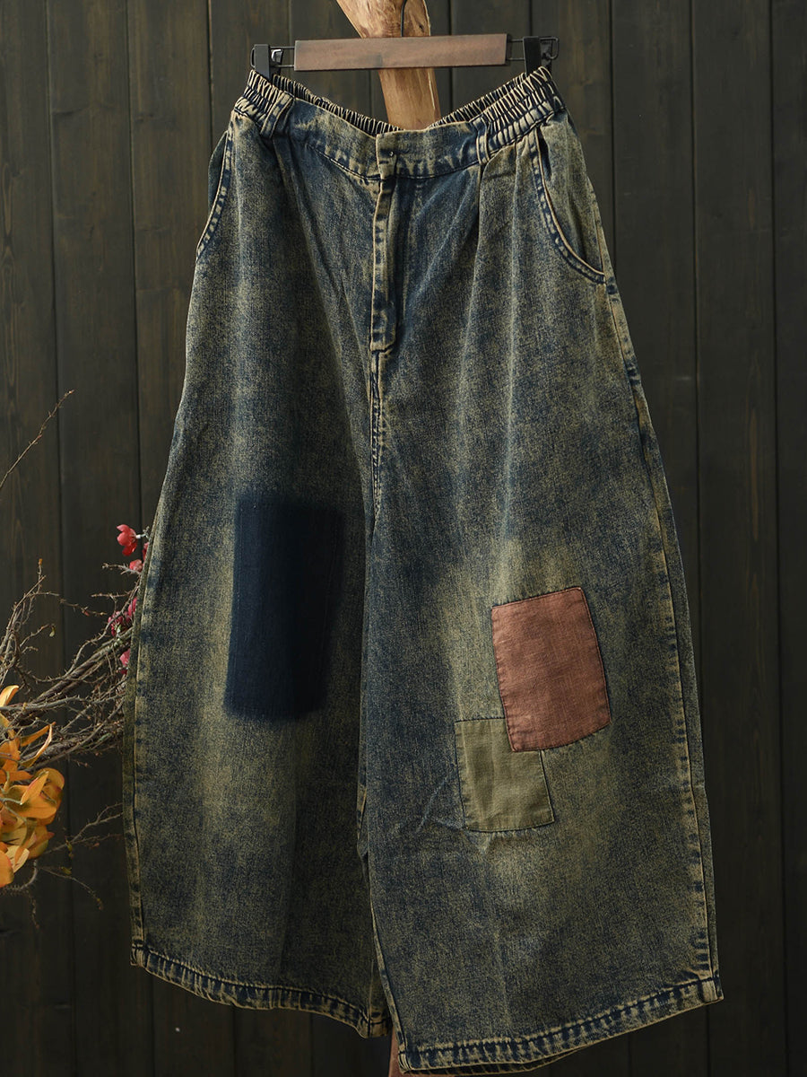 Pantalones vaqueros anchos de mezclilla estilo patchwork retro para mujer, ideales para el verano.