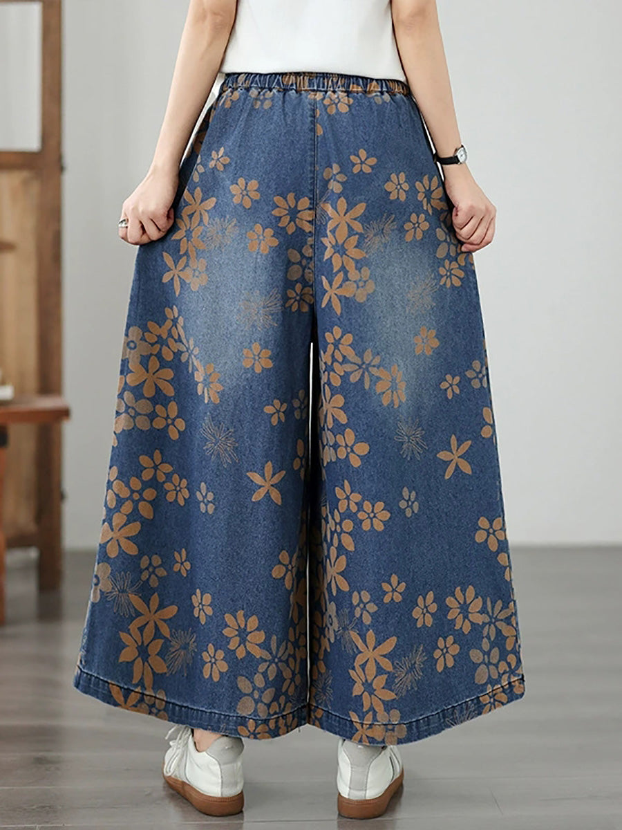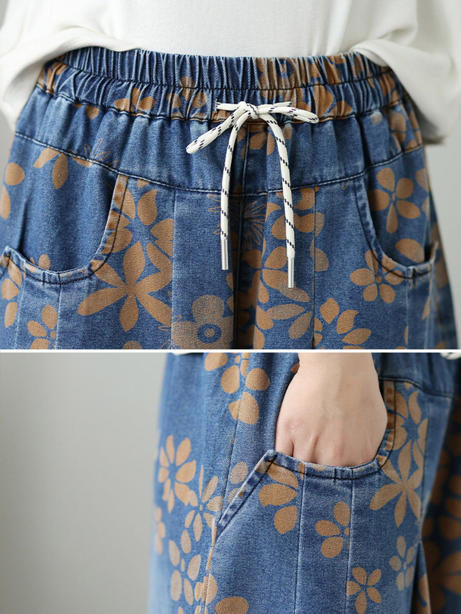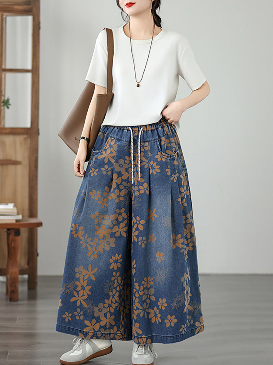 Jeans anchos de mujer estilo vintage con estampado floral para verano