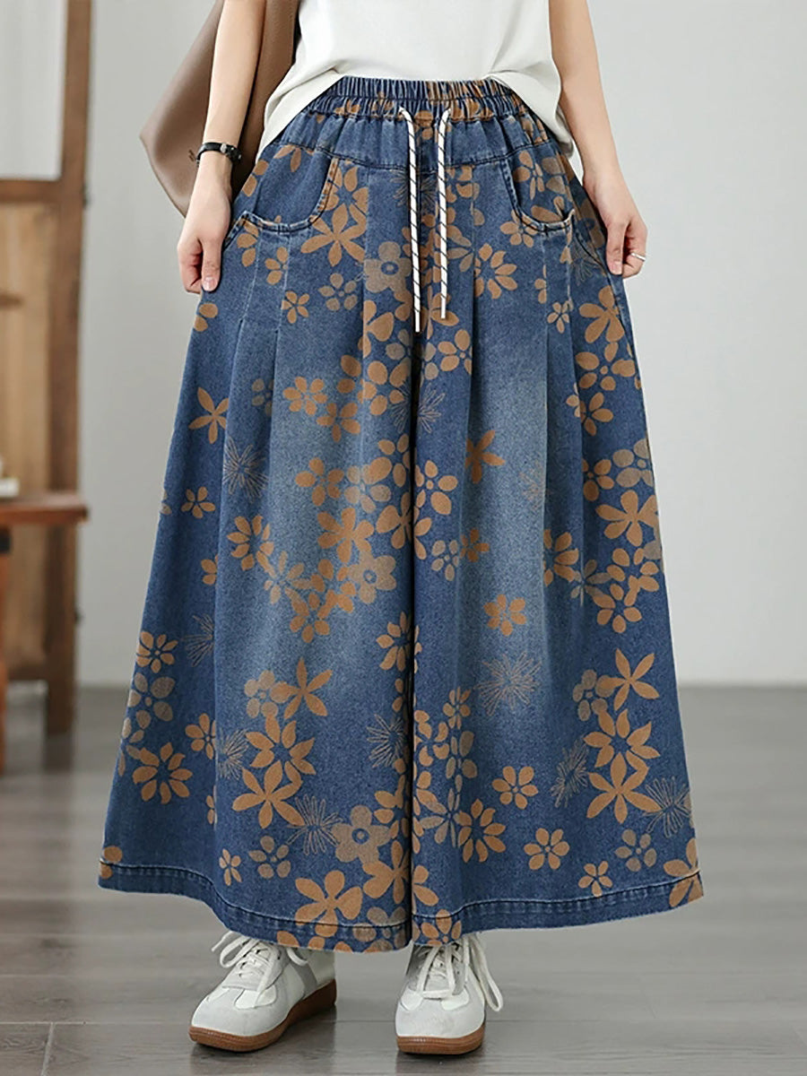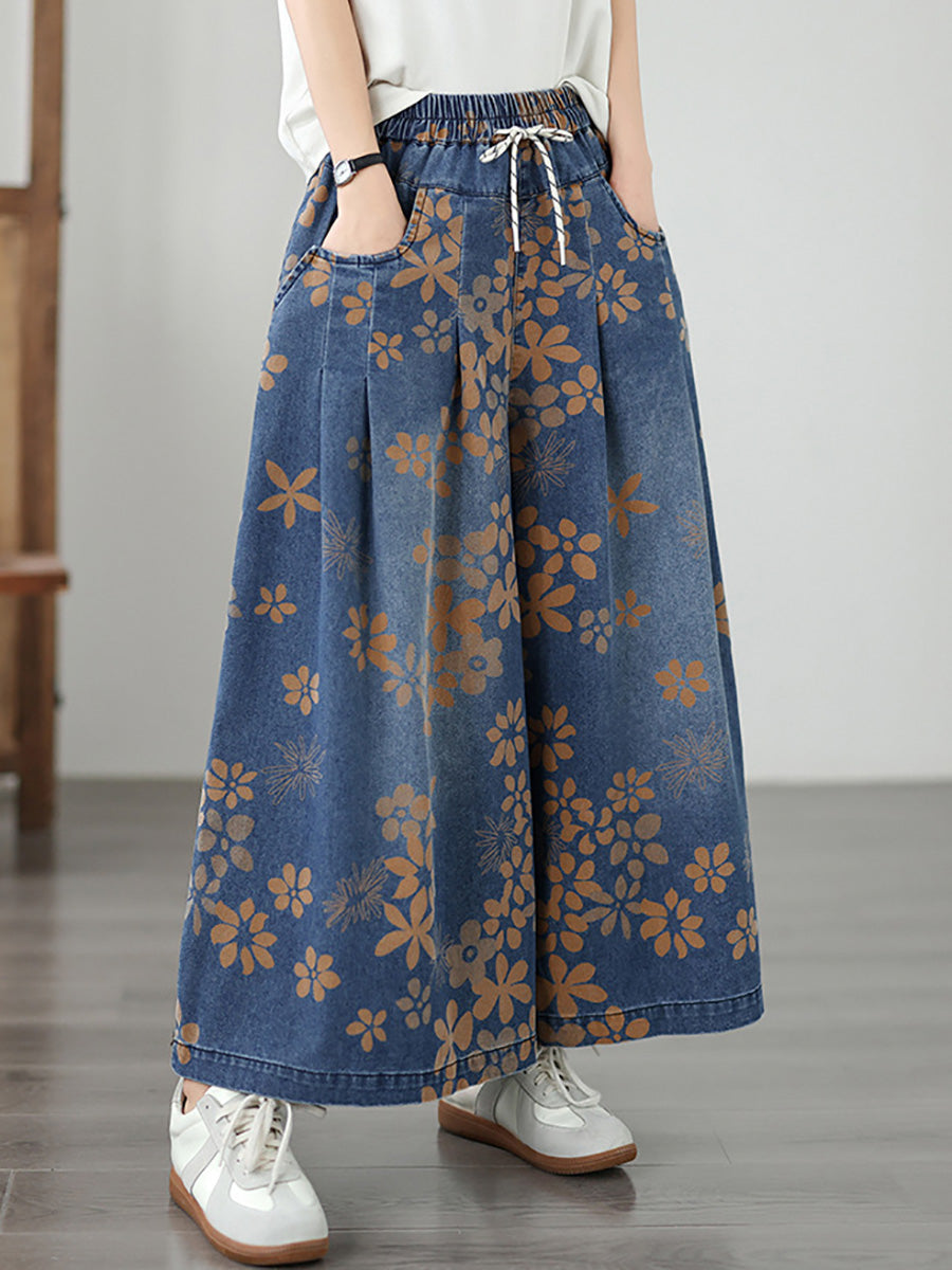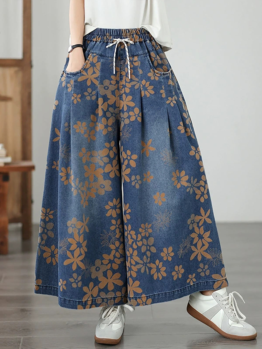 Jeans anchos de mujer estilo vintage con estampado floral para verano