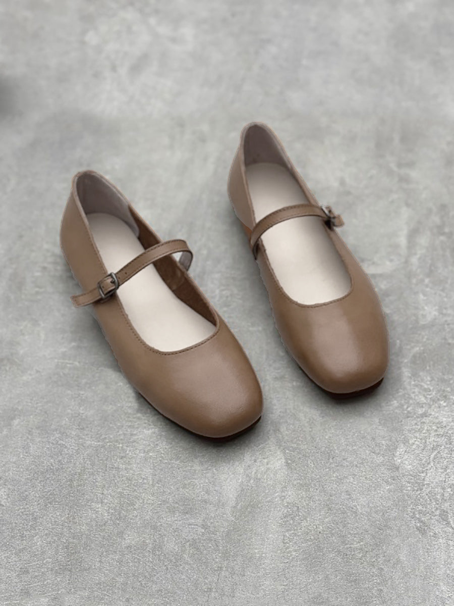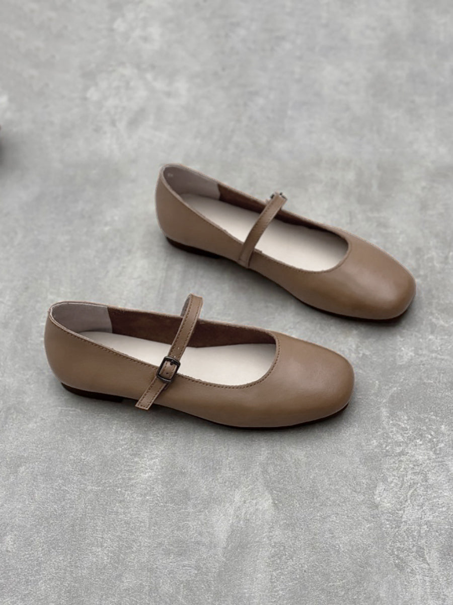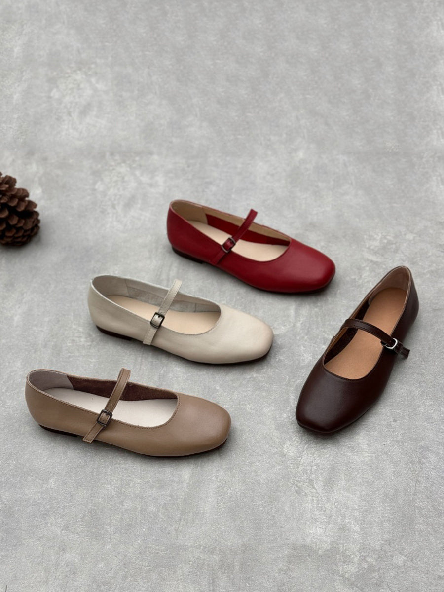 Zapatos Mary Jane de tacón bajo de cuero liso elegantes para mujer