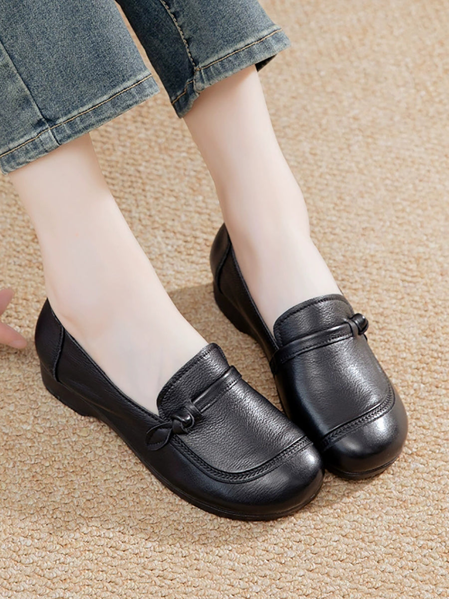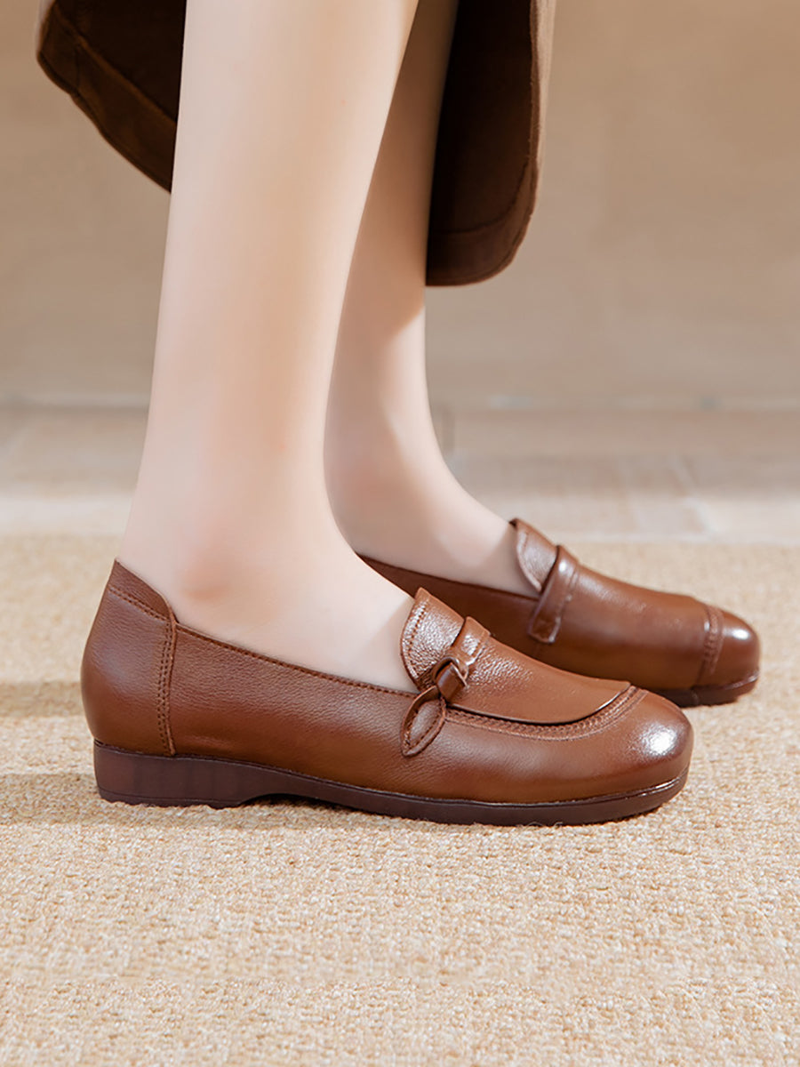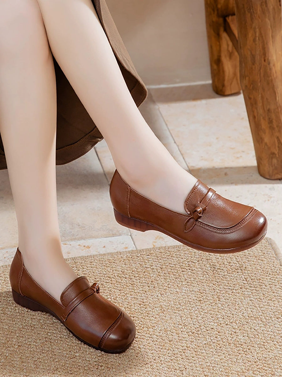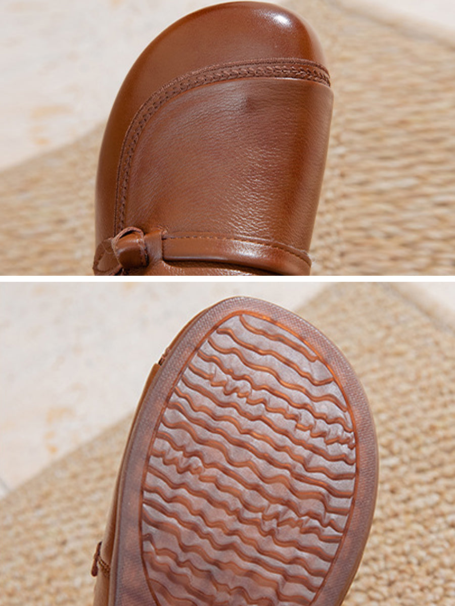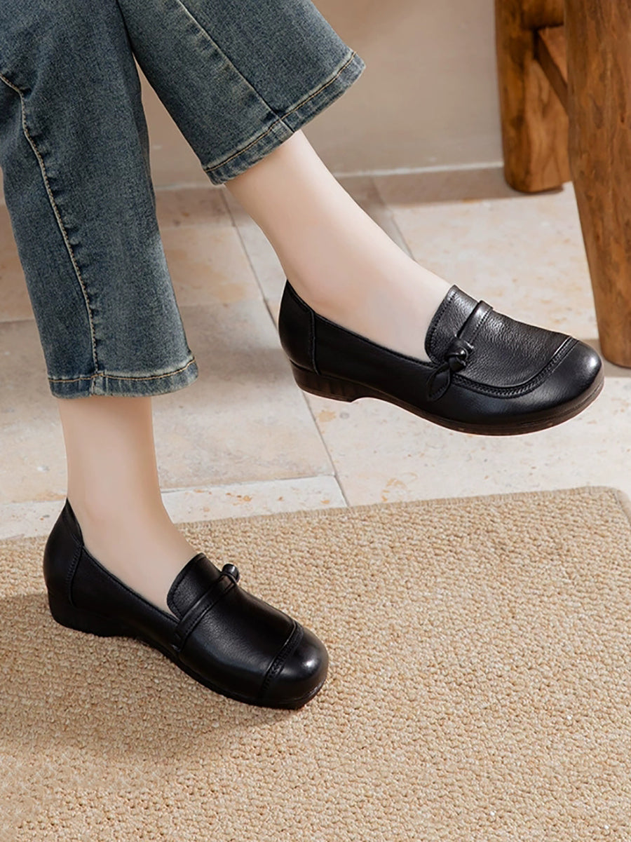 Zapatos de tacón bajo vintage de piel auténtica para mujer