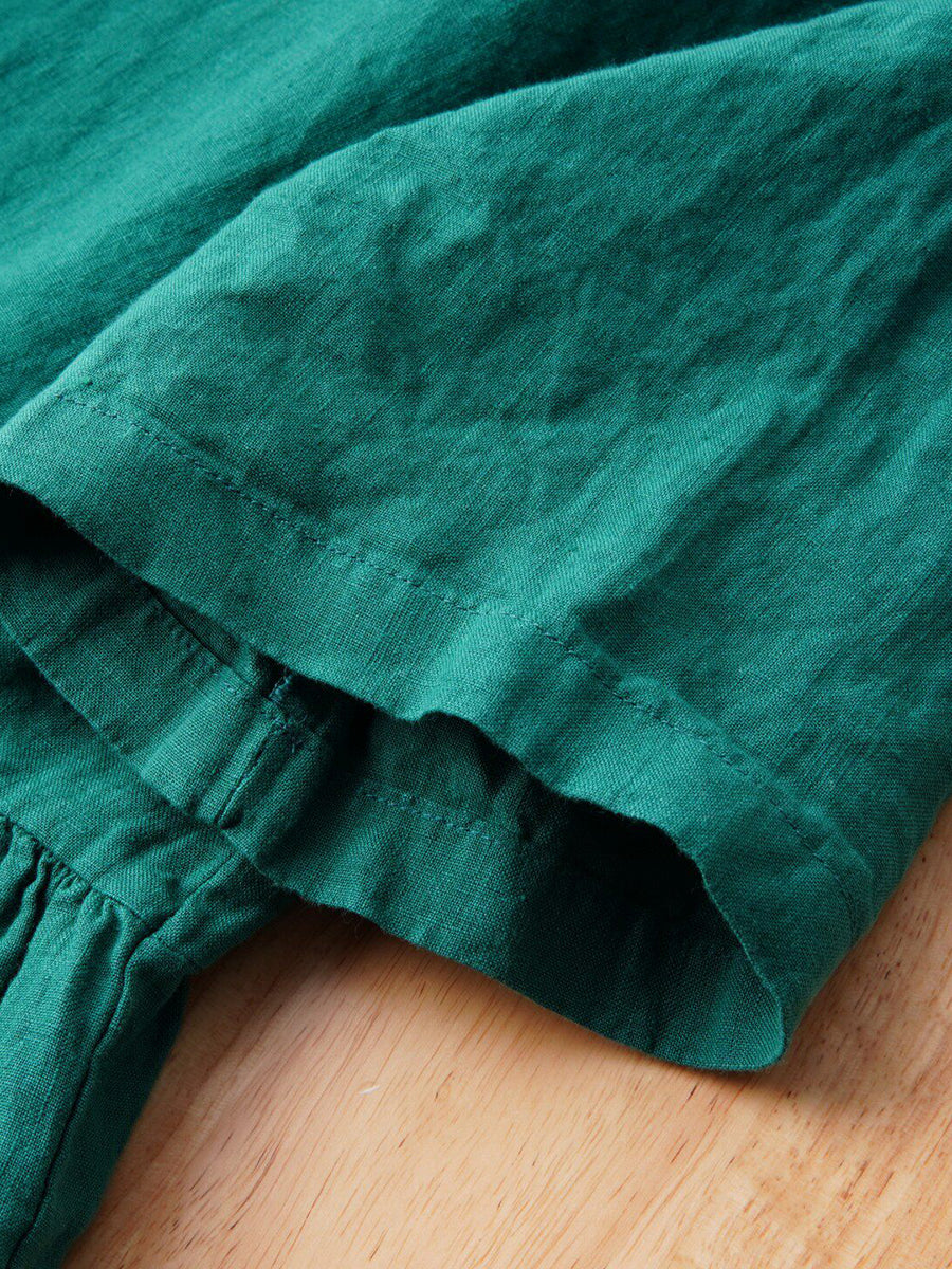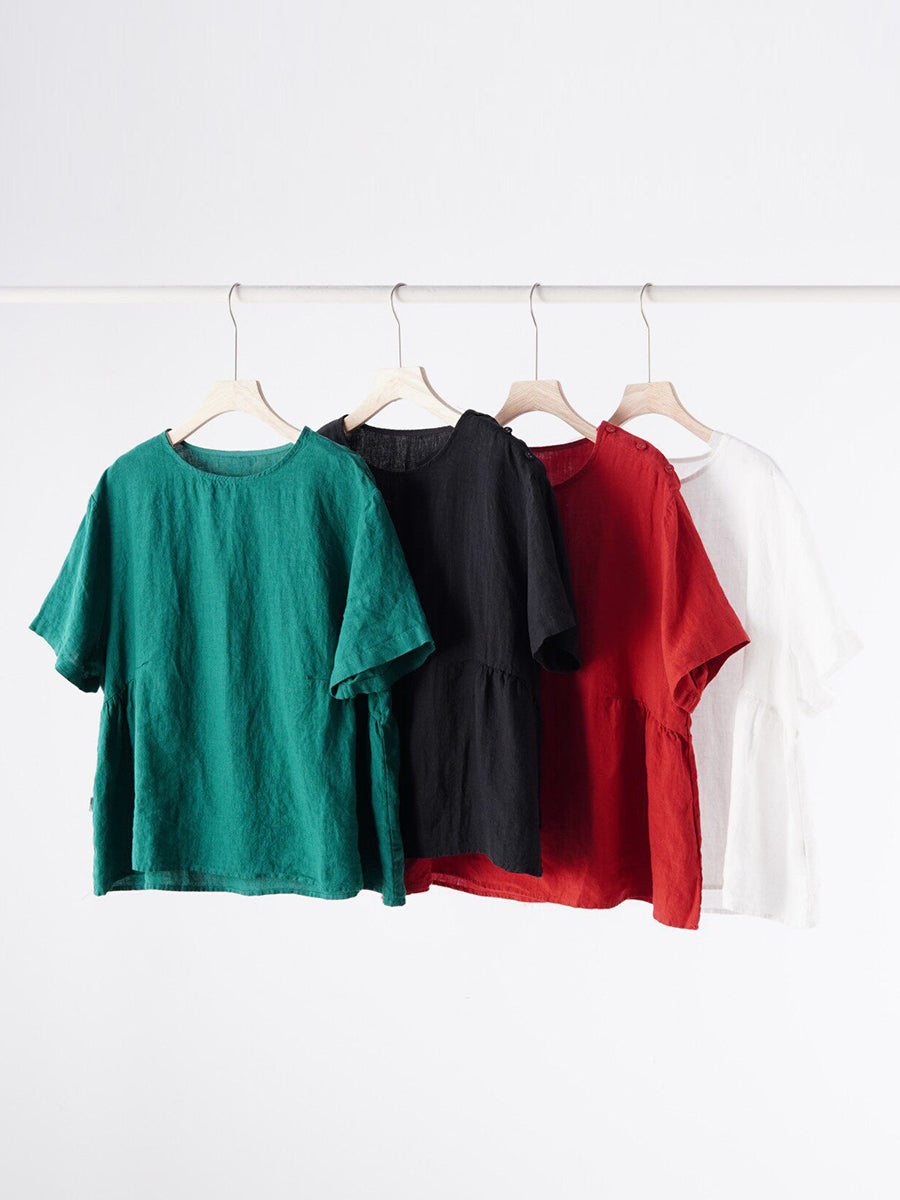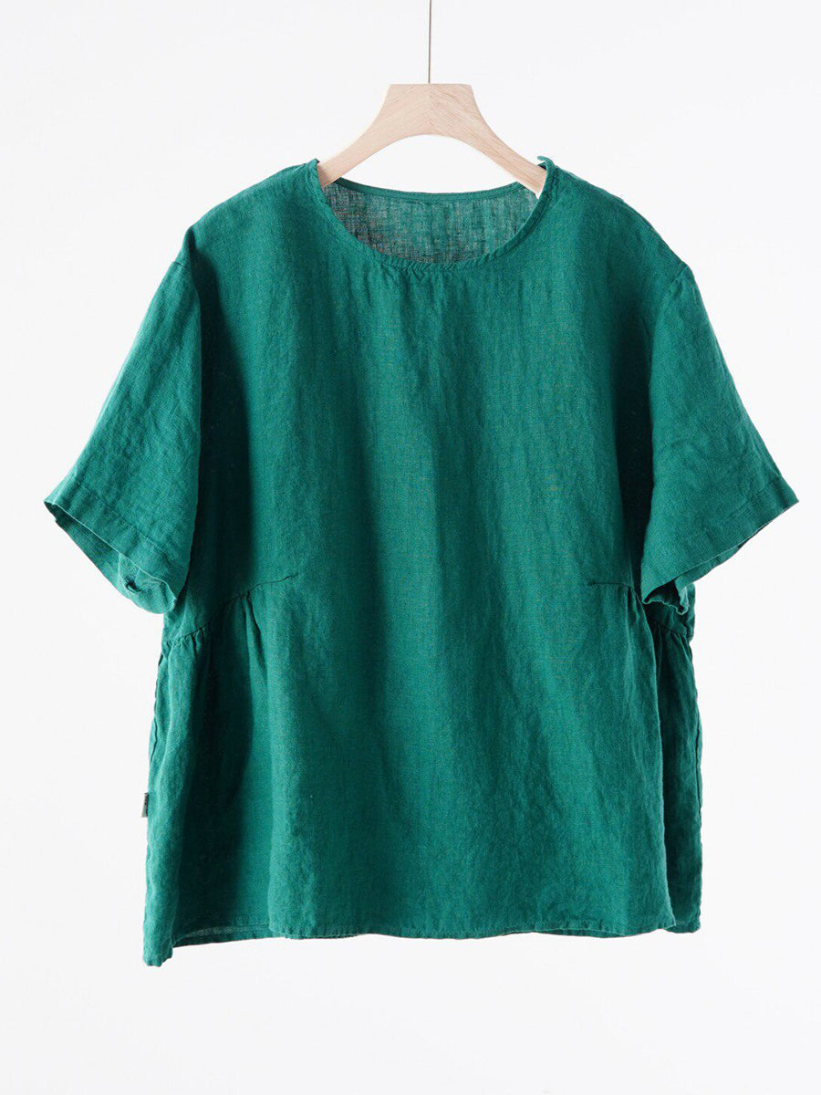 Camiseta de mujer de verano, estilo artístico, color liso, cuello redondo, 100% lino.