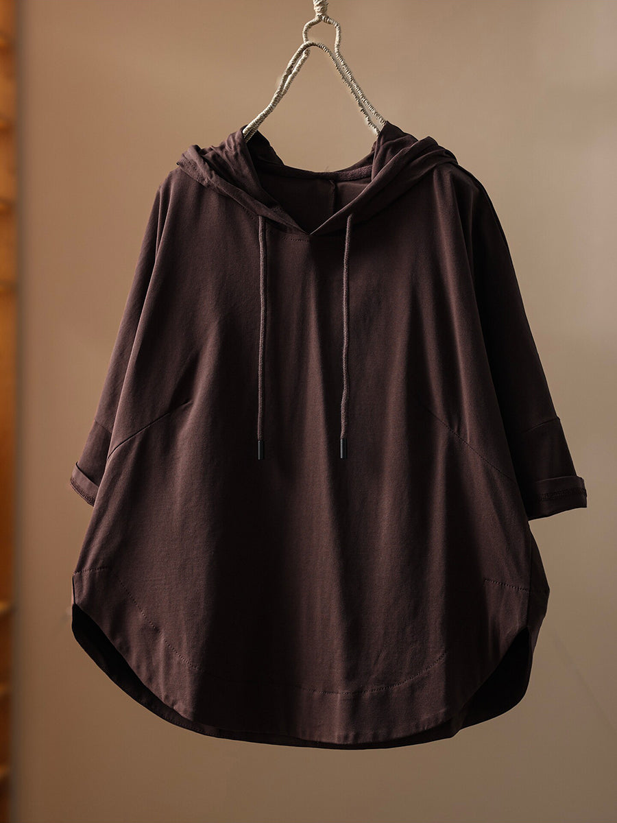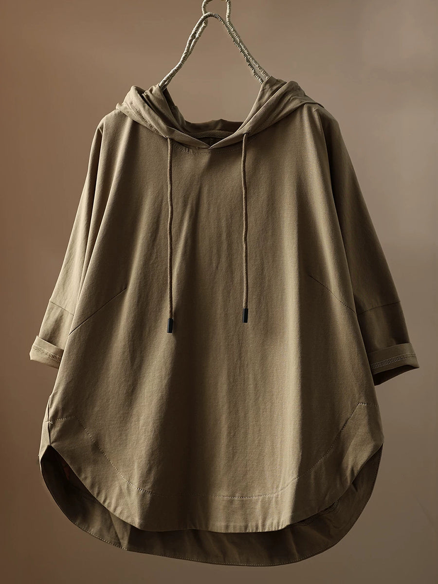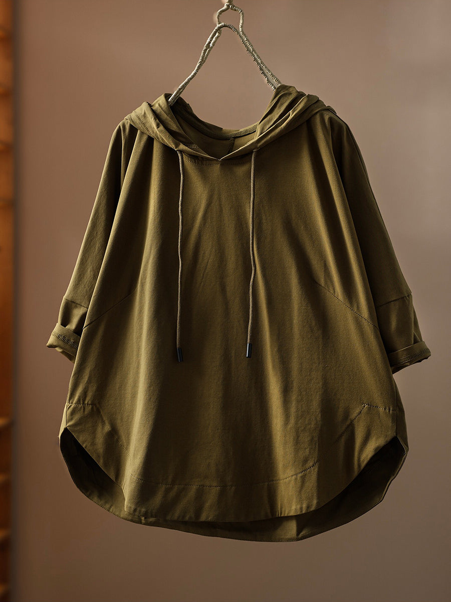 Sudadera con capucha informal de verano para mujer, color liso, 100 % algodón.