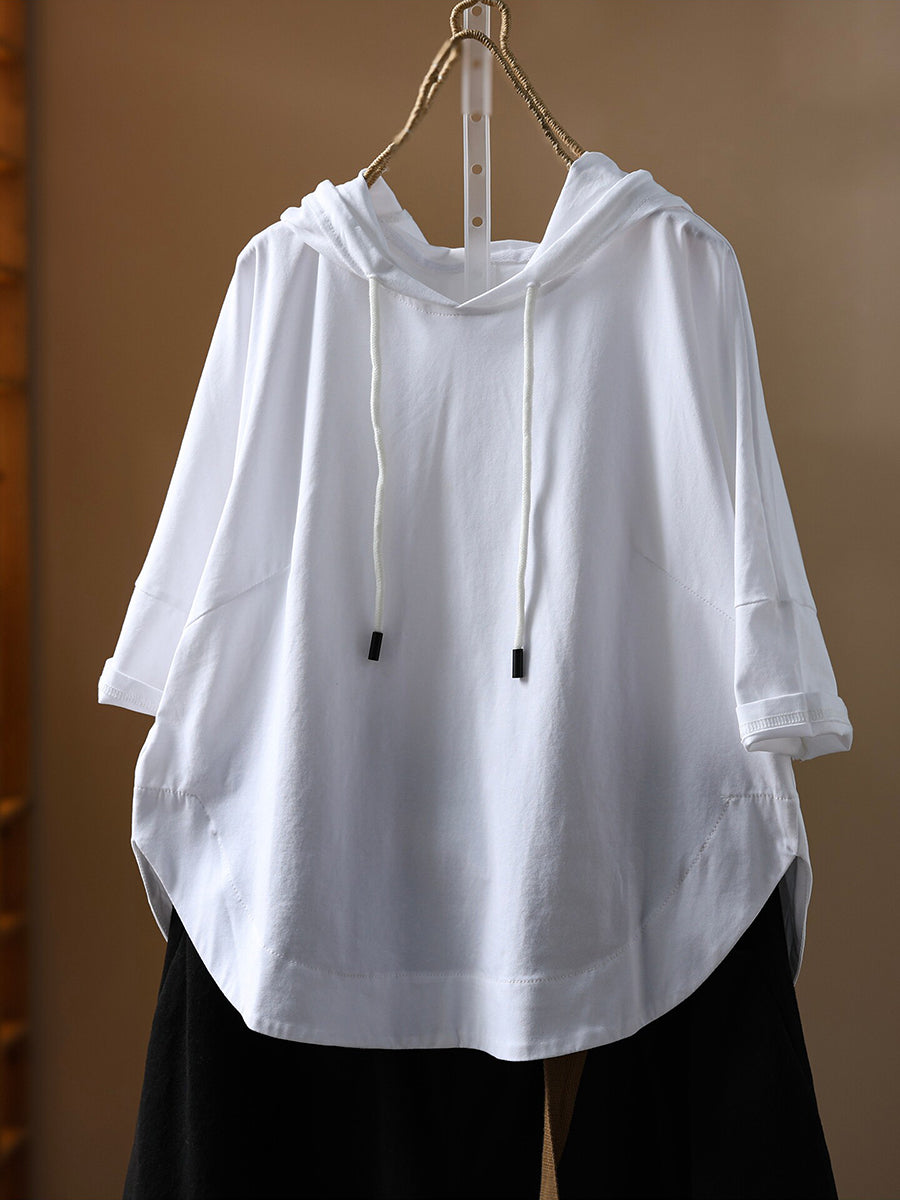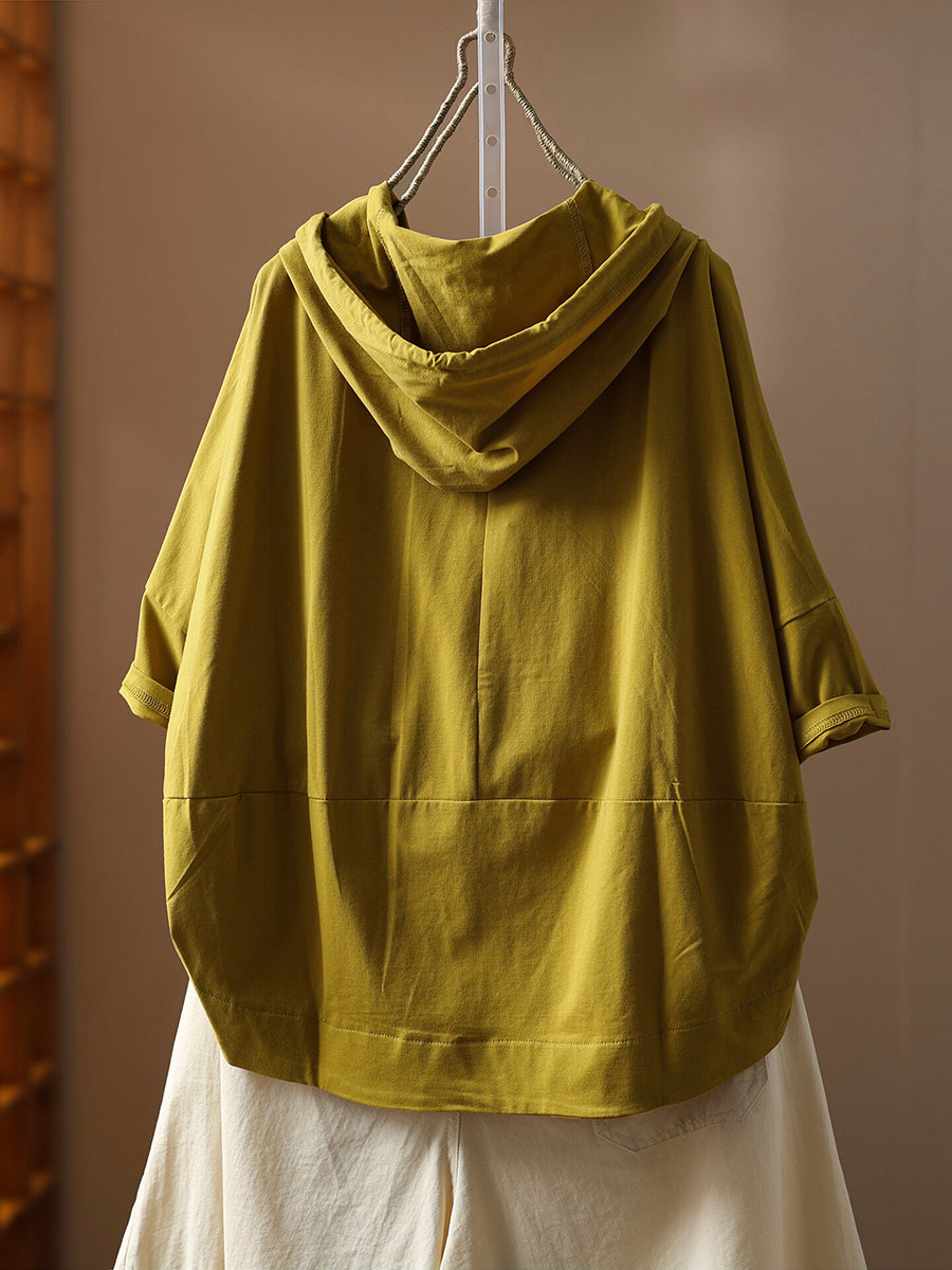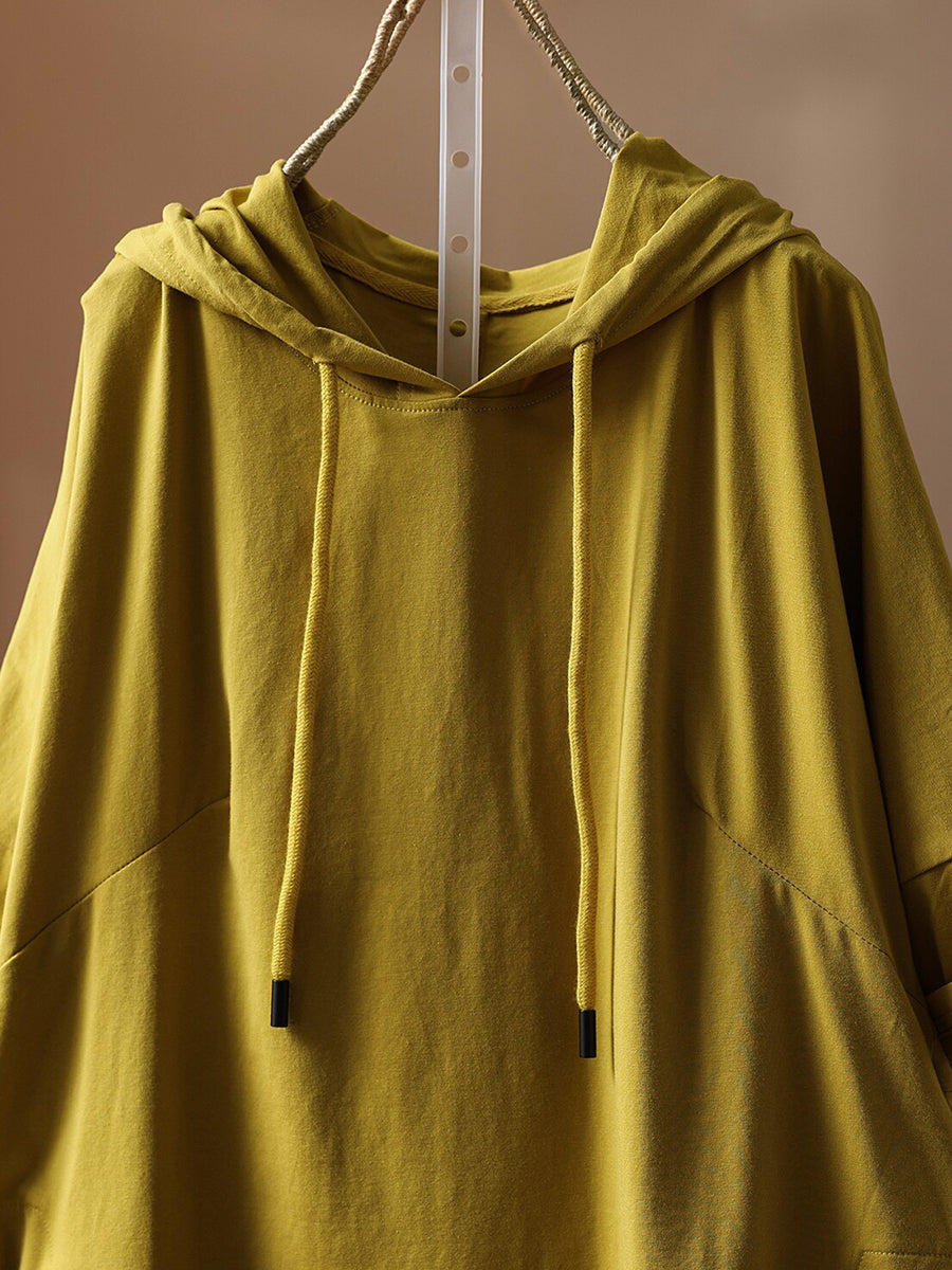 Sudadera con capucha informal de verano para mujer, color liso, 100 % algodón.