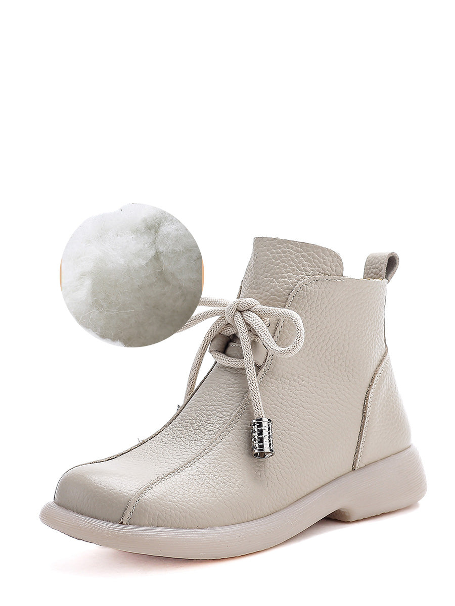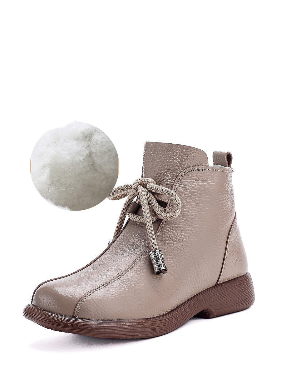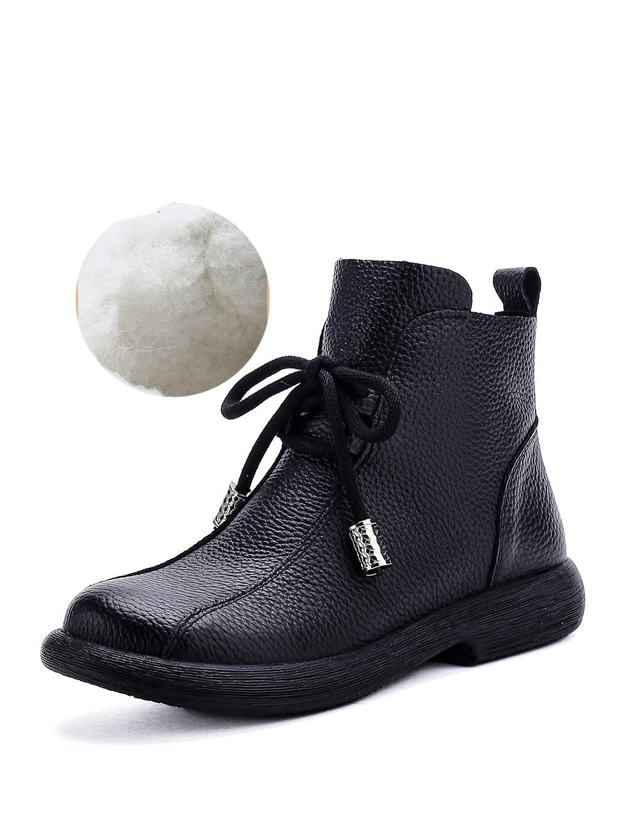 Botines de tacón bajo de piel auténtica de invierno retro para mujer