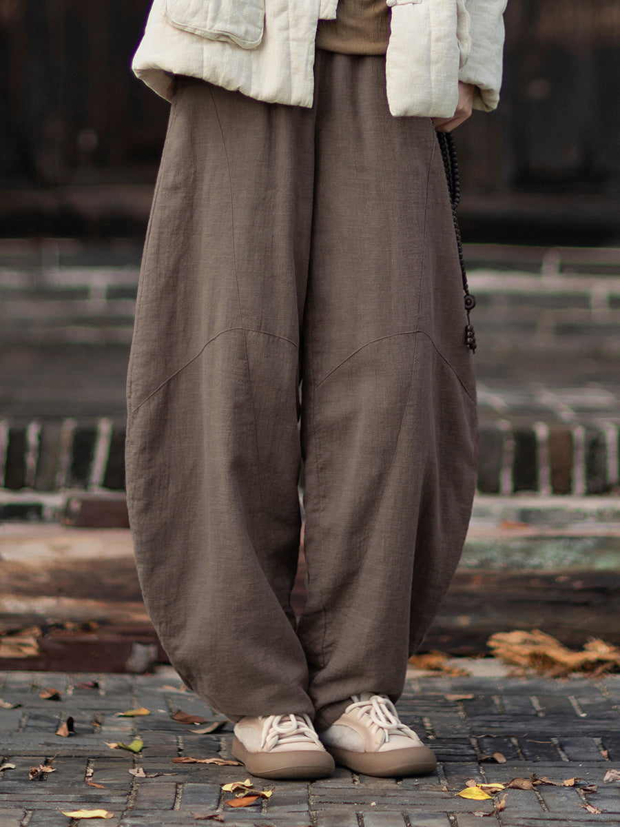 Pantalones harén acolchados de color puro retro de invierno para mujer