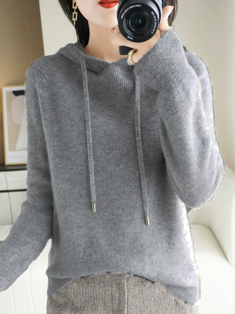 Suéter con capucha de color liso para mujer, estilo casual de otoño