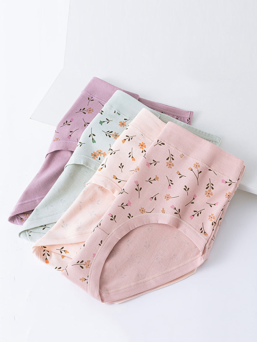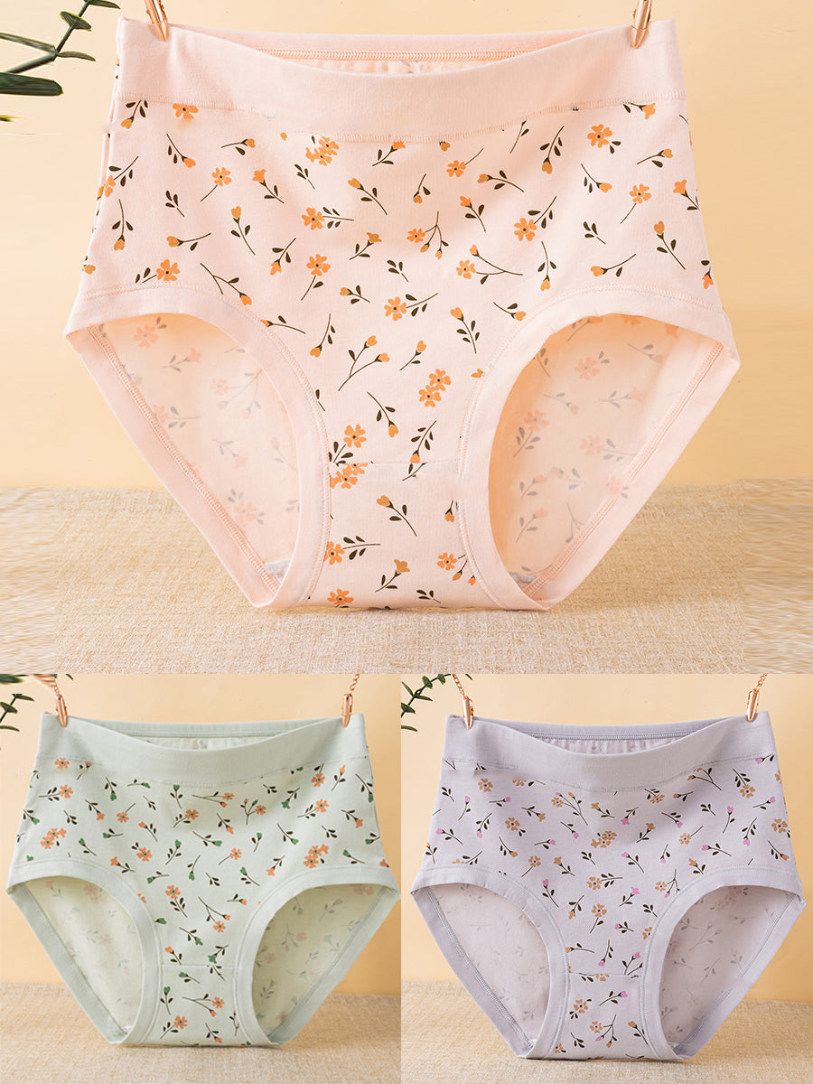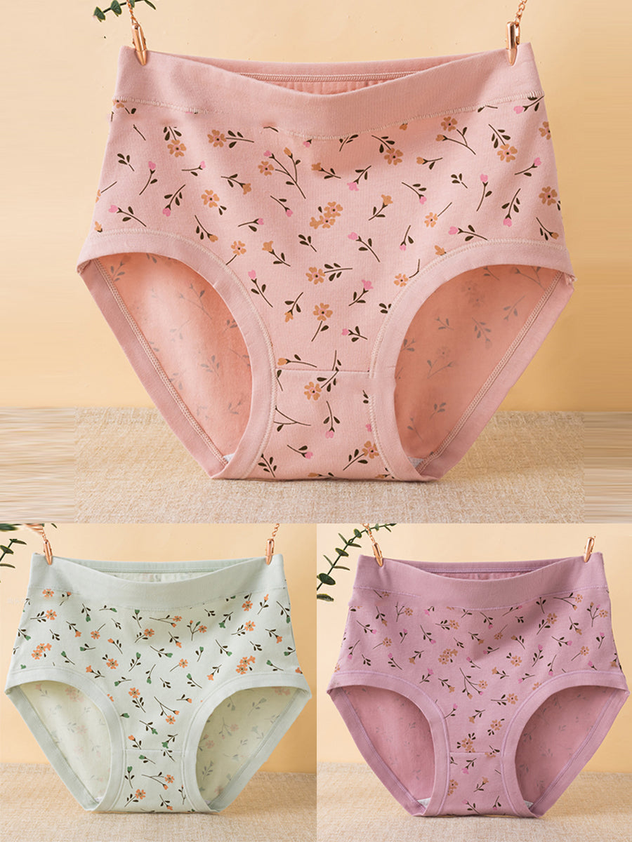 Conjunto de 3 piezas de ropa interior femenina con estampado floral y cintura alta.