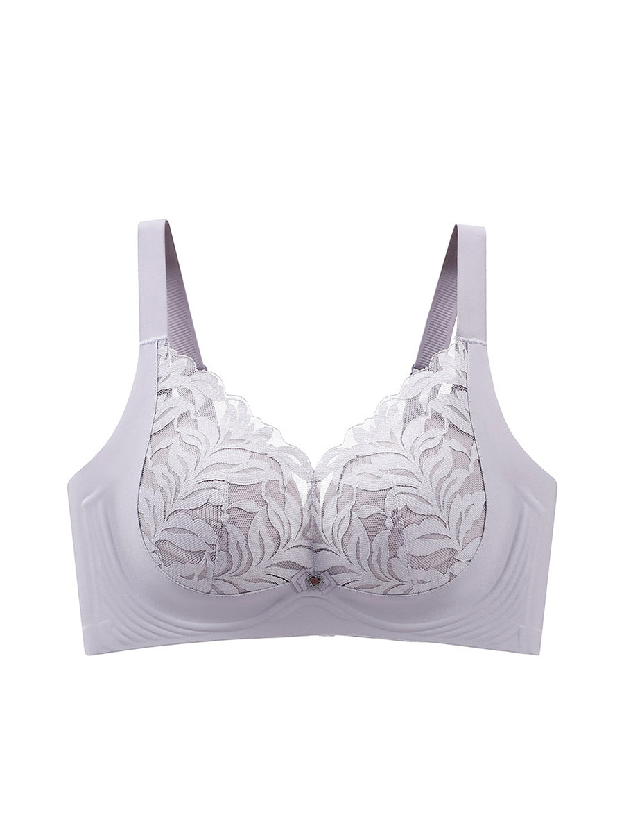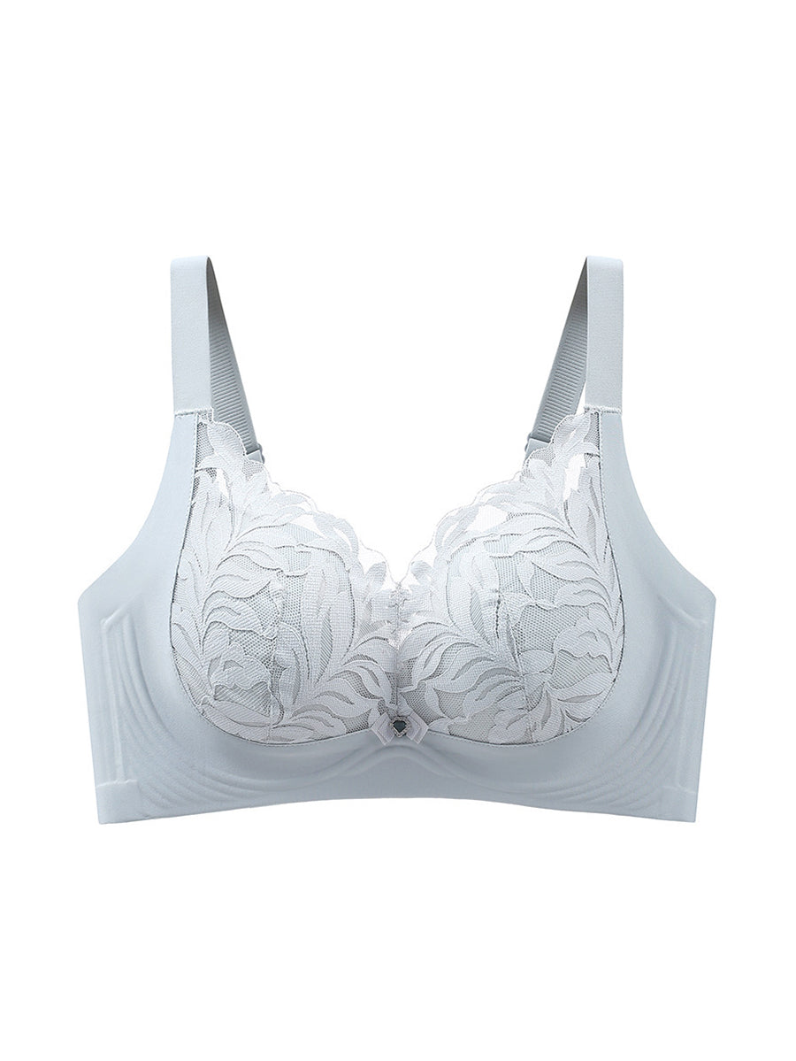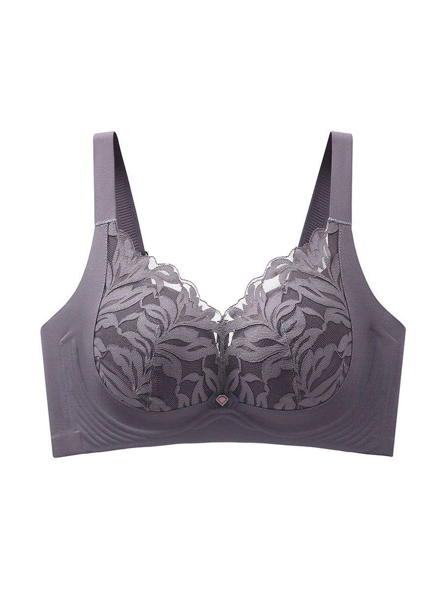 Sujetador sin aros de encaje con estampado floral artístico para mujer