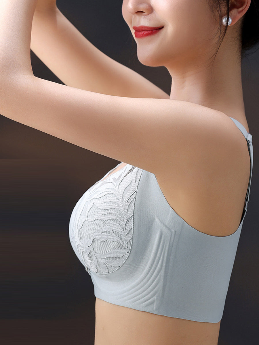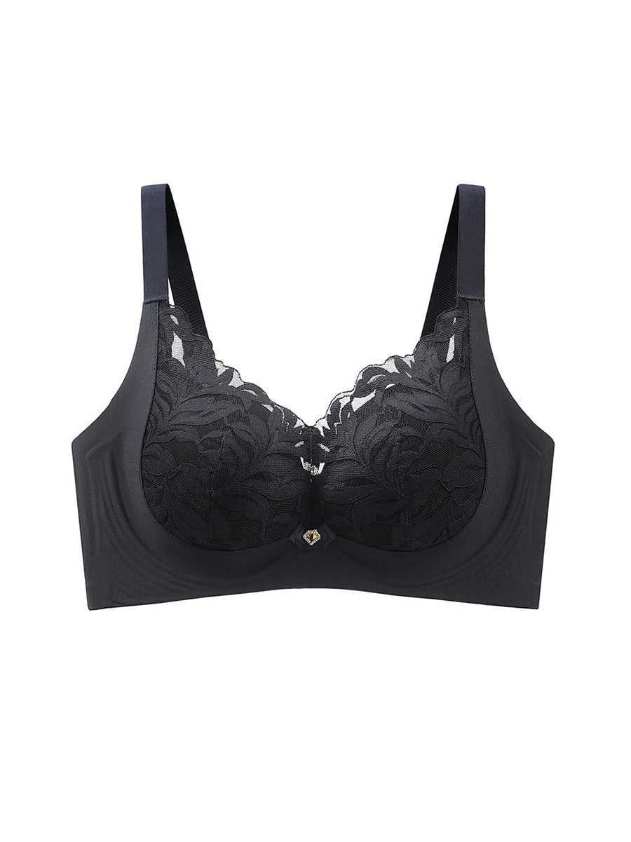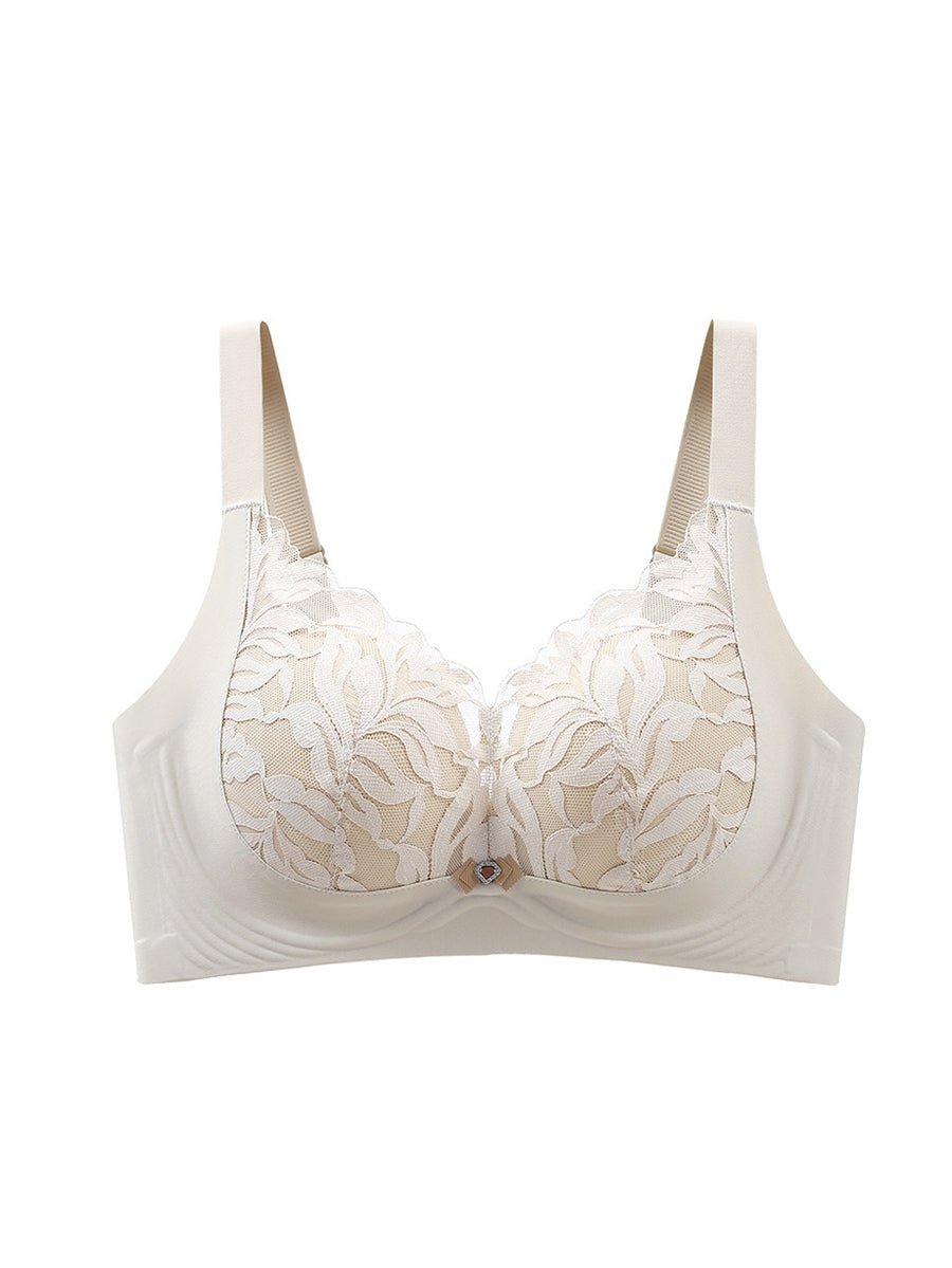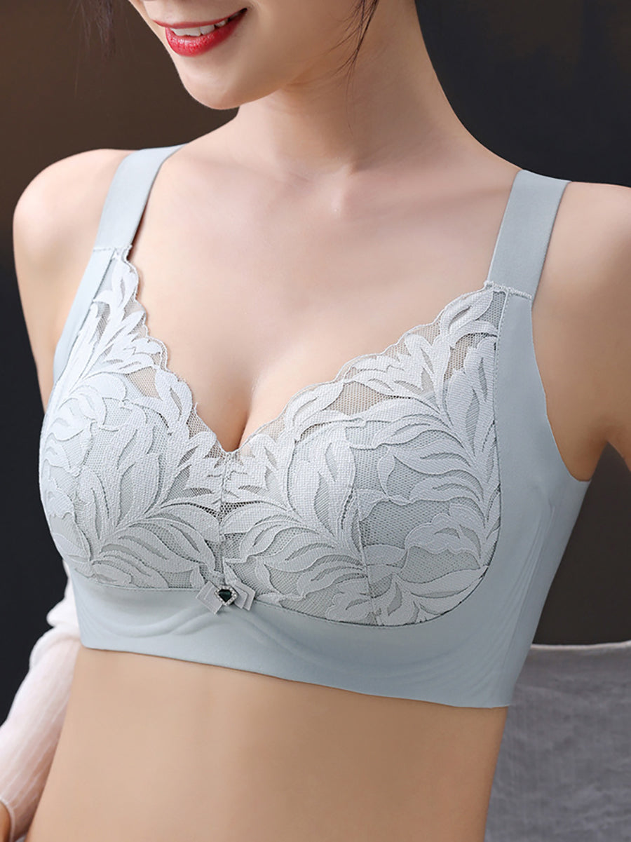 Sujetador sin aros de encaje con estampado floral artístico para mujer