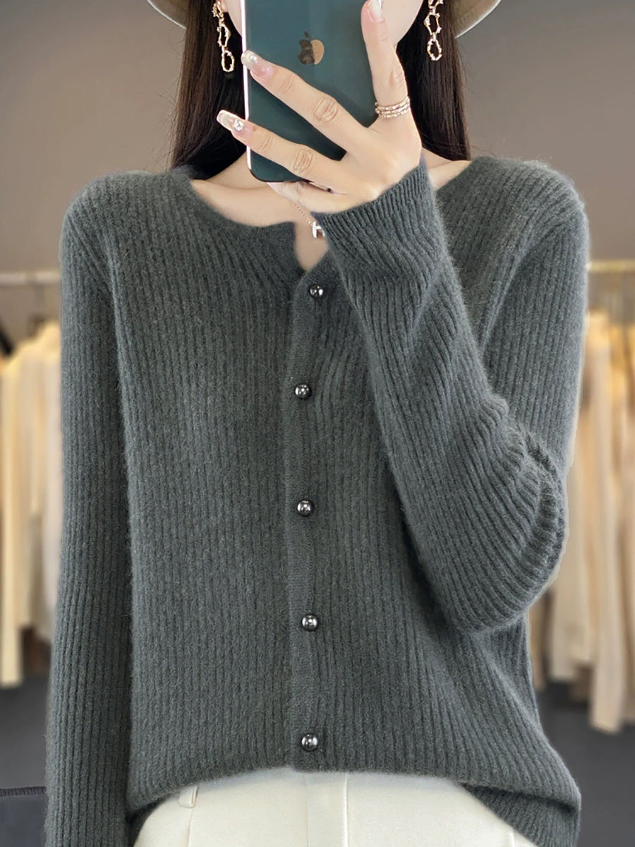 Suéter de lana de punto con cuello en V elegante de otoño para mujer