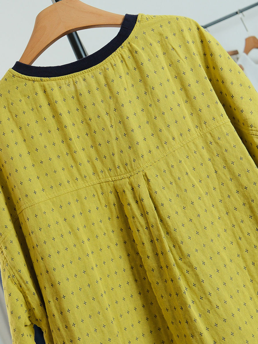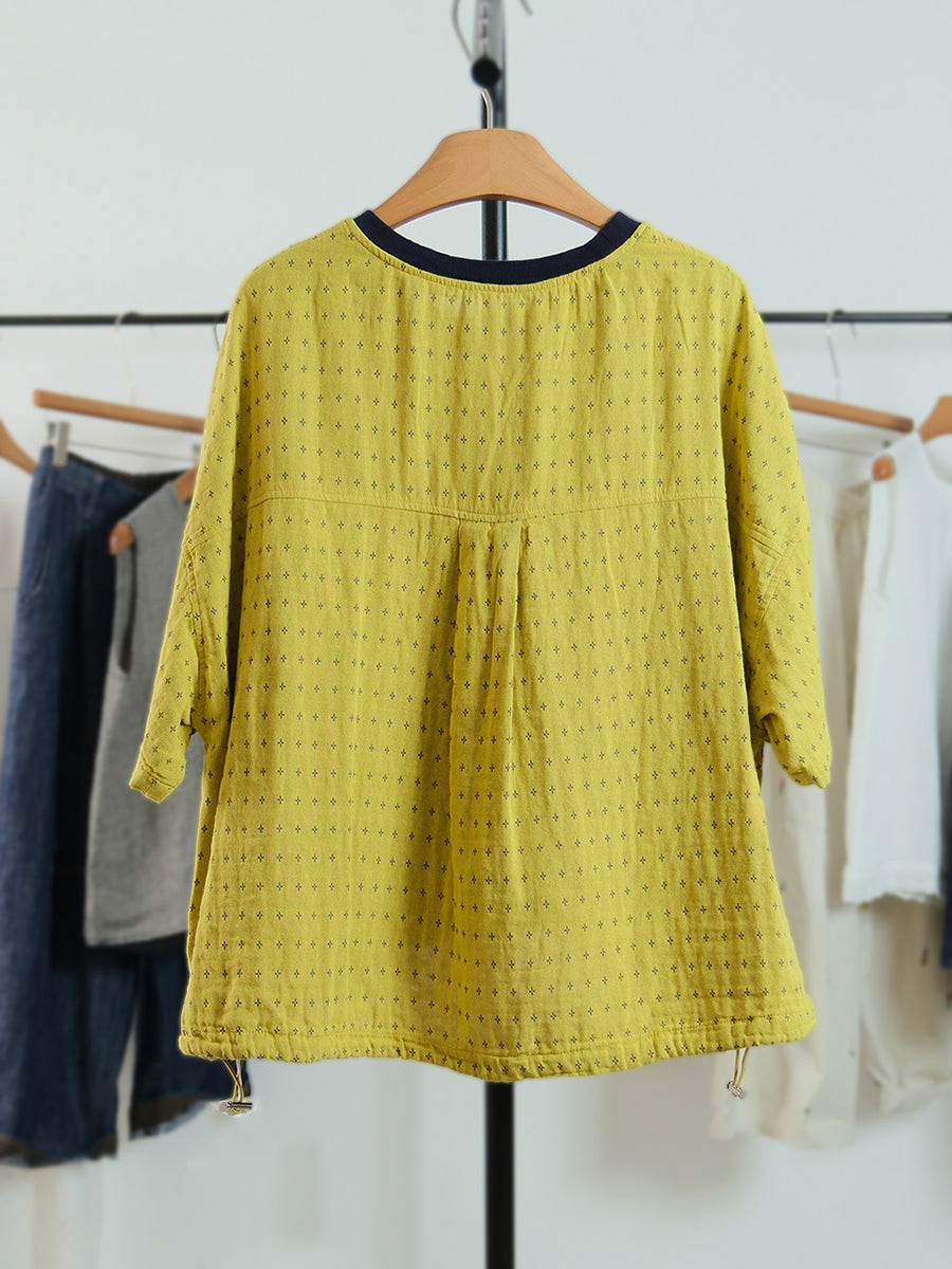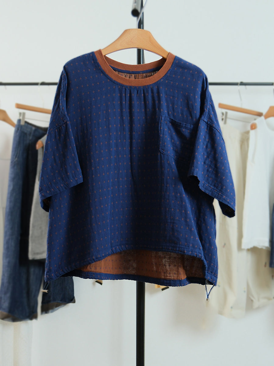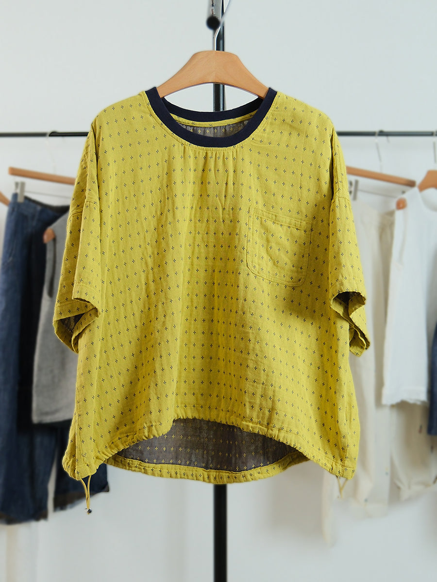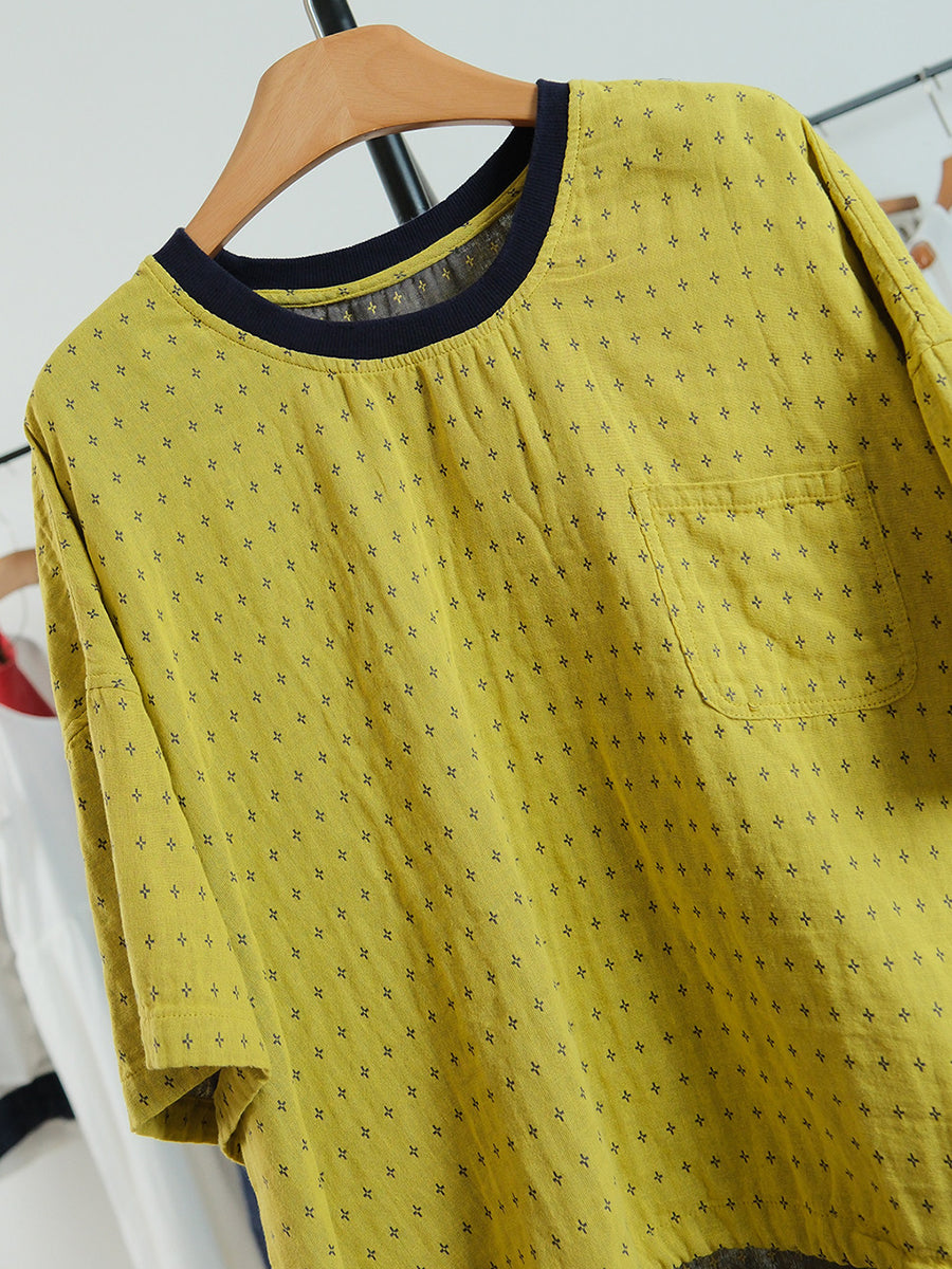 Camiseta de algodón con cuello redondo y estampado de lunares para mujer, ideal para el verano.
