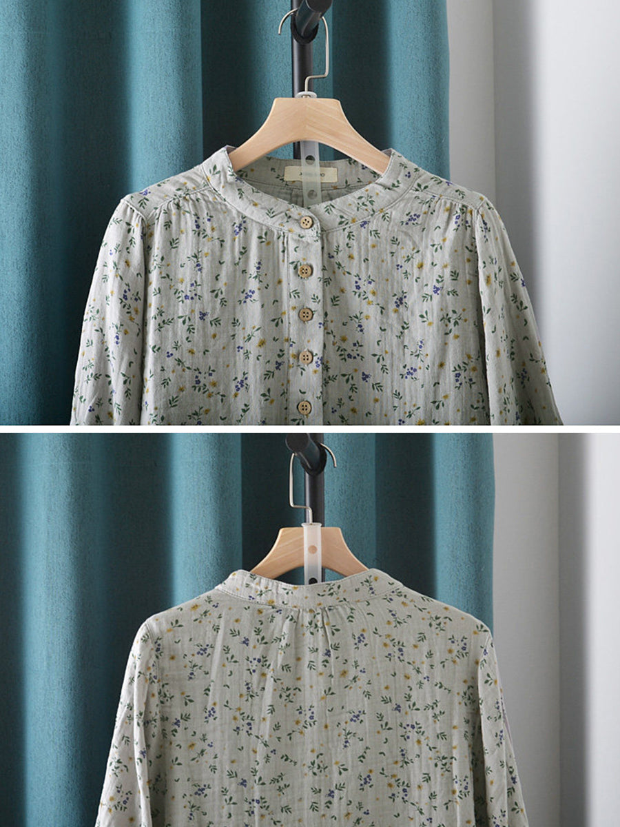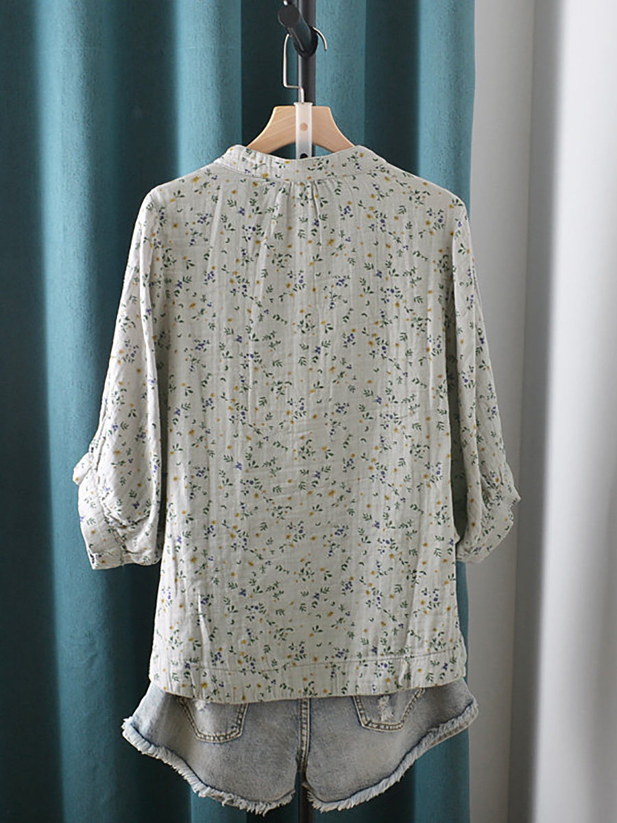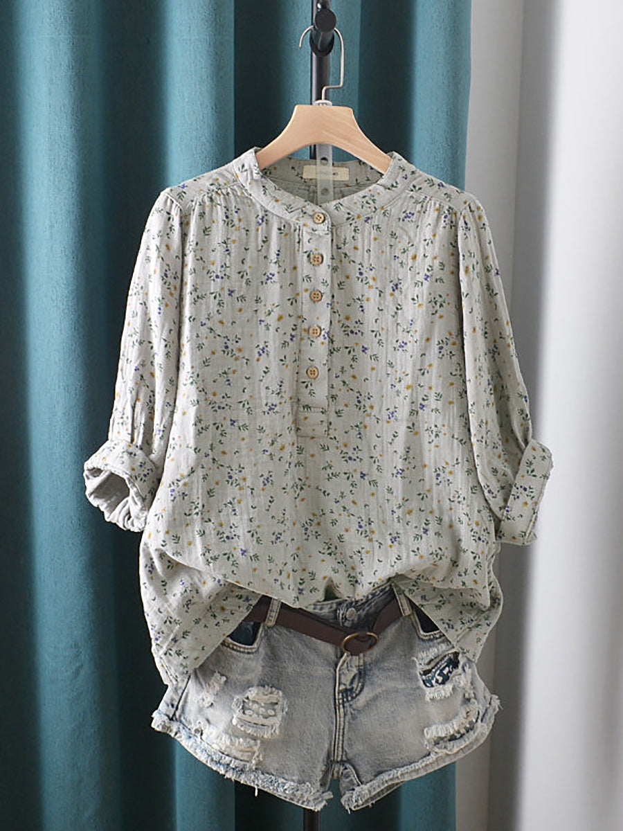 Blusa de verano para mujer con estampado floral artístico, 100% algodón, cuello alto.
