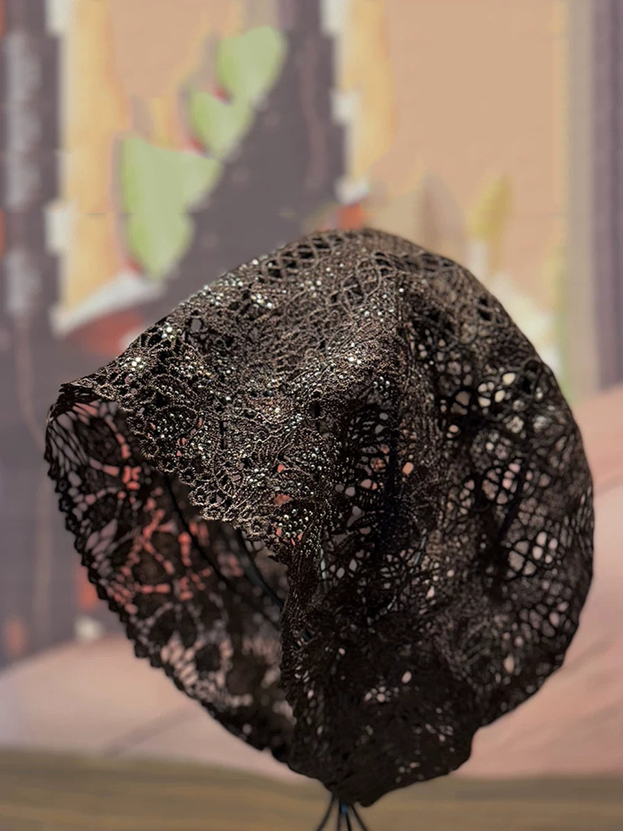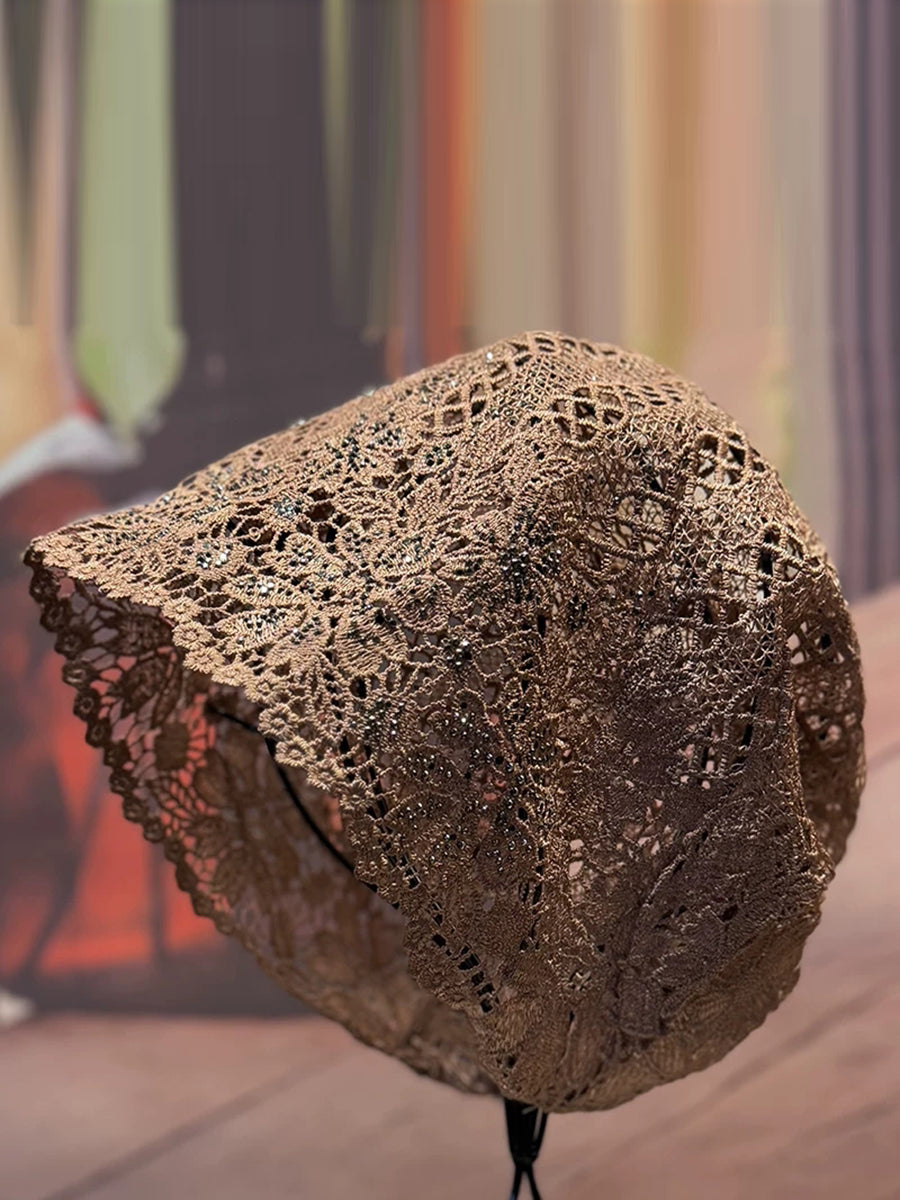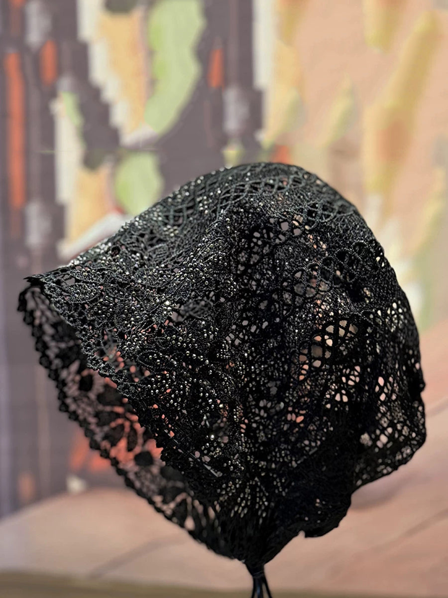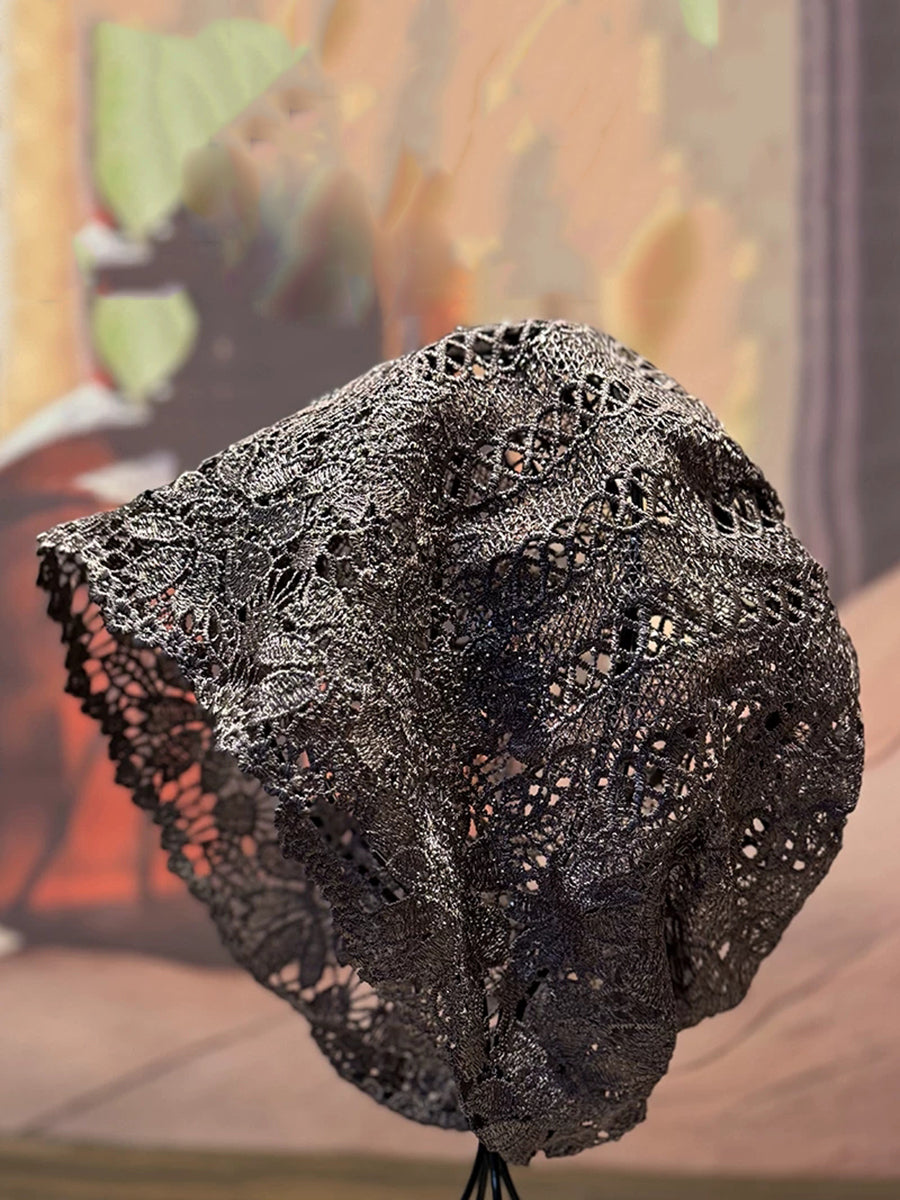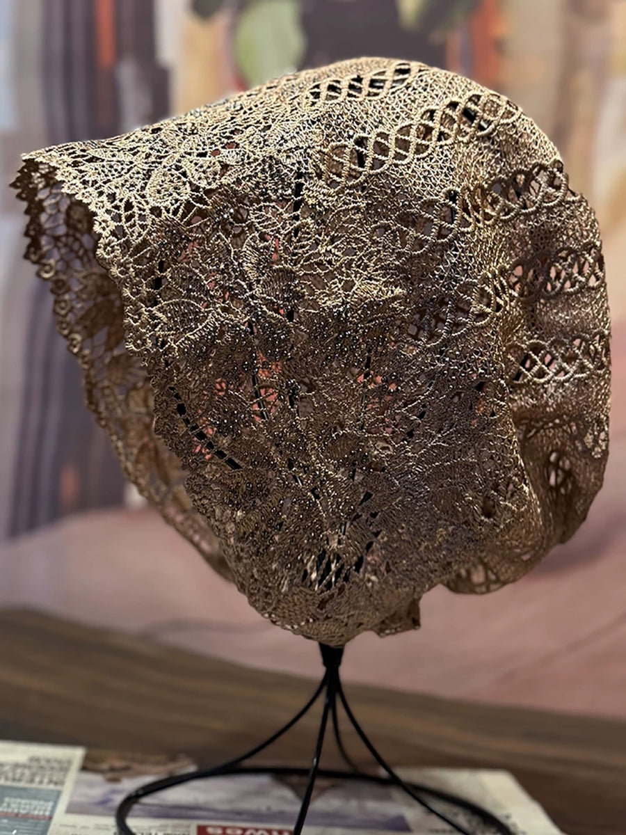 Gorro de punto calado con encaje floral y estilo artístico veraniego