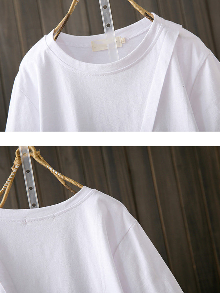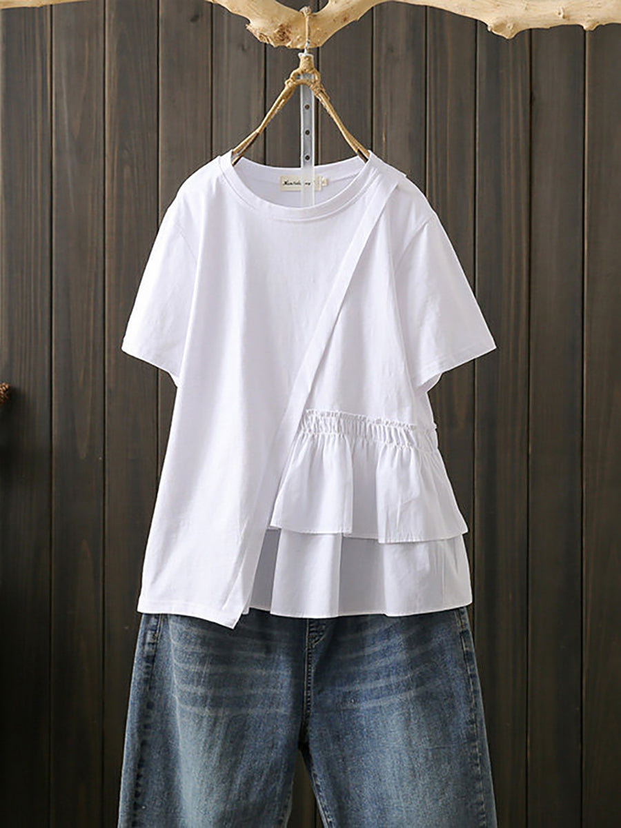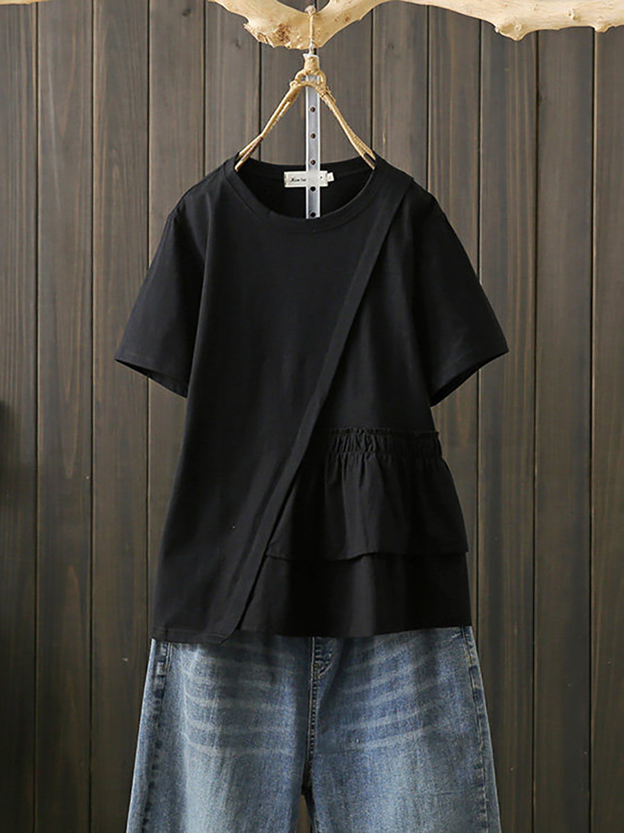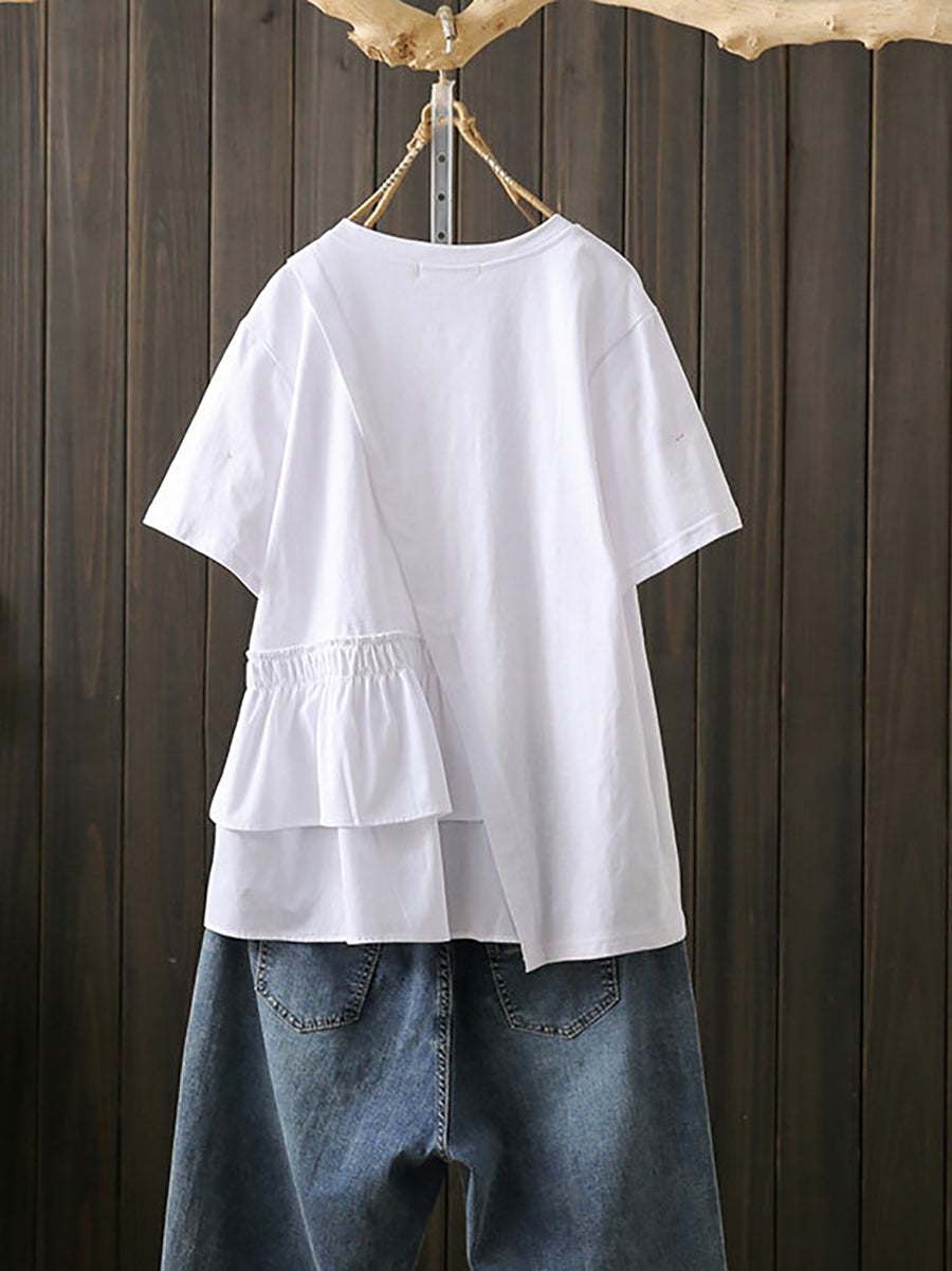Camiseta de algodón con estampado irregular y estilo artístico para mujer, ideal para el verano.
