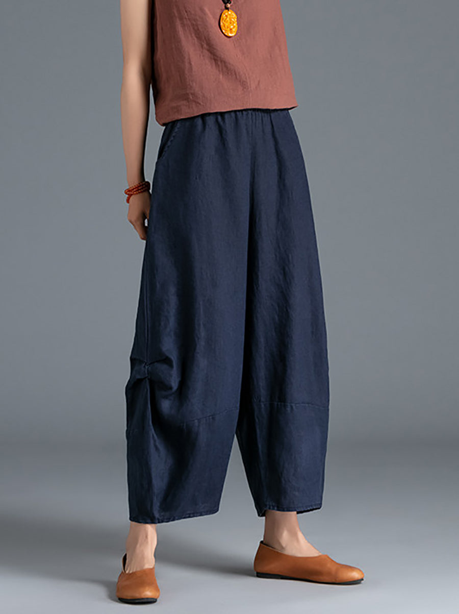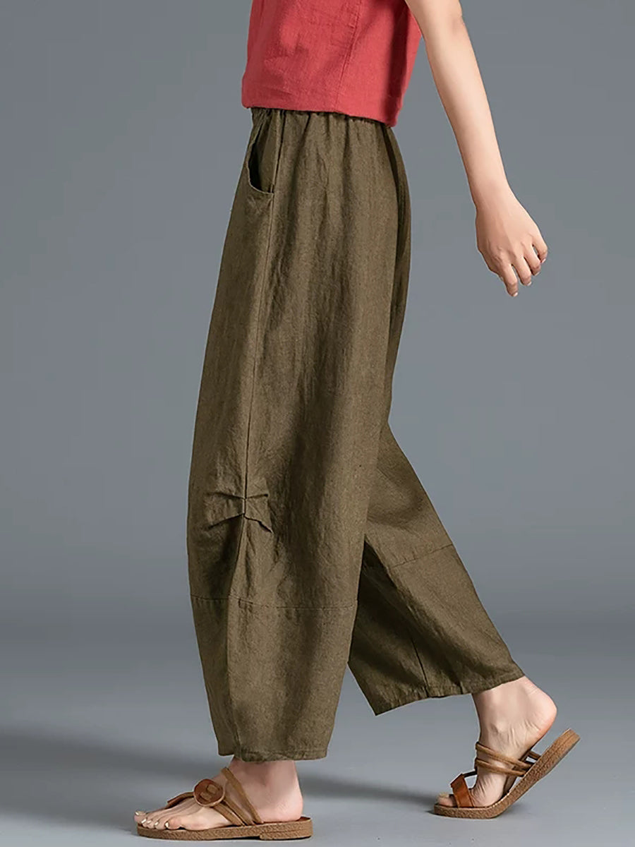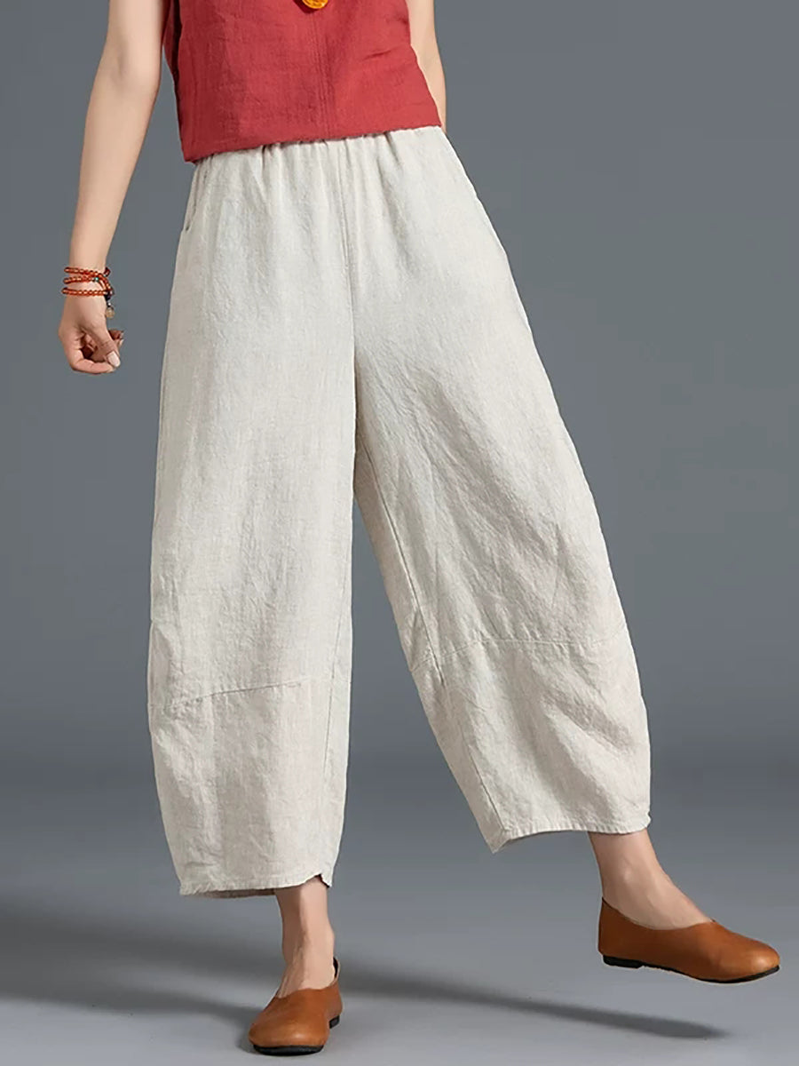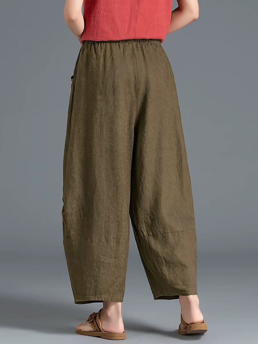 Pantalones bombachos de verano para mujer, 100 % lino, color puro