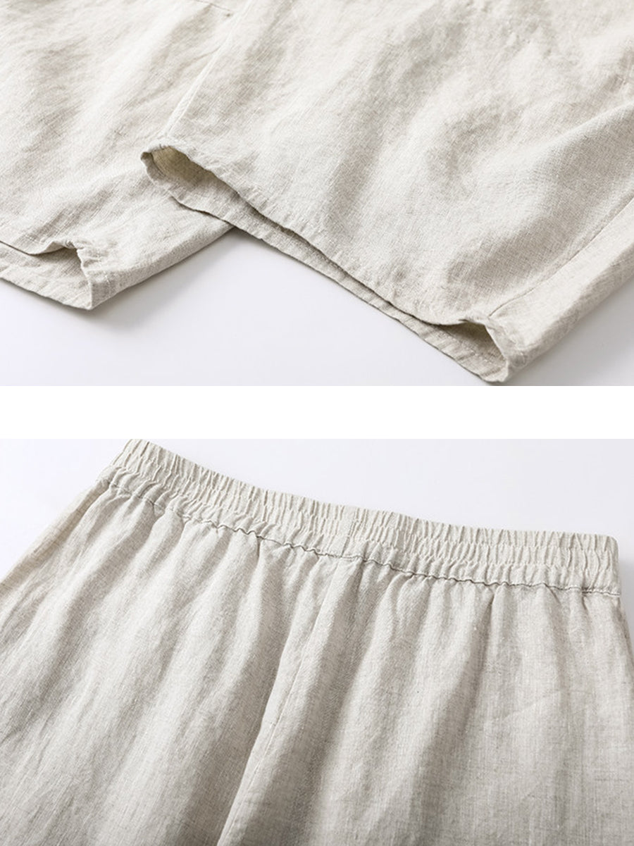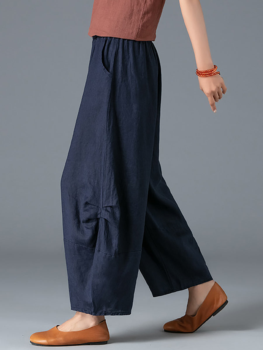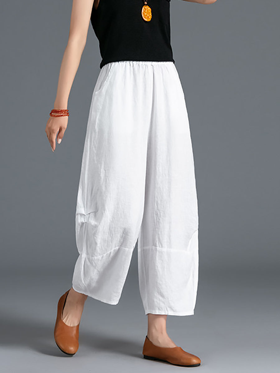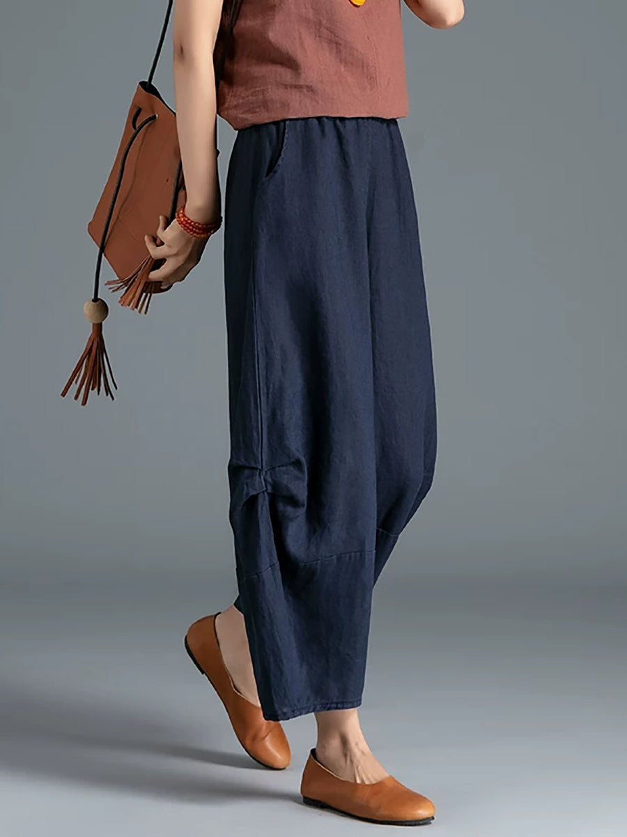 Pantalones bombachos de verano para mujer, 100 % lino, color puro