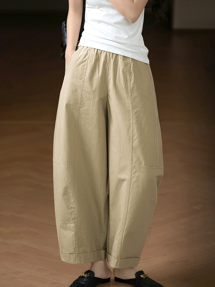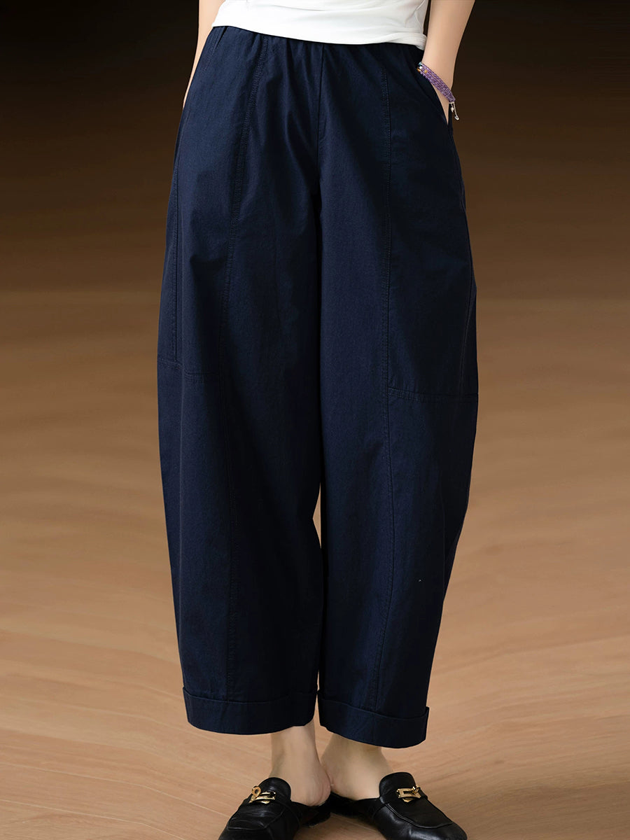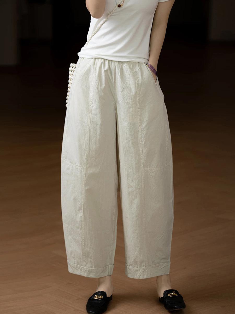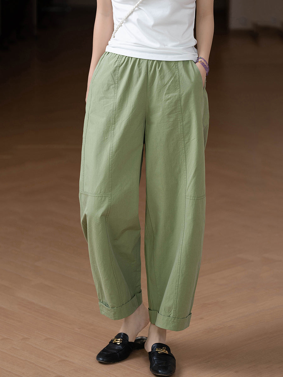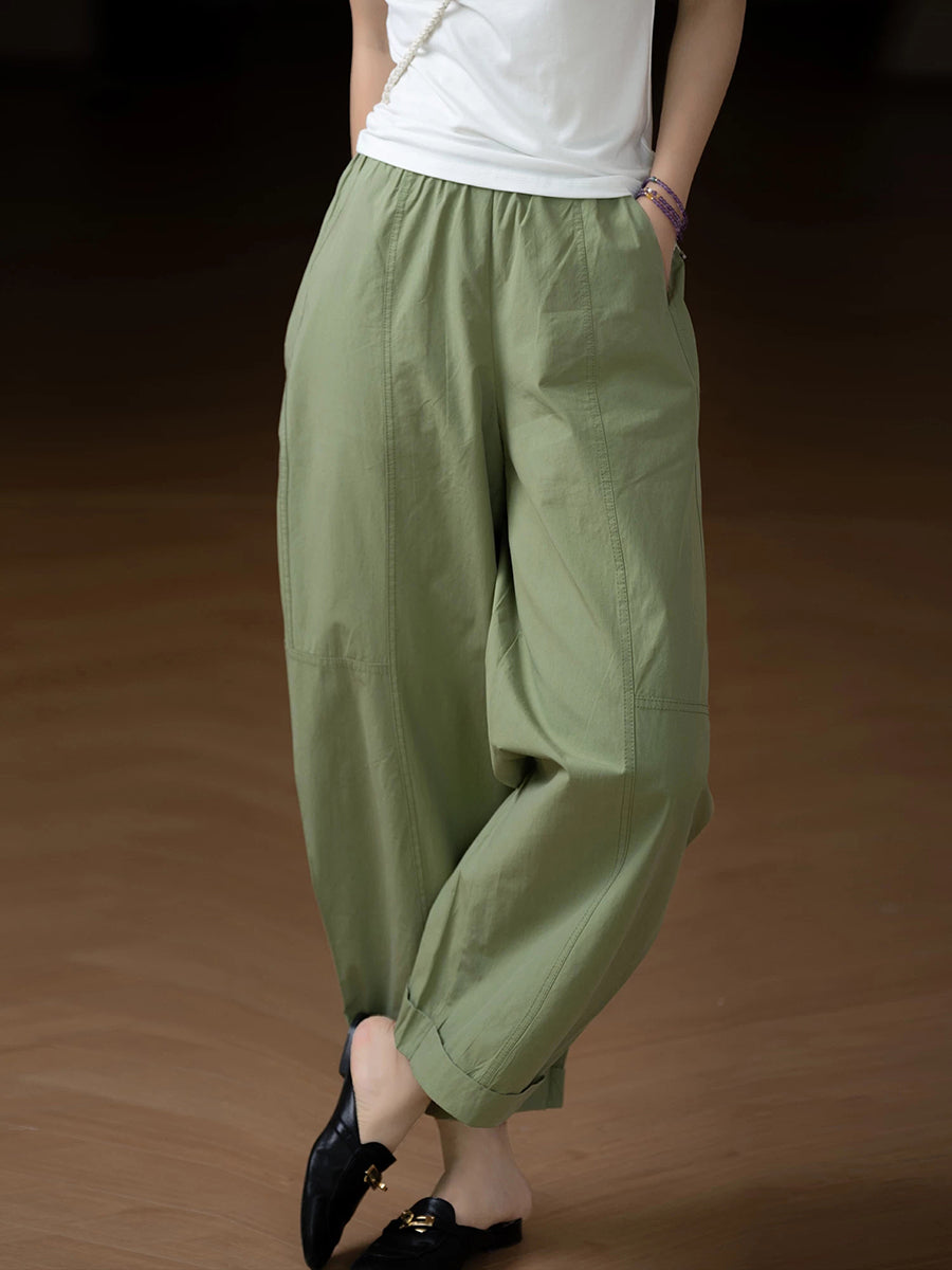 Pantalones harem casuales de verano para mujer, color liso, 100% algodón.