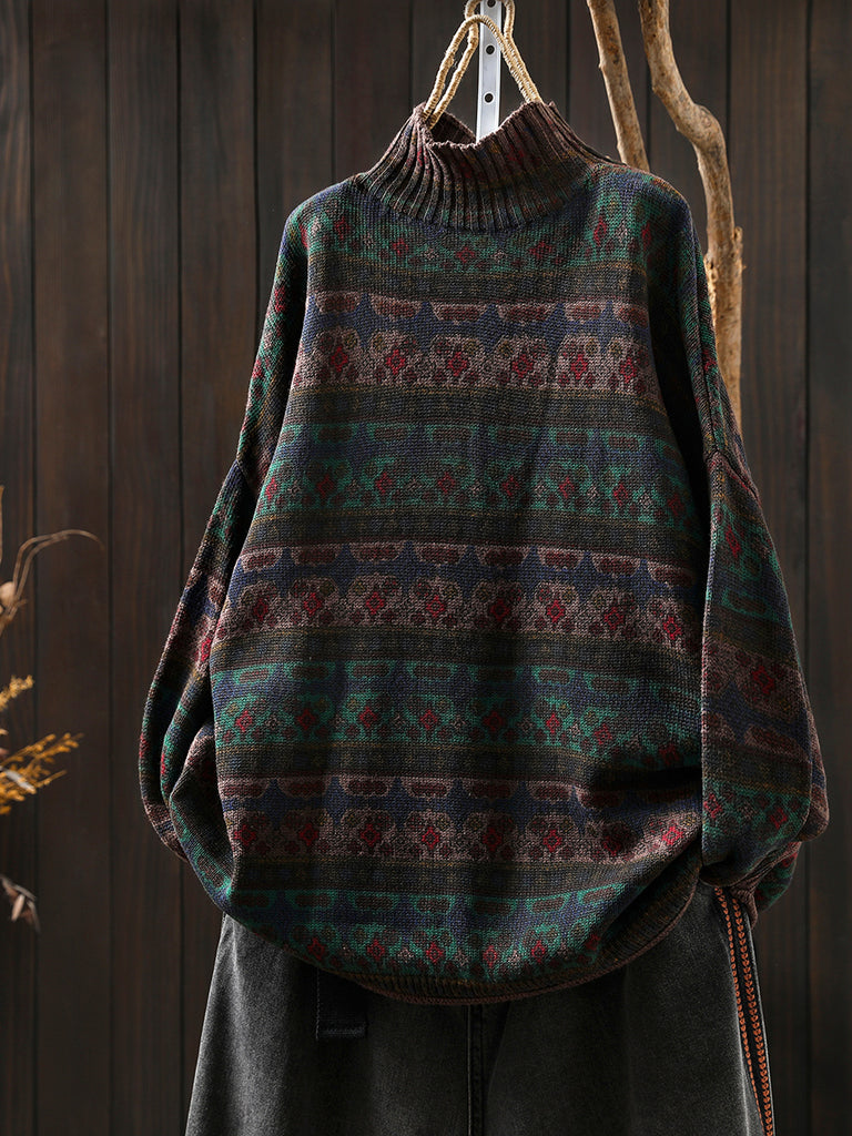 Confeccionado con una mezcla premium de 45% algodón y 55% acrílico, este suéter de inspiración vintage ofrece comodidad y durabilidad. Su cuello alto proporciona una calidez refinada, mientras que sus mangas largas ofrecen una cobertura clásica. Con un elegante estampado floral, esta prenda se adapta a la perfección al otoño y al invierno, convirtiéndose en un básico de cualquier armario sofisticado.