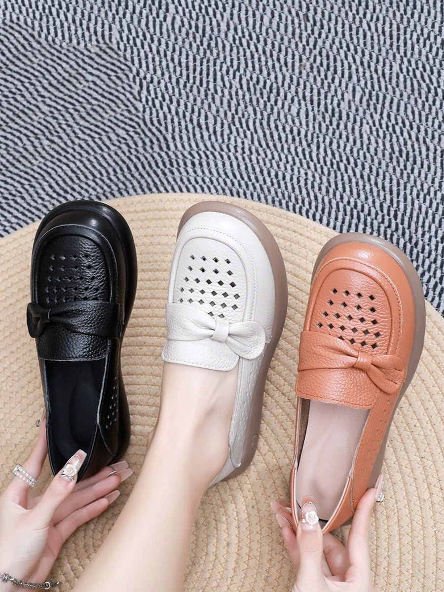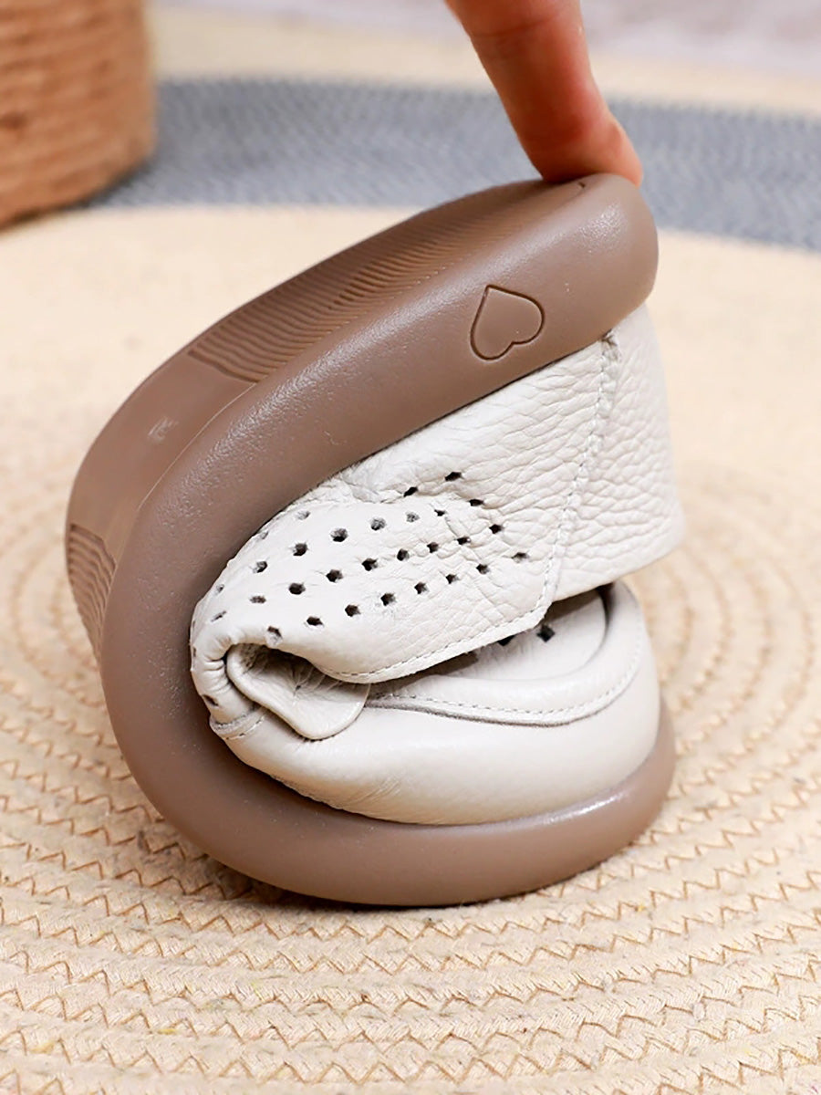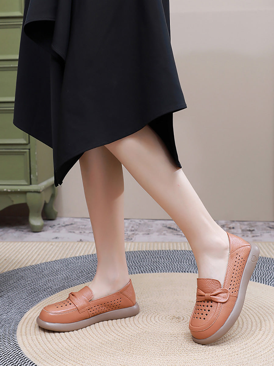 Zapatos planos casuales de piel auténtica para mujer, ideales para el verano.