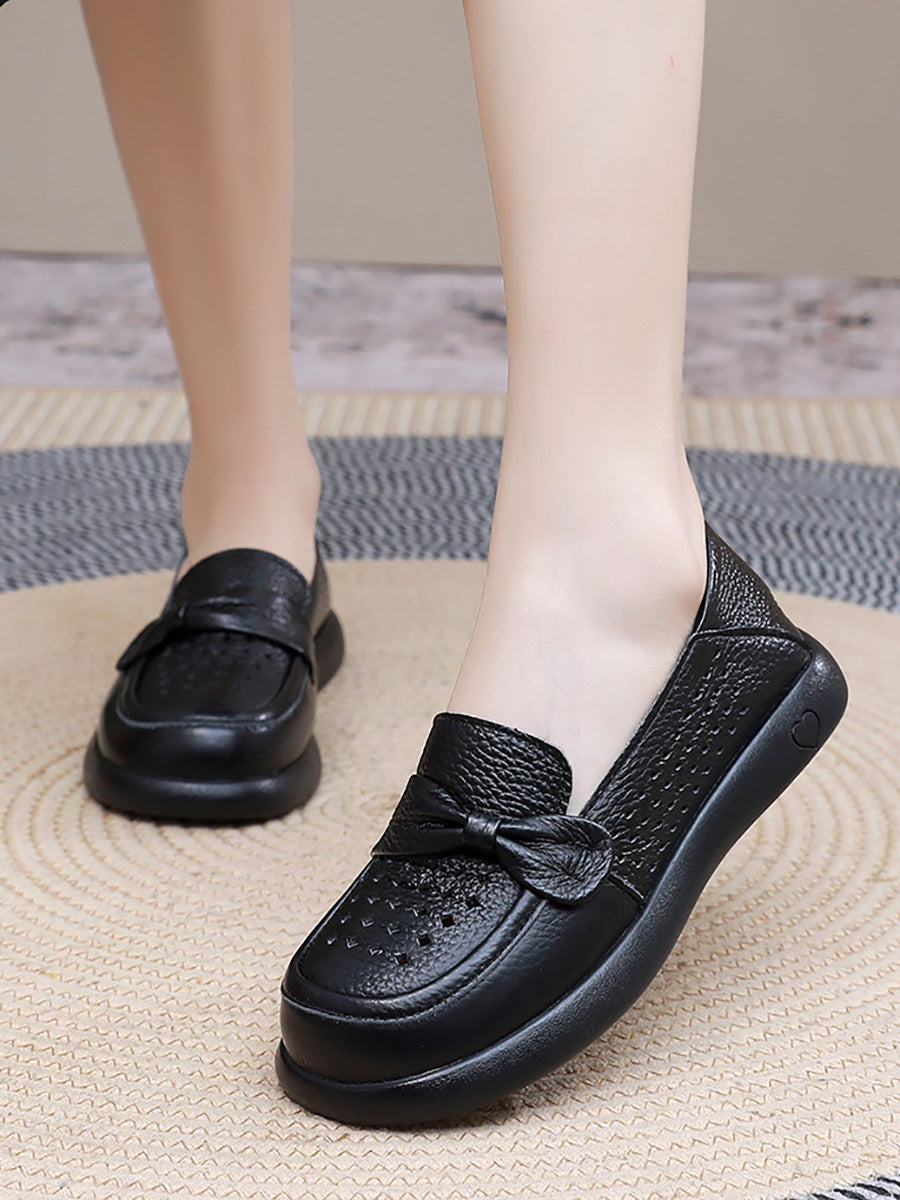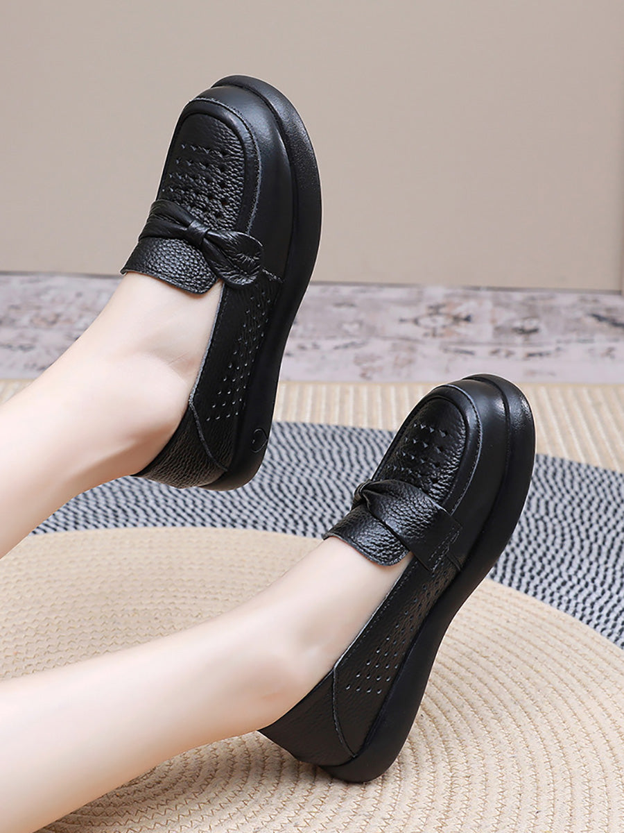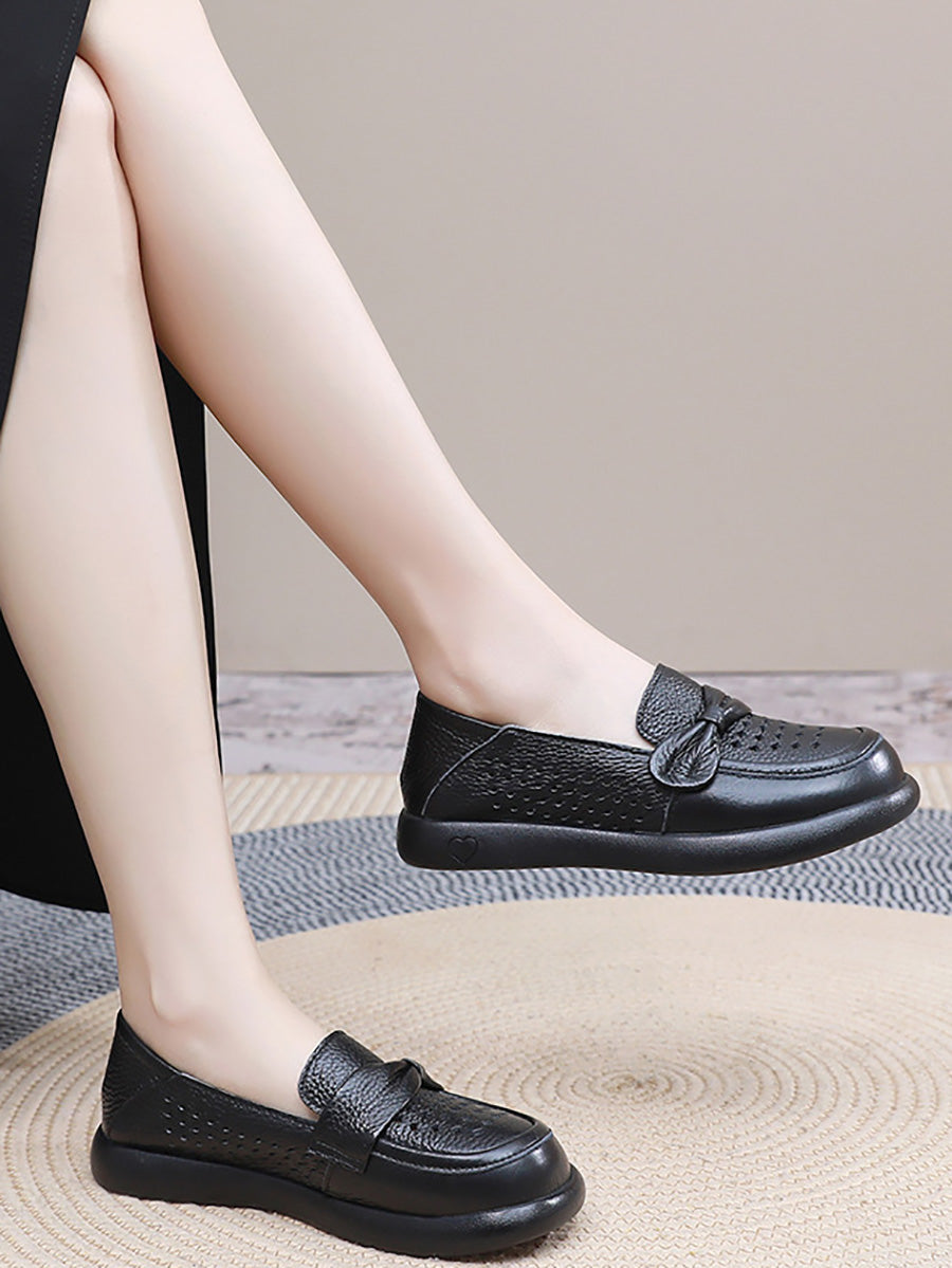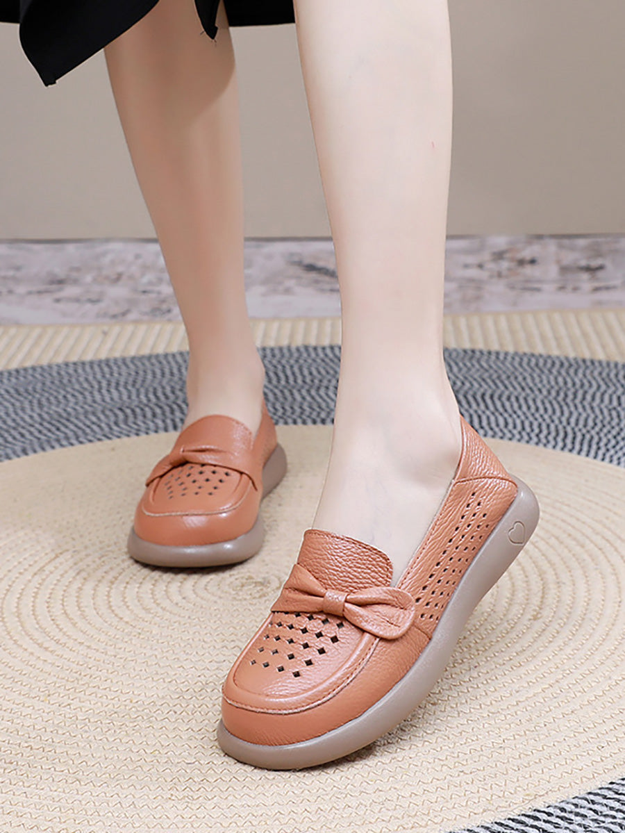 Zapatos planos casuales de piel auténtica para mujer, ideales para el verano.