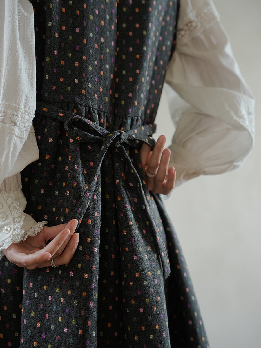 Vestido tipo chaleco con cuello redondo y lunares coloridos de otoño para mujer