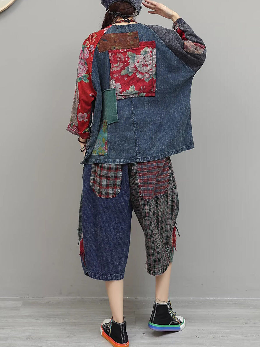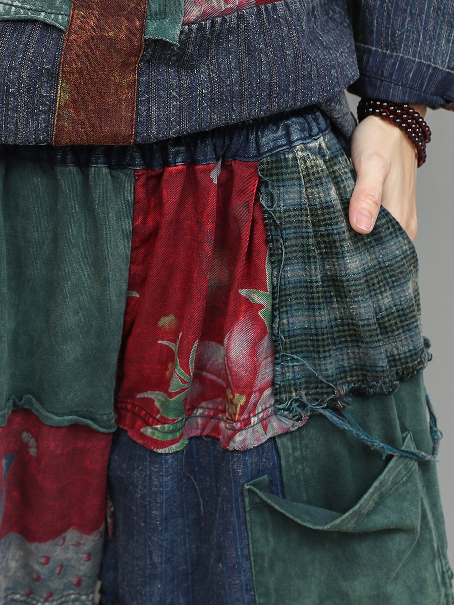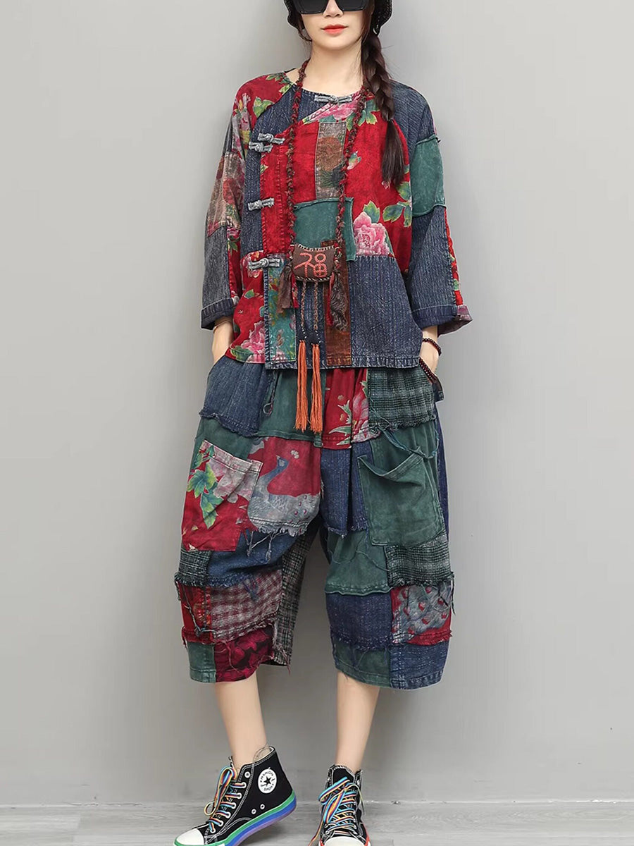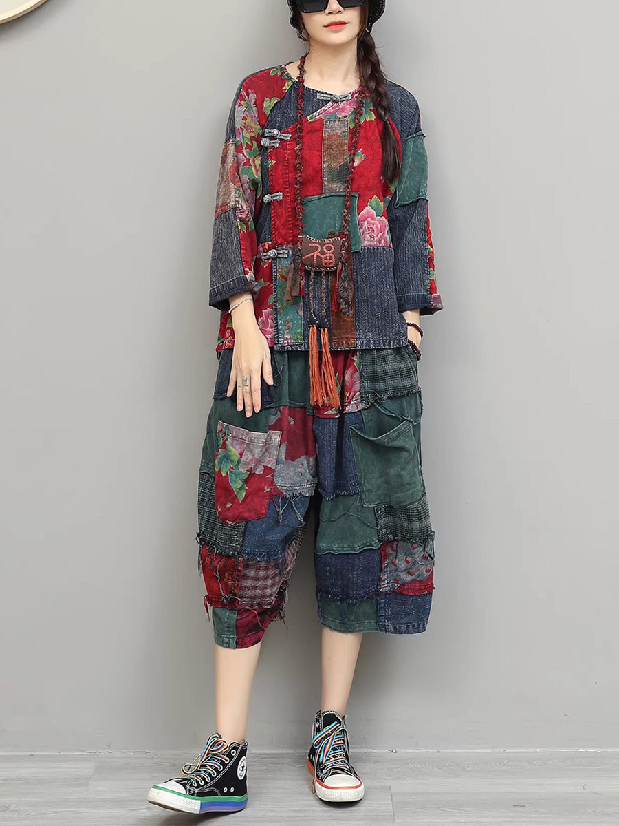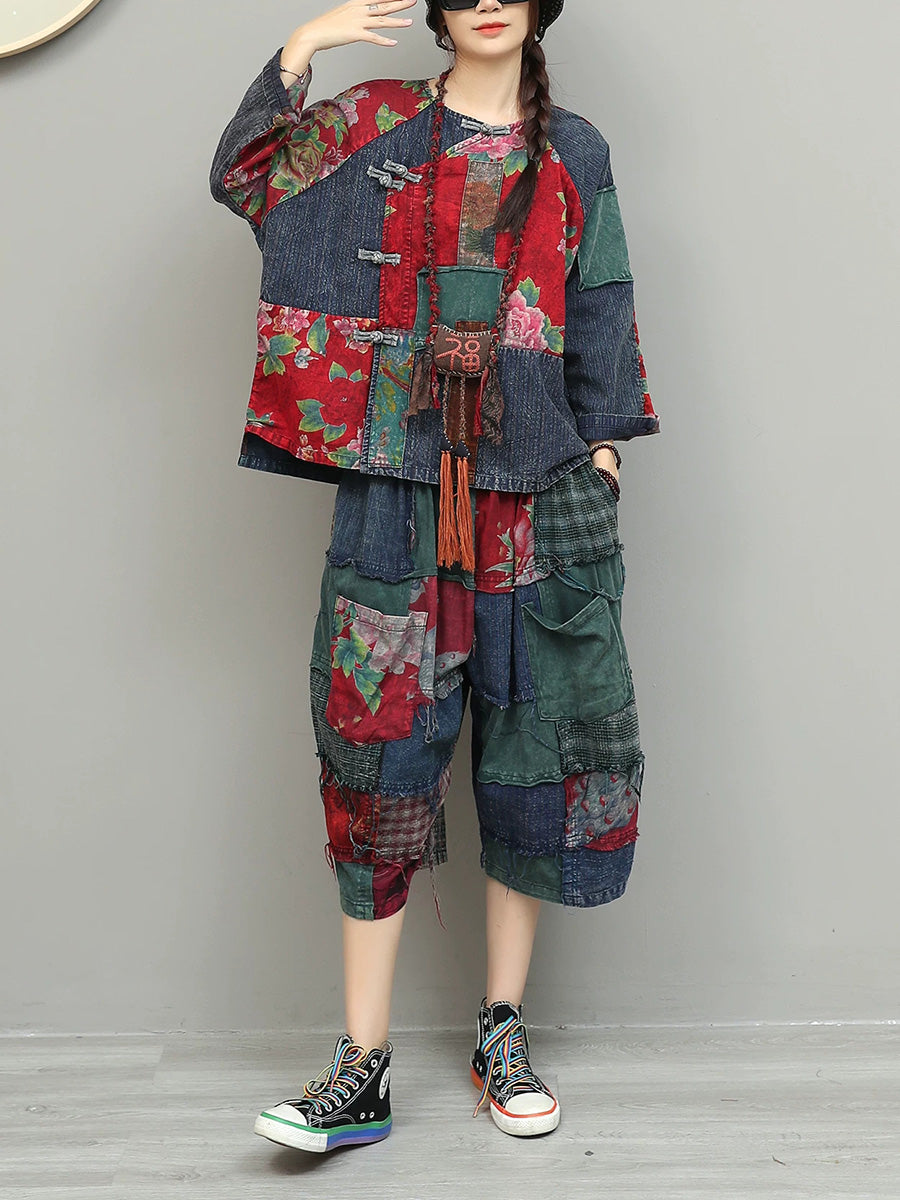 Trajes de verano étnicos de patchwork floral para mujer