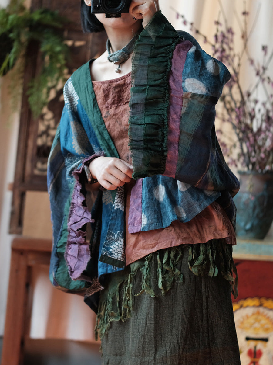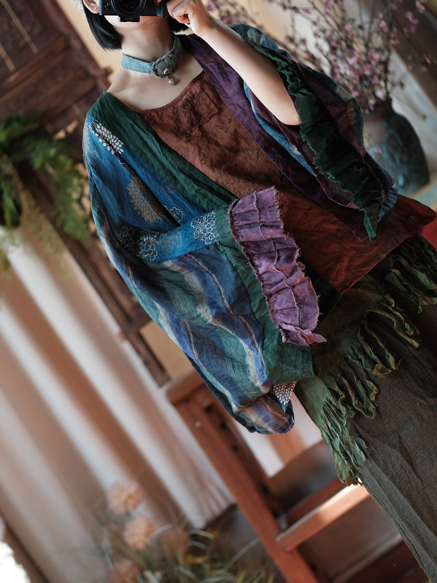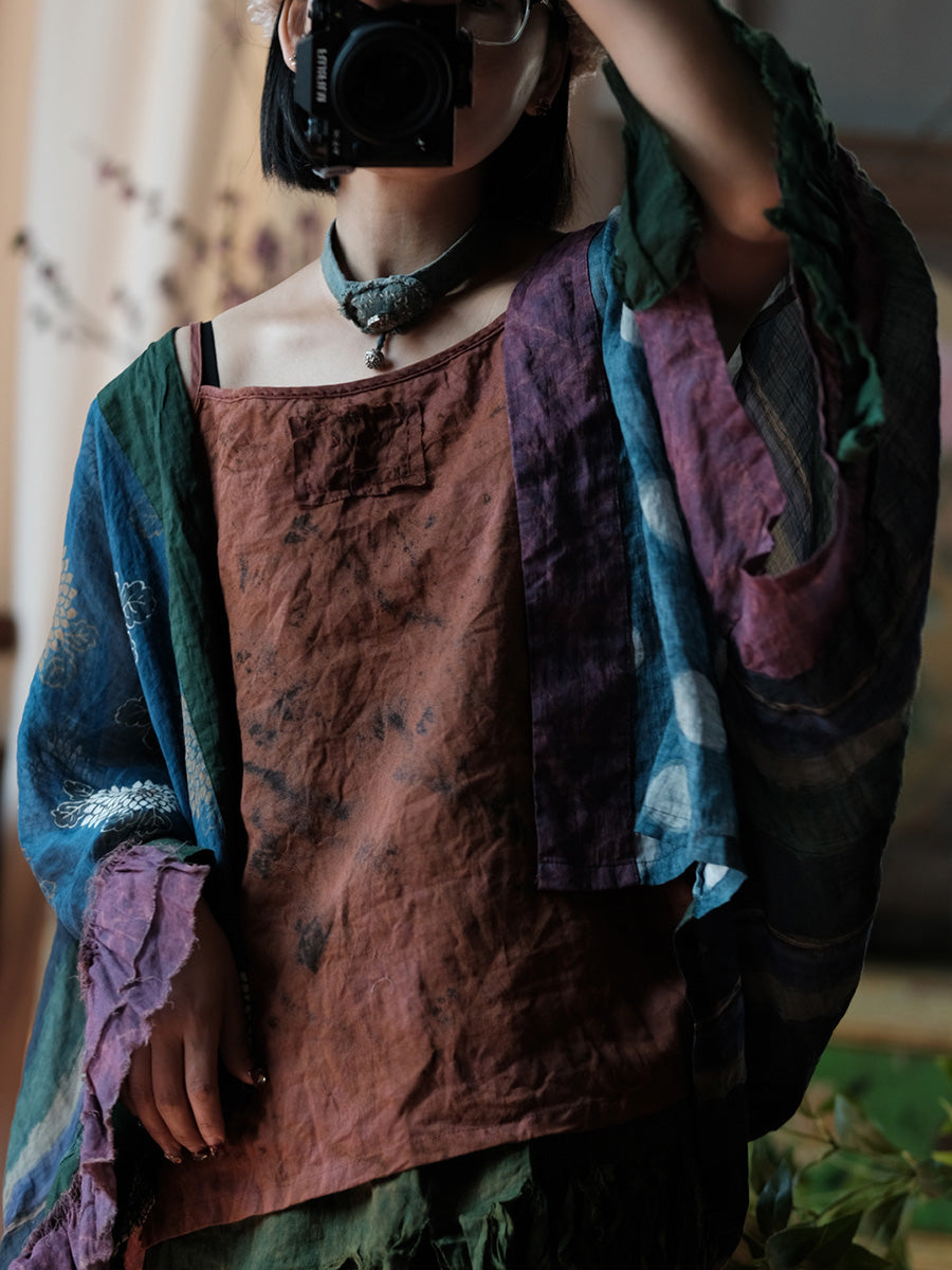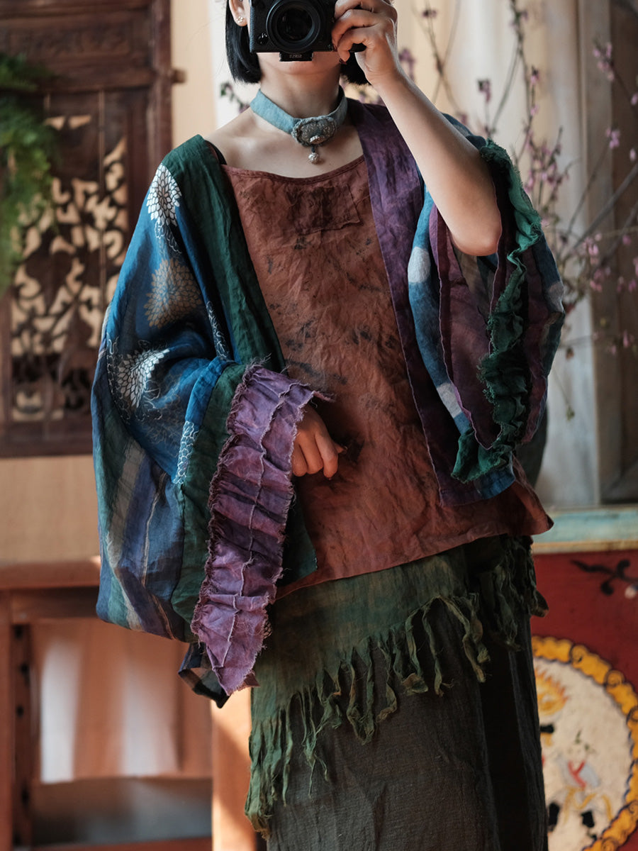 Camisa de ramio con estampado floral estilo retro de verano para mujer.