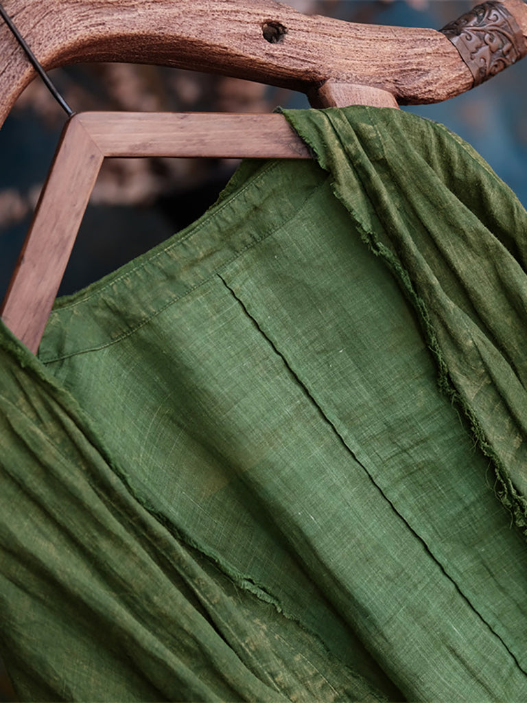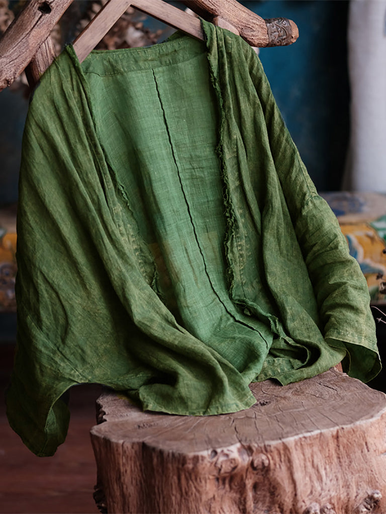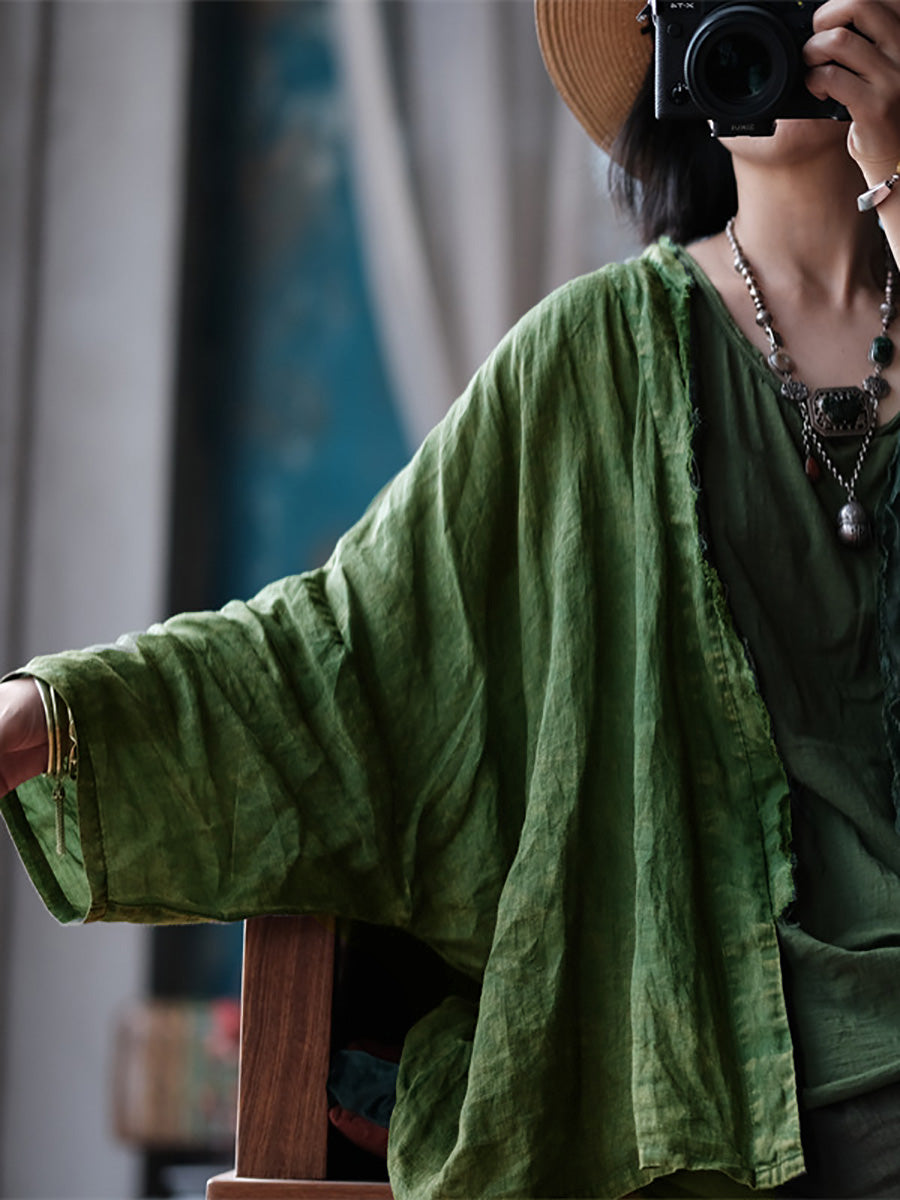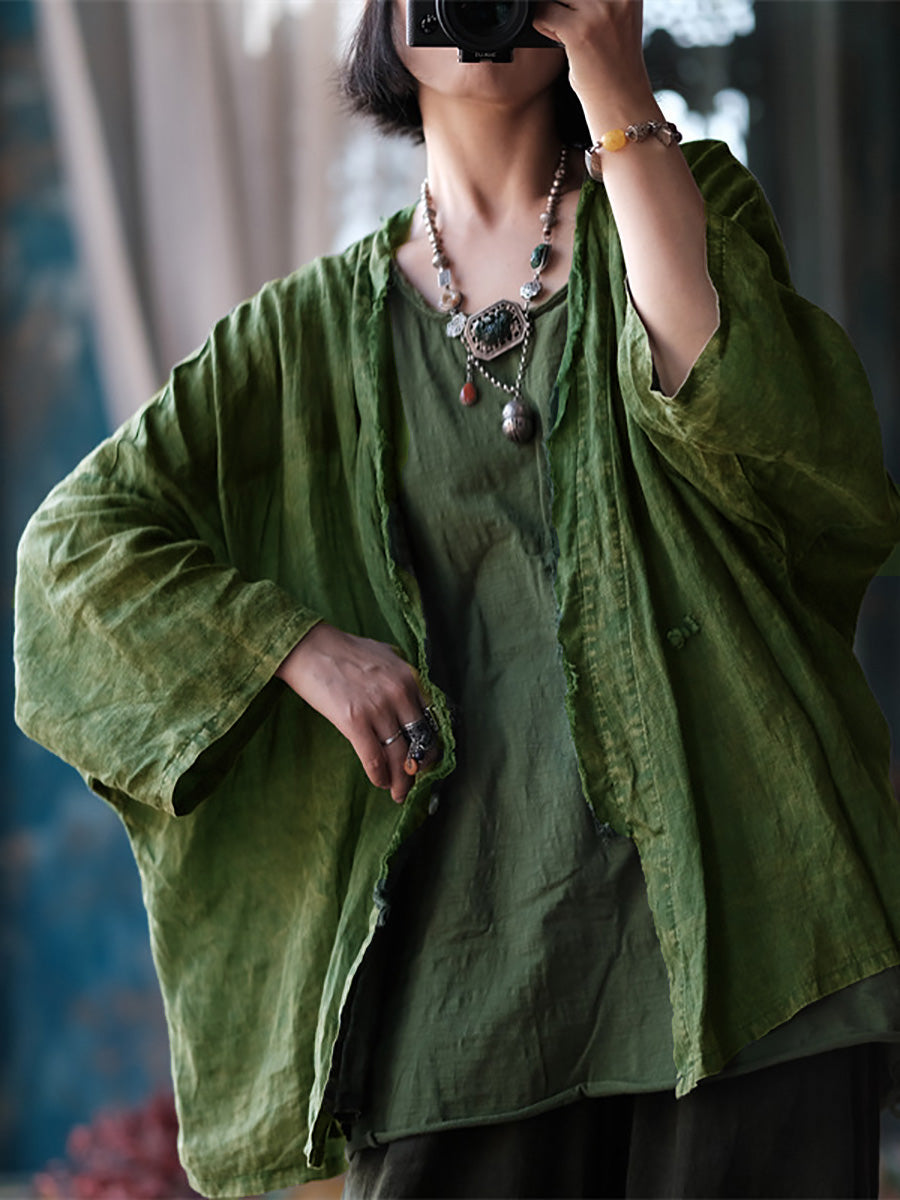 Este abrigo está confeccionado en 100% lino, con un patrón liso y cuello en V. Las mangas raglán largas añaden un toque vintage, lo que lo hace perfecto para las temporadas de primavera y verano.