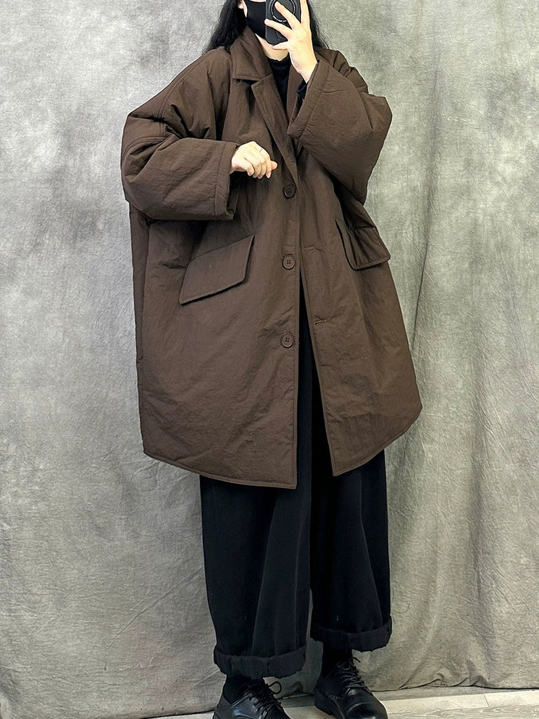Abrigo acolchado de invierno para mujer, color liso, cuello vuelto, estilo abrigo.