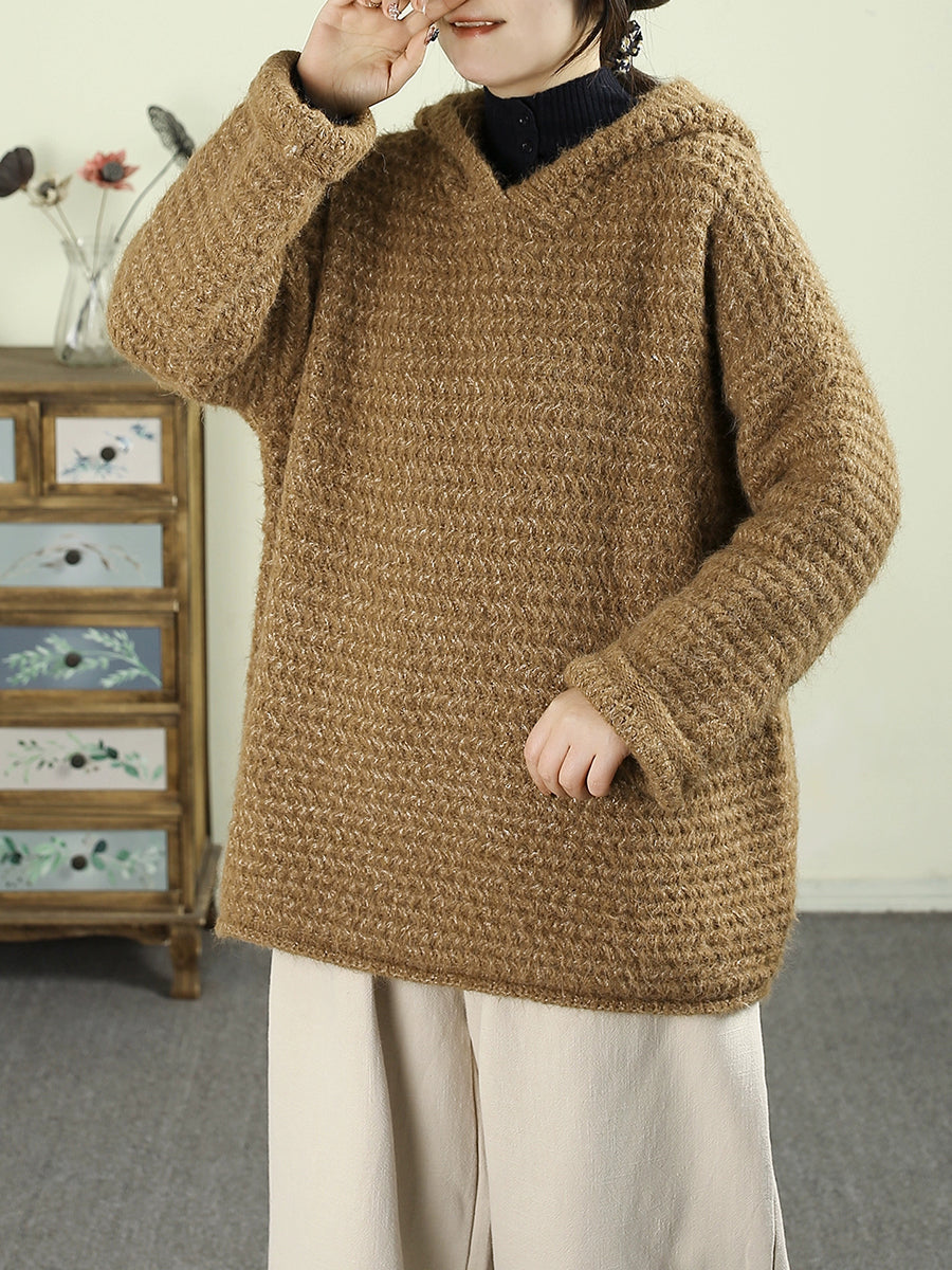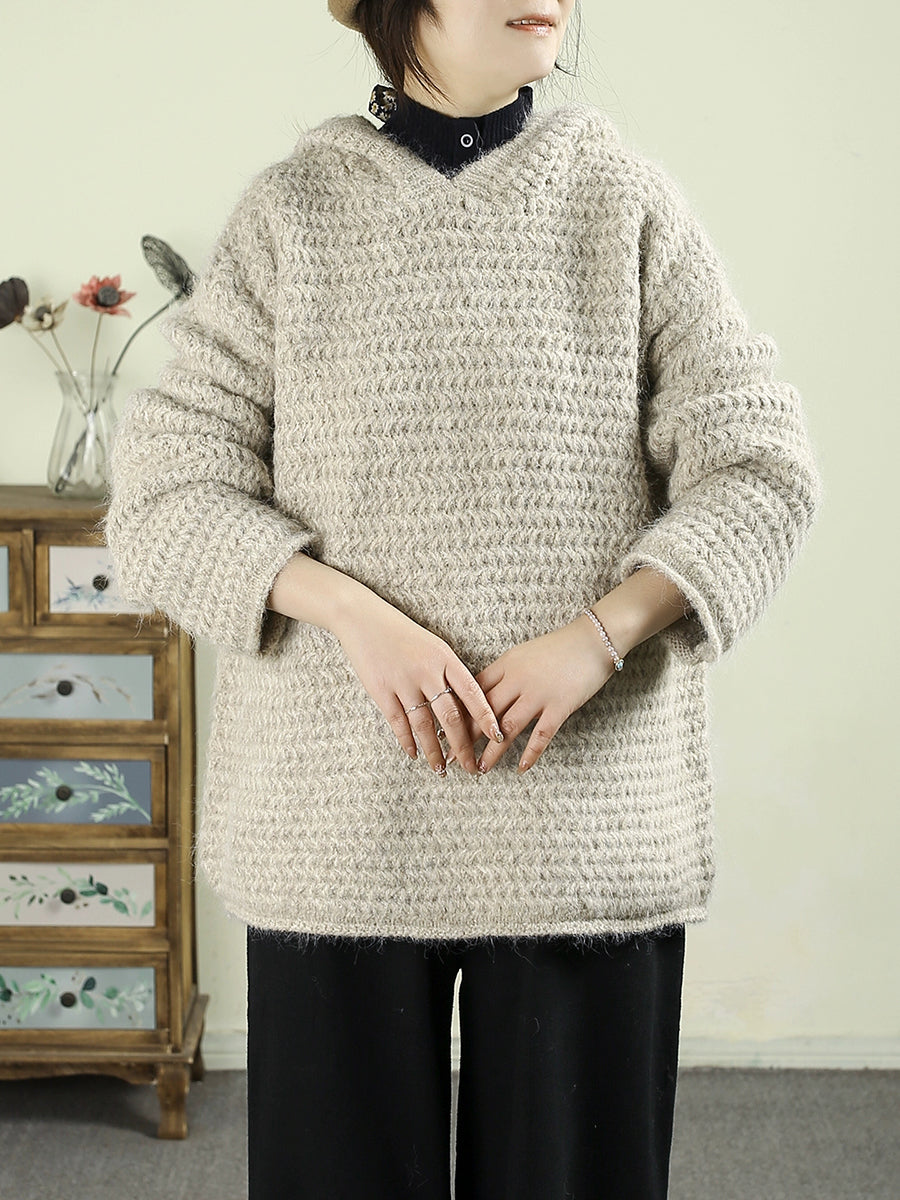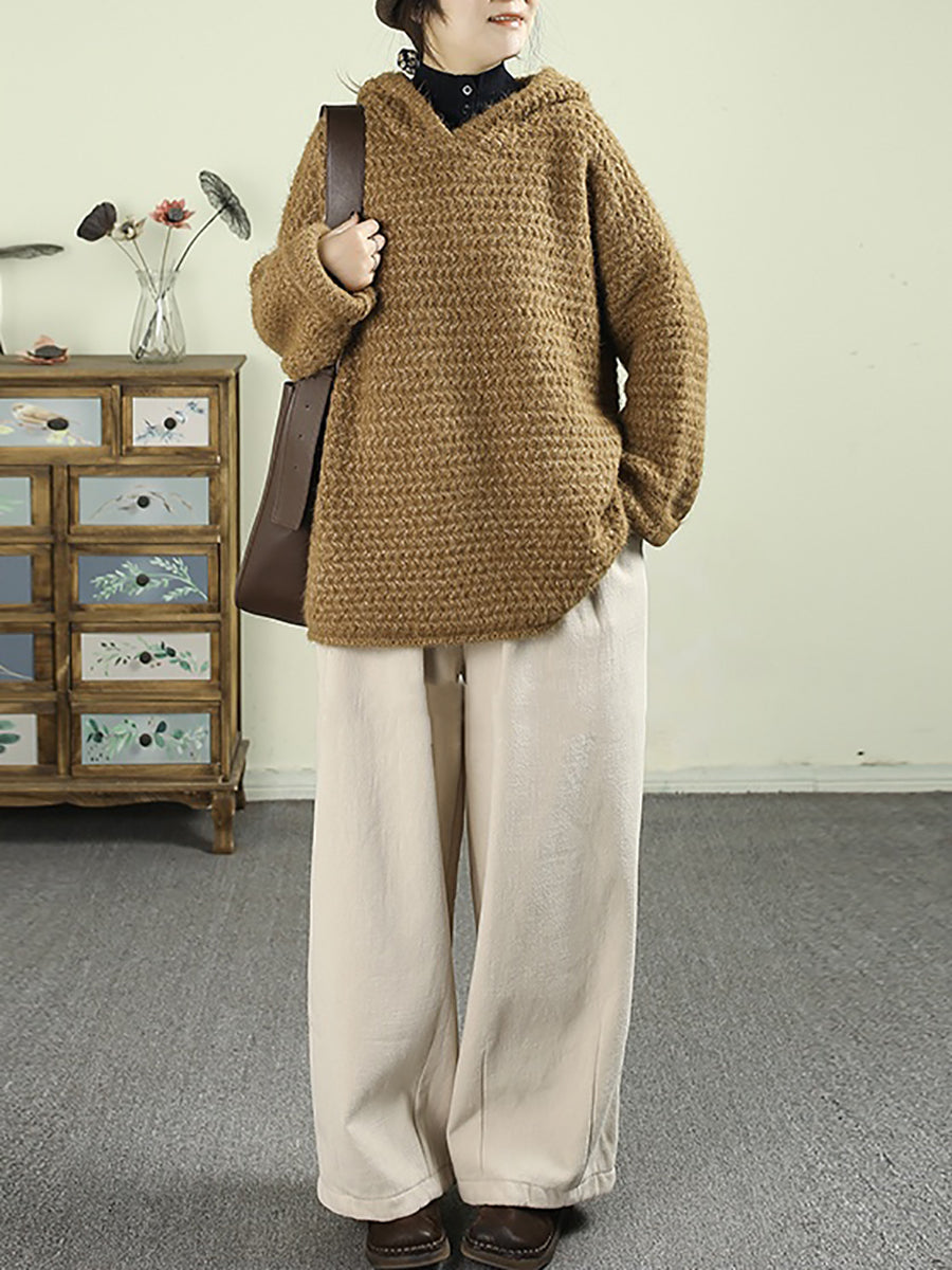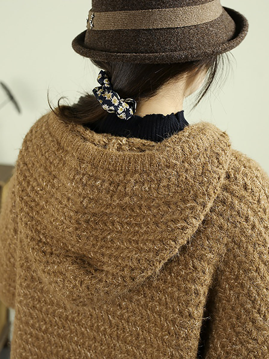 Abrigo con capucha de punto de color puro retro de invierno para mujer