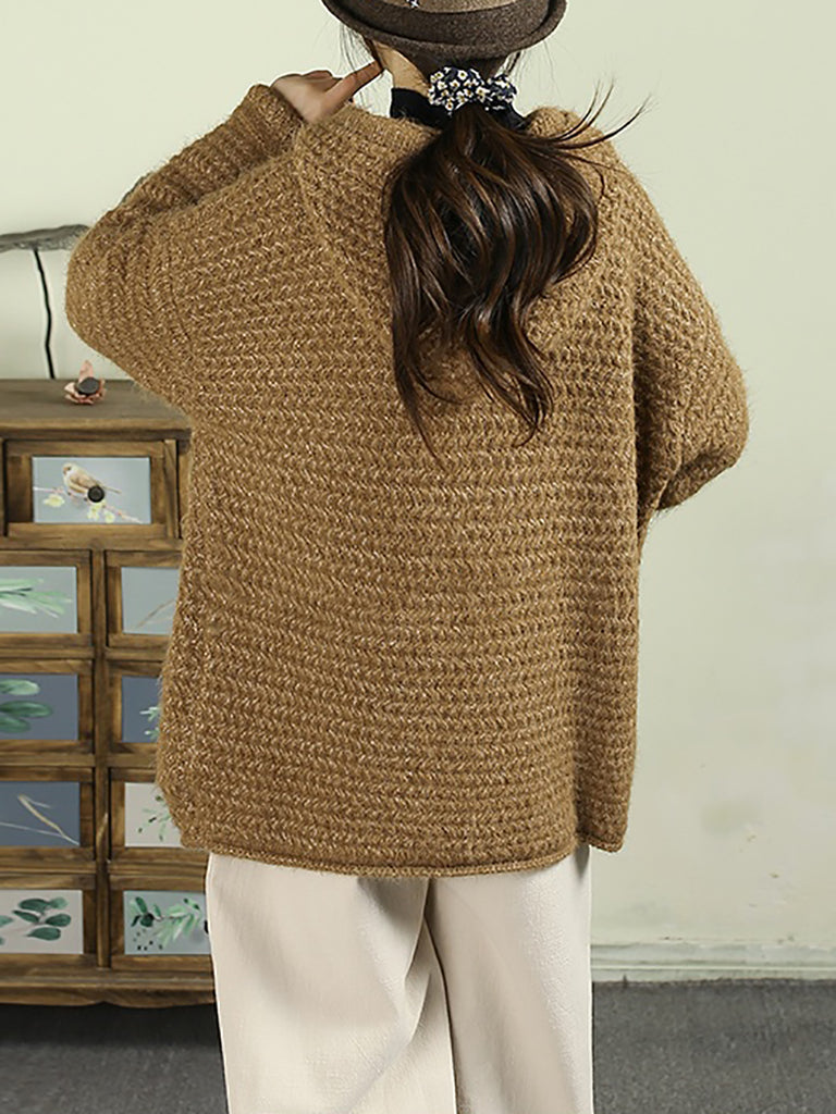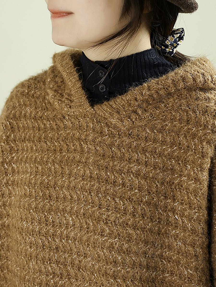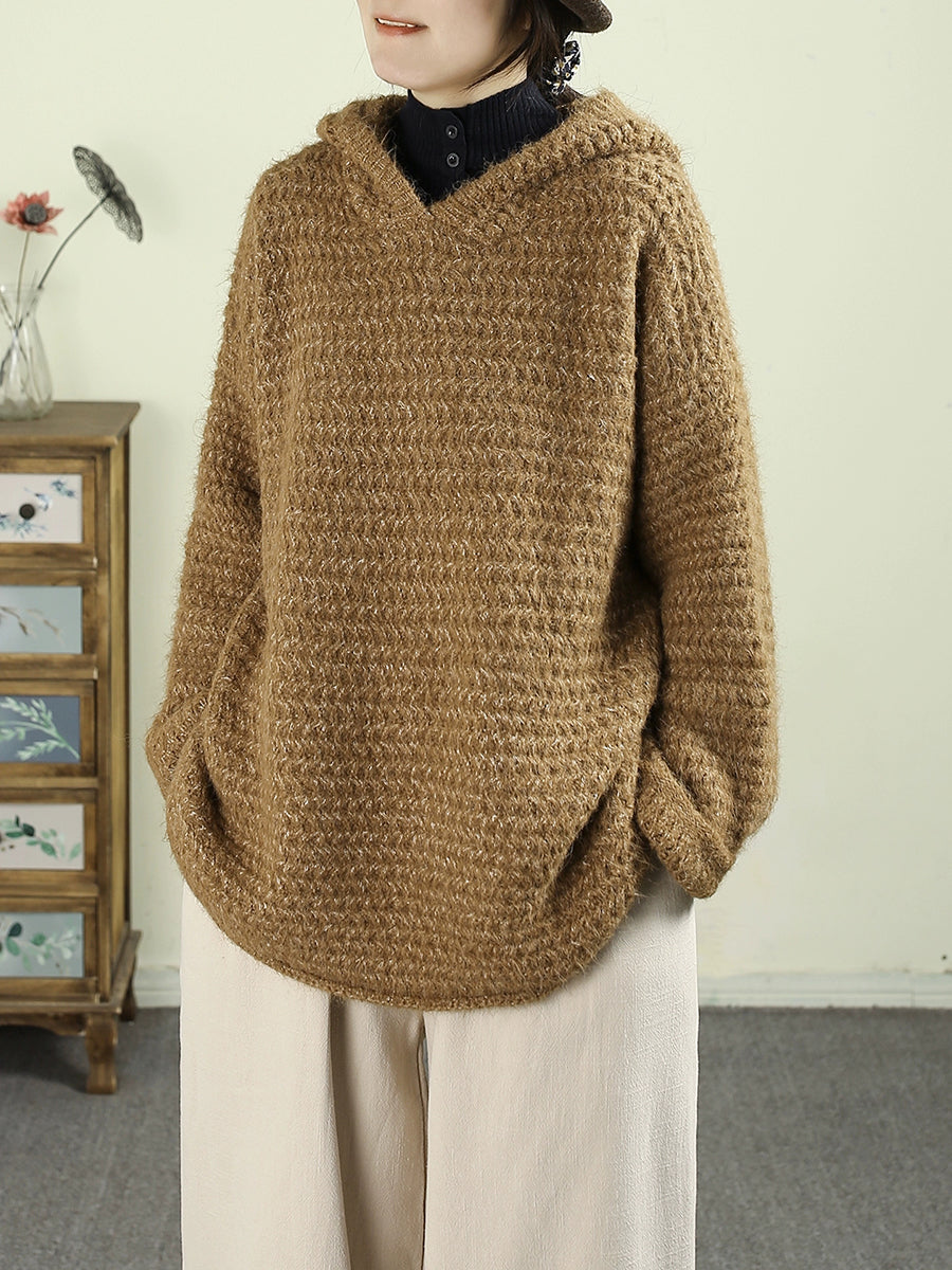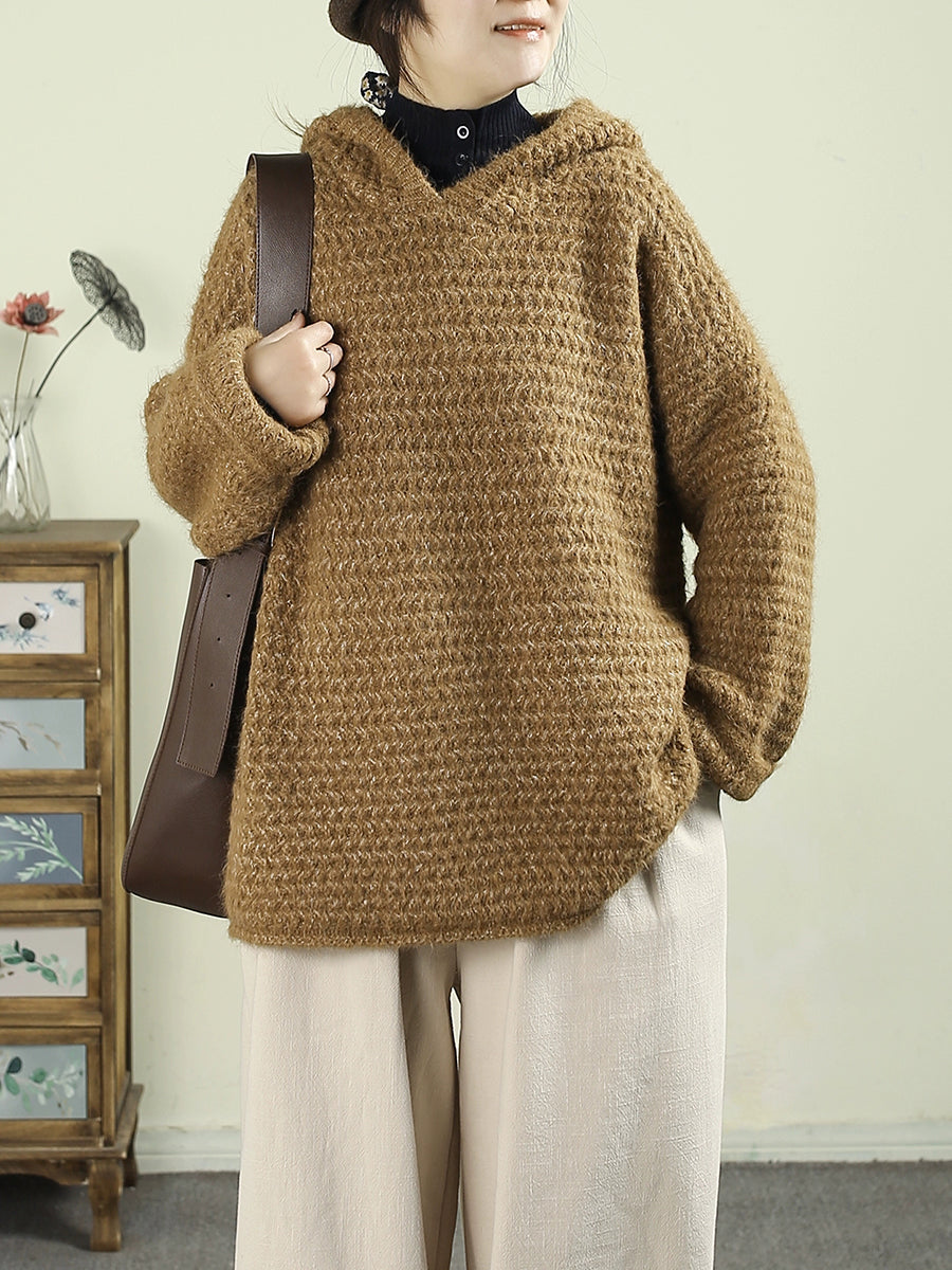 Abrigo con capucha de punto de color puro retro de invierno para mujer