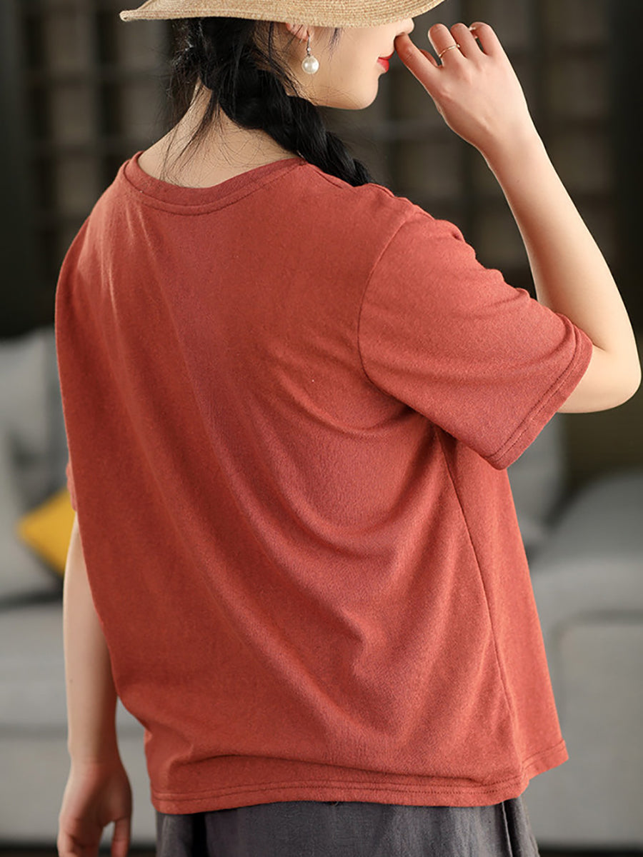 Camiseta de mujer informal de verano de color liso con cuello redondo