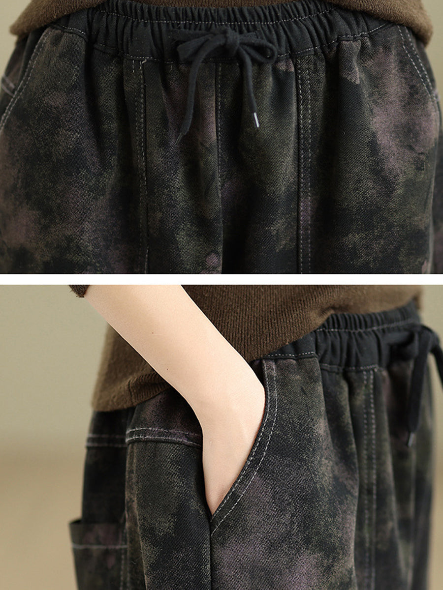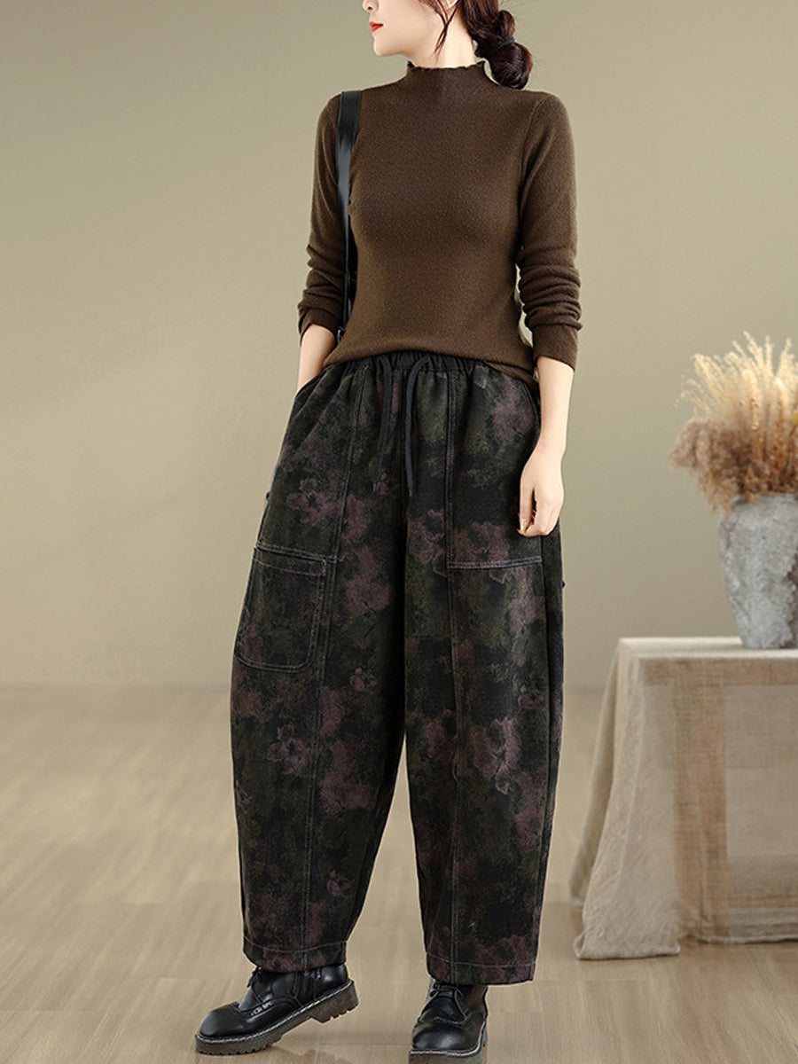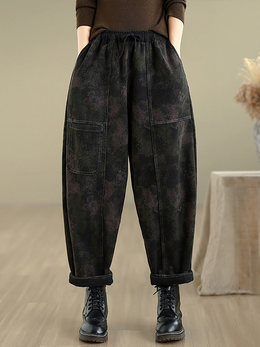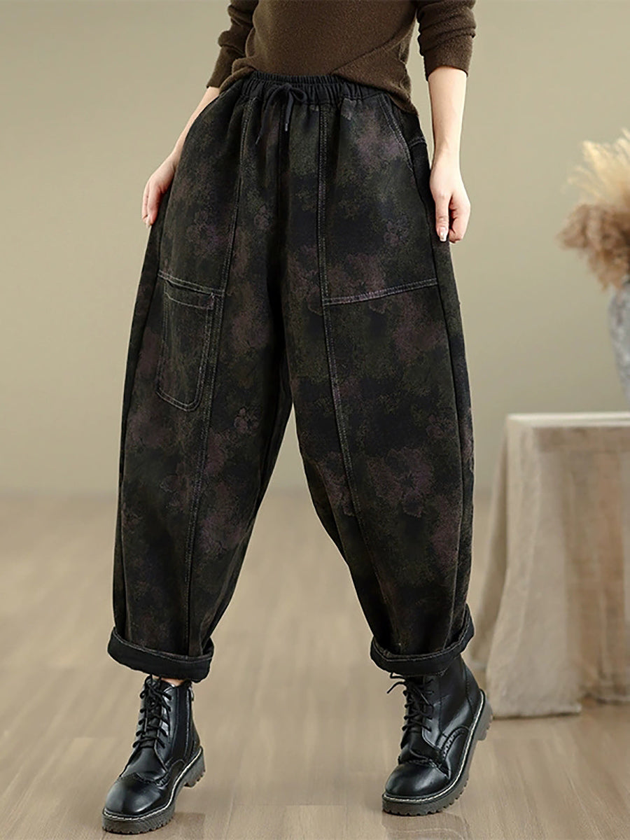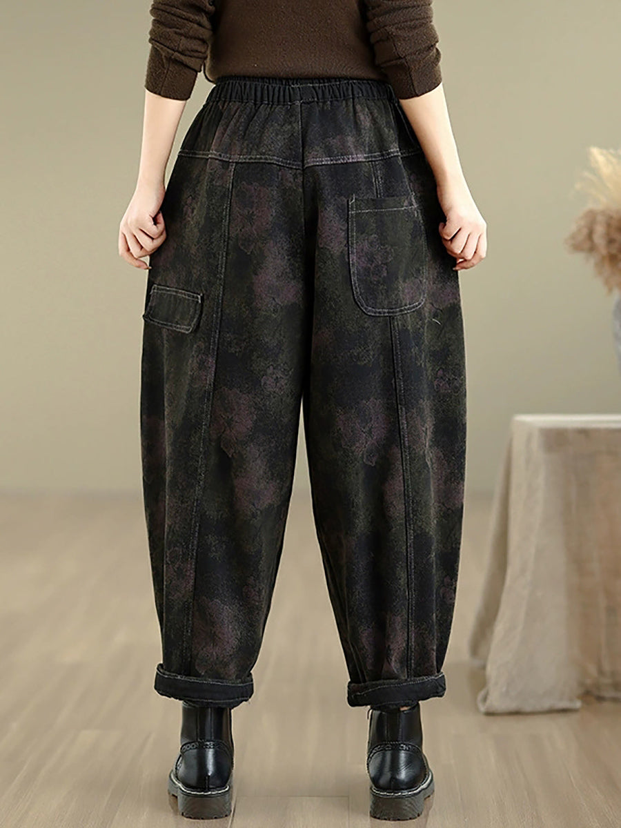 Pantalones bombachos vaqueros retro de otoño para mujer con forro polar