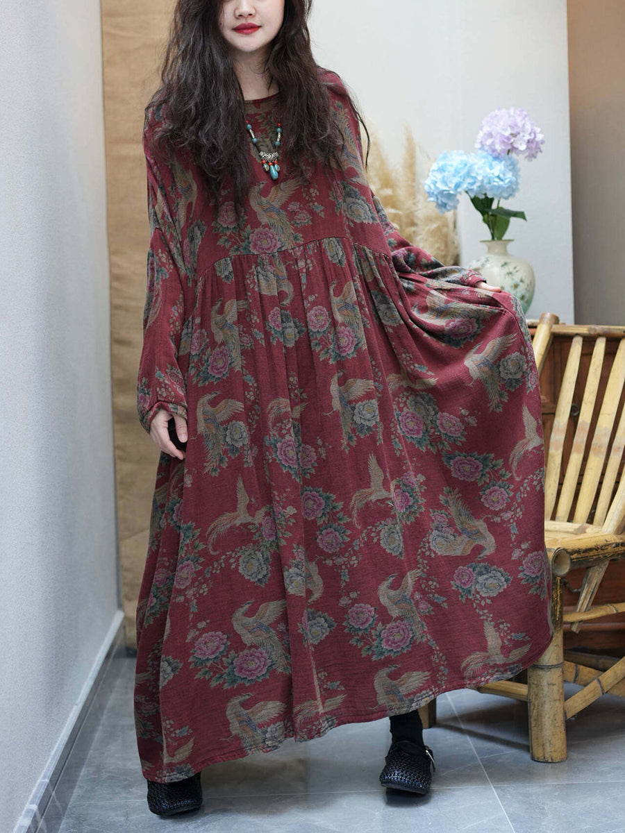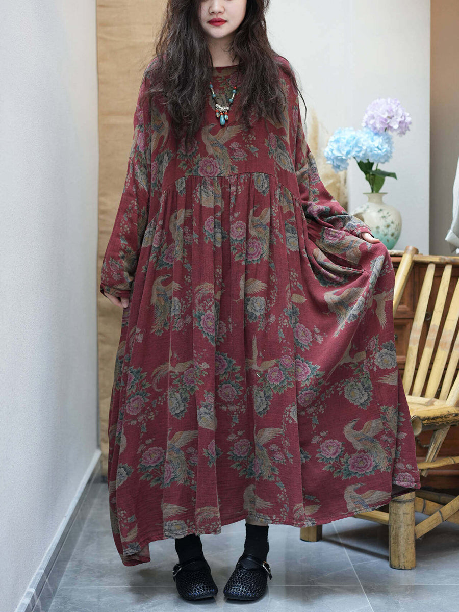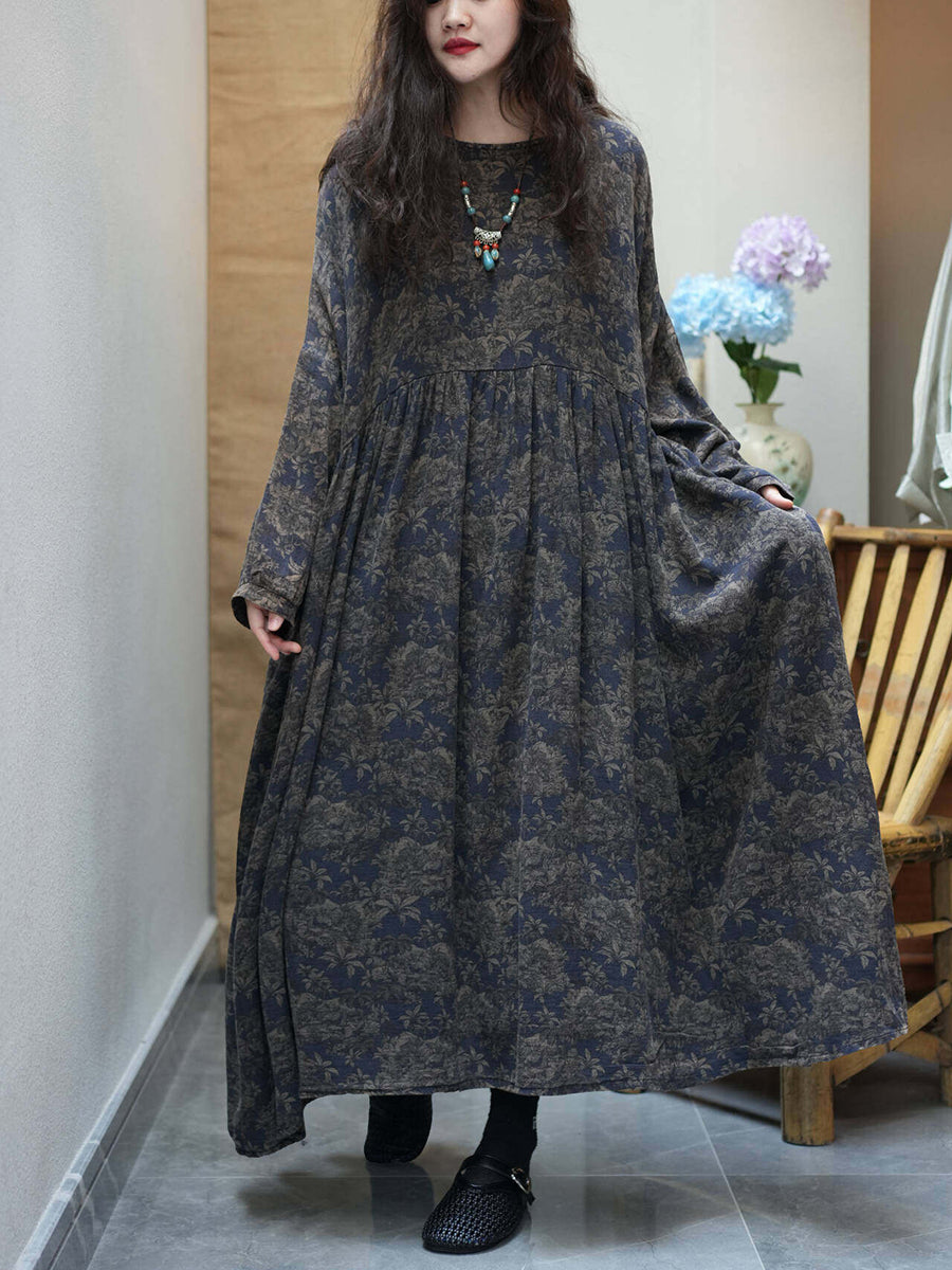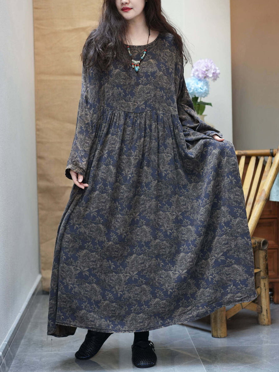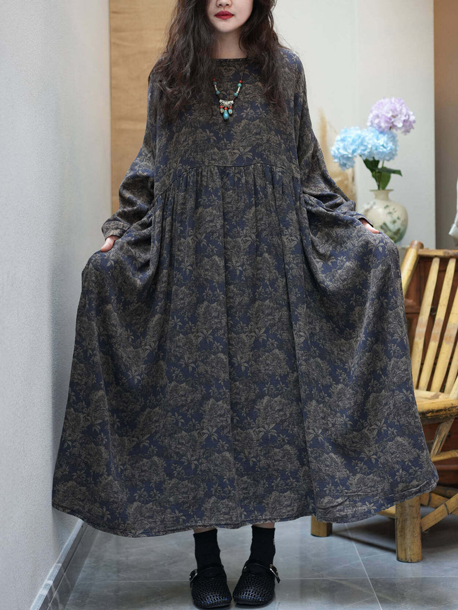 Vestido largo de mujer estilo retro primaveral con estampado floral