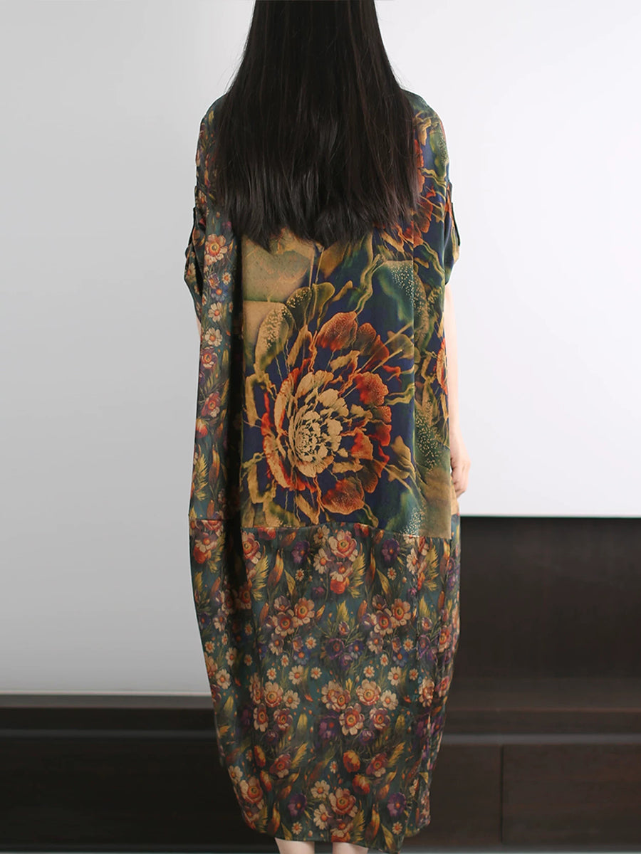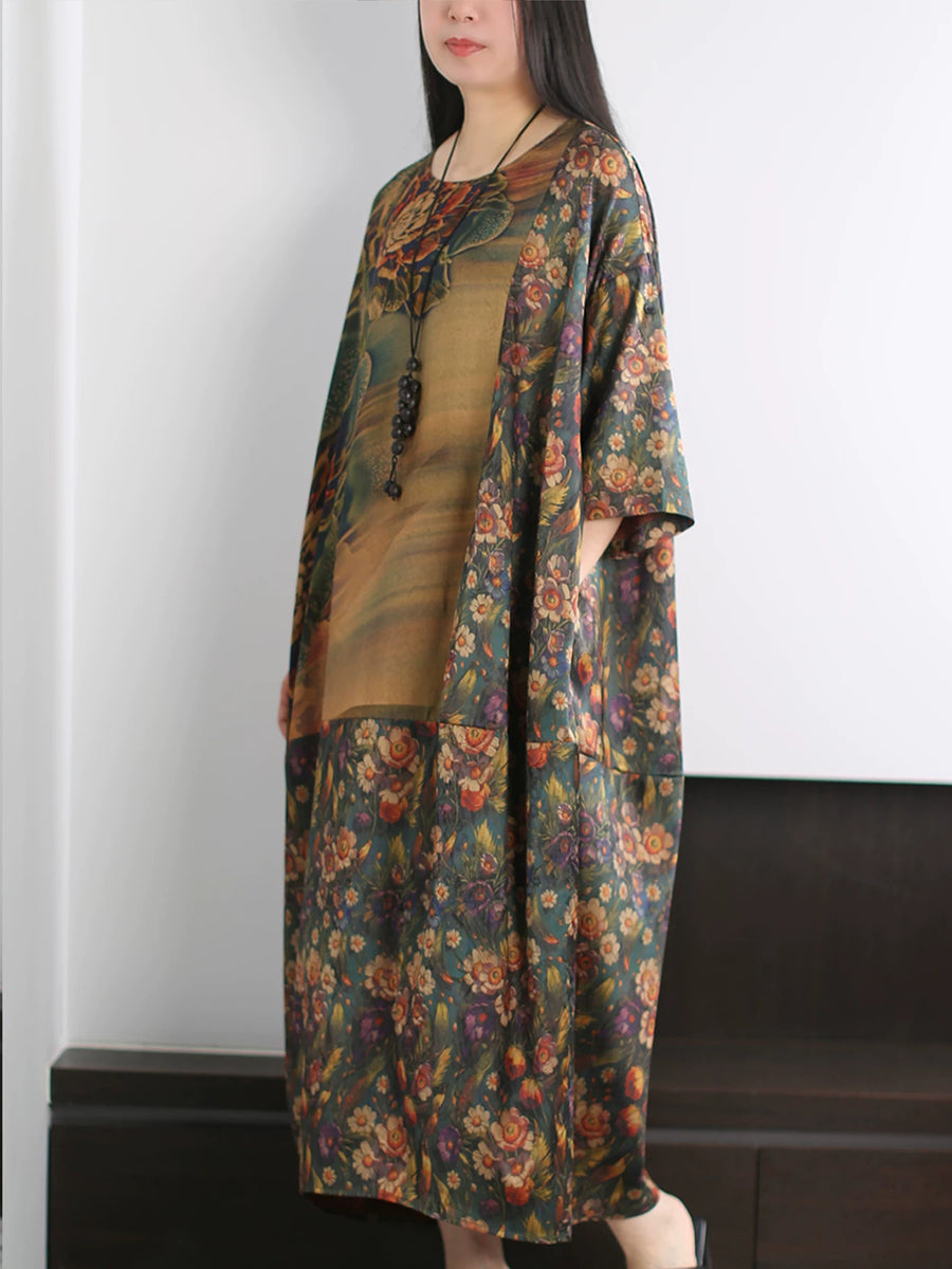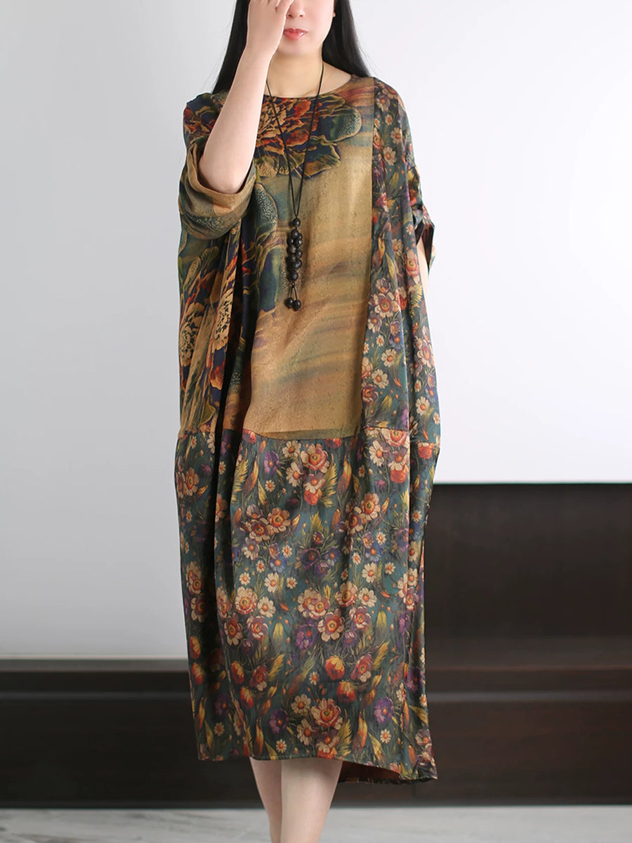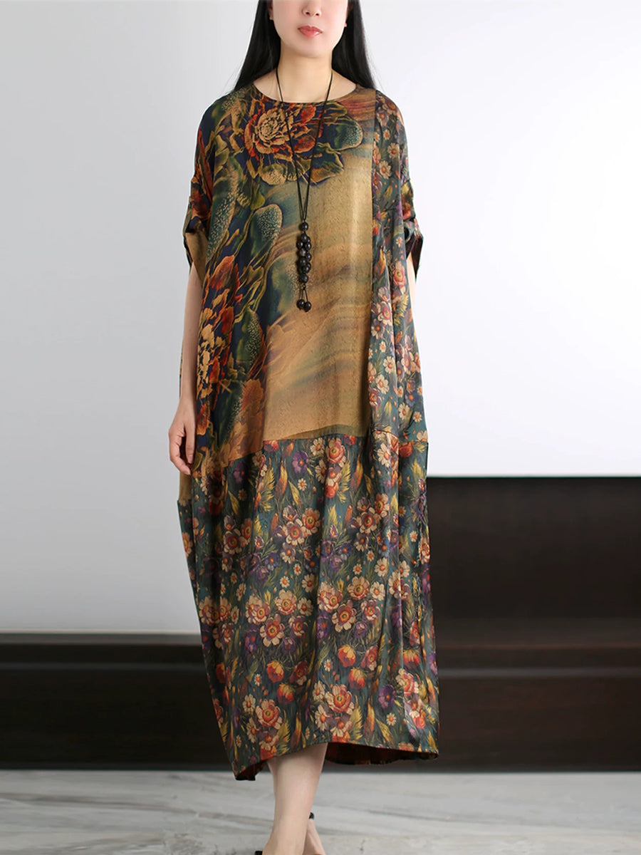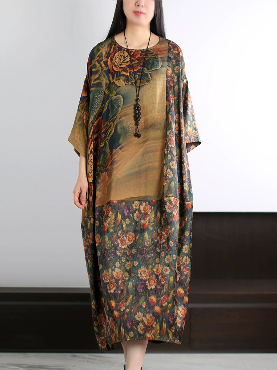 Vestido de seda de verano para mujer con estampado floral artístico